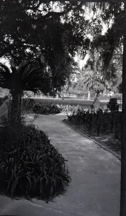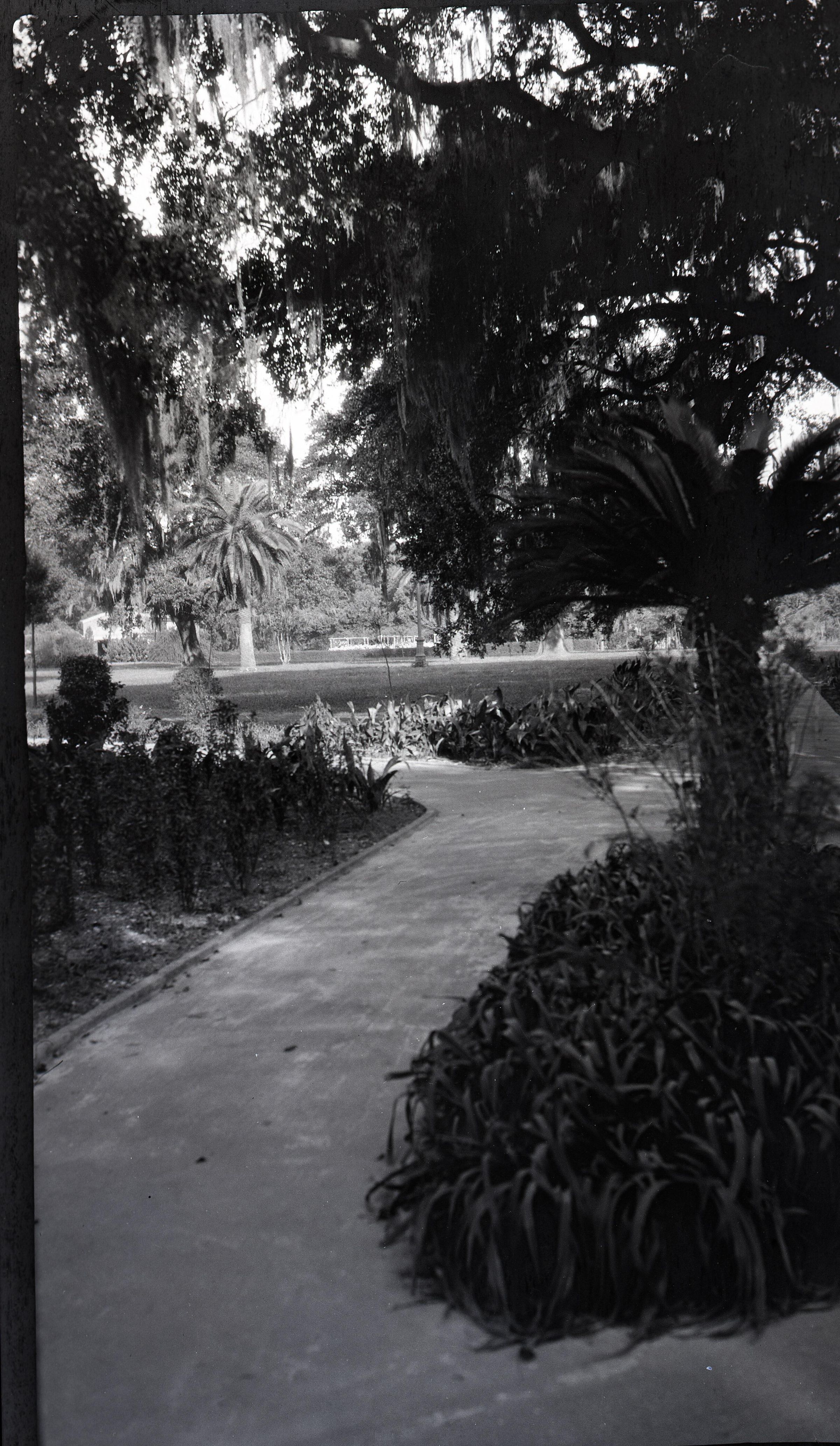 The negative is inserted into a brown envelope along with a print of the image. On the envelope is typed "New Orleans--Path in the City Park 10/15/29". Stamped is "215" and "indexed".Made/Created