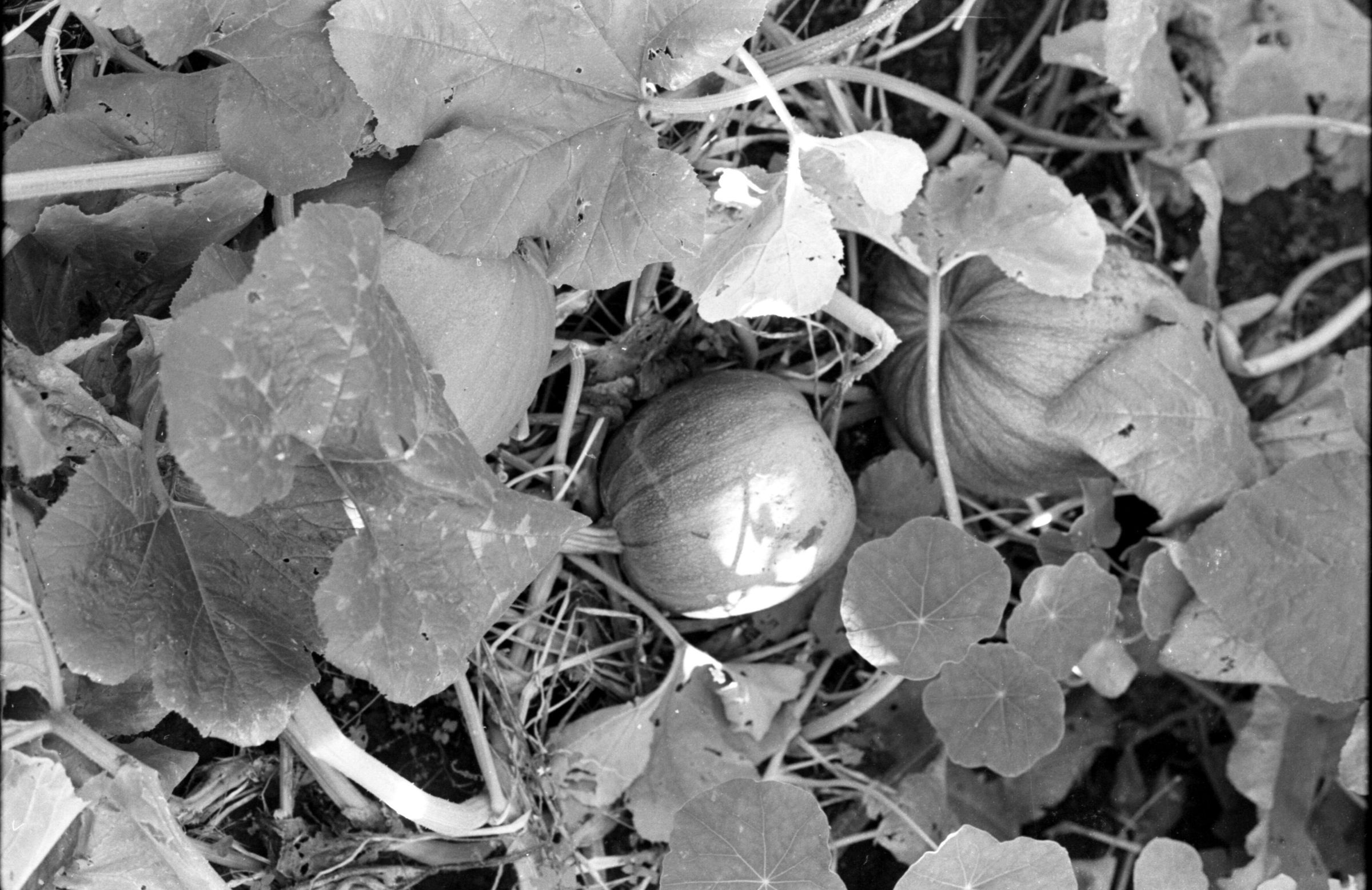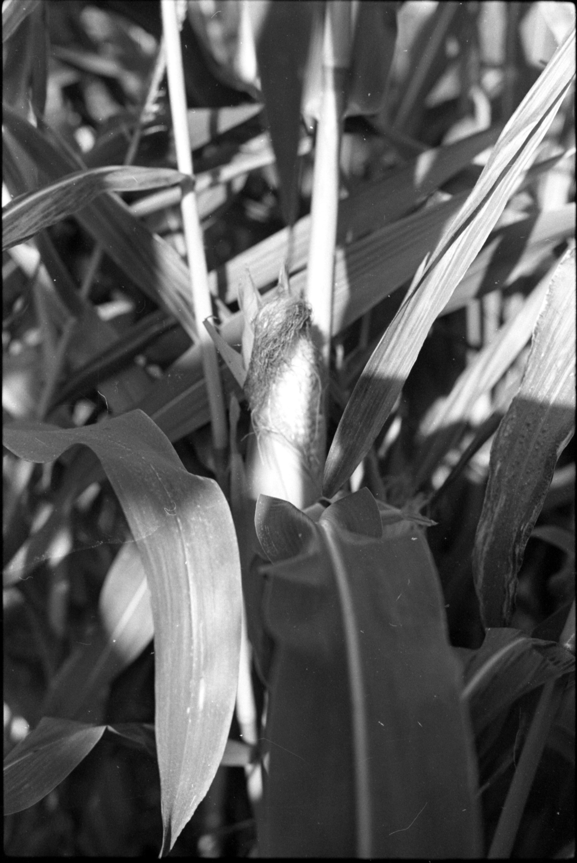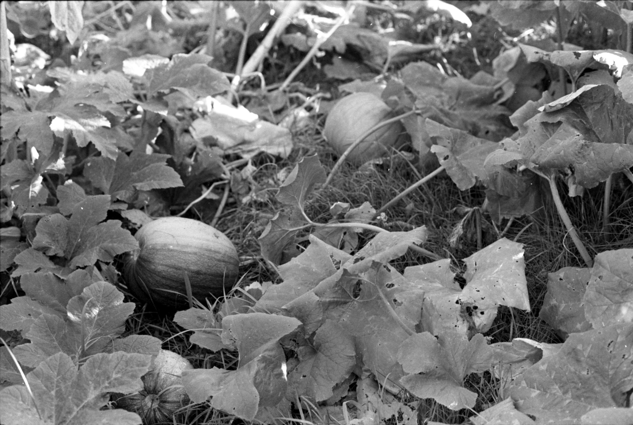 Plants, 1978. These three black and white film negative strips were created for the Lacey Leader newspaper. These images show tomatoes, corn, squash and sunflowers growing. They also show a woman blocking her face from the camera.Made/Created