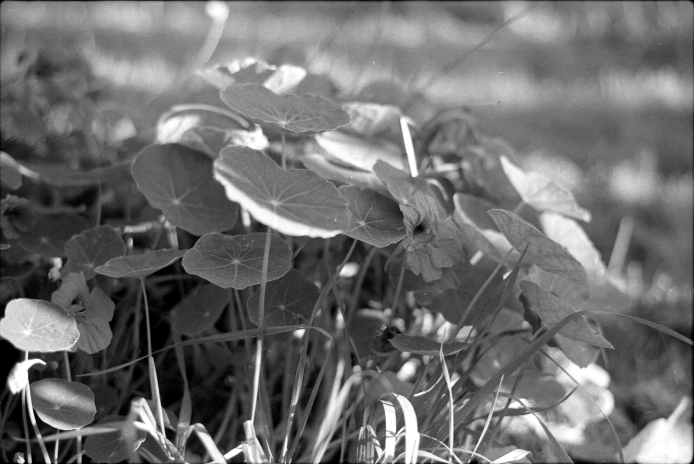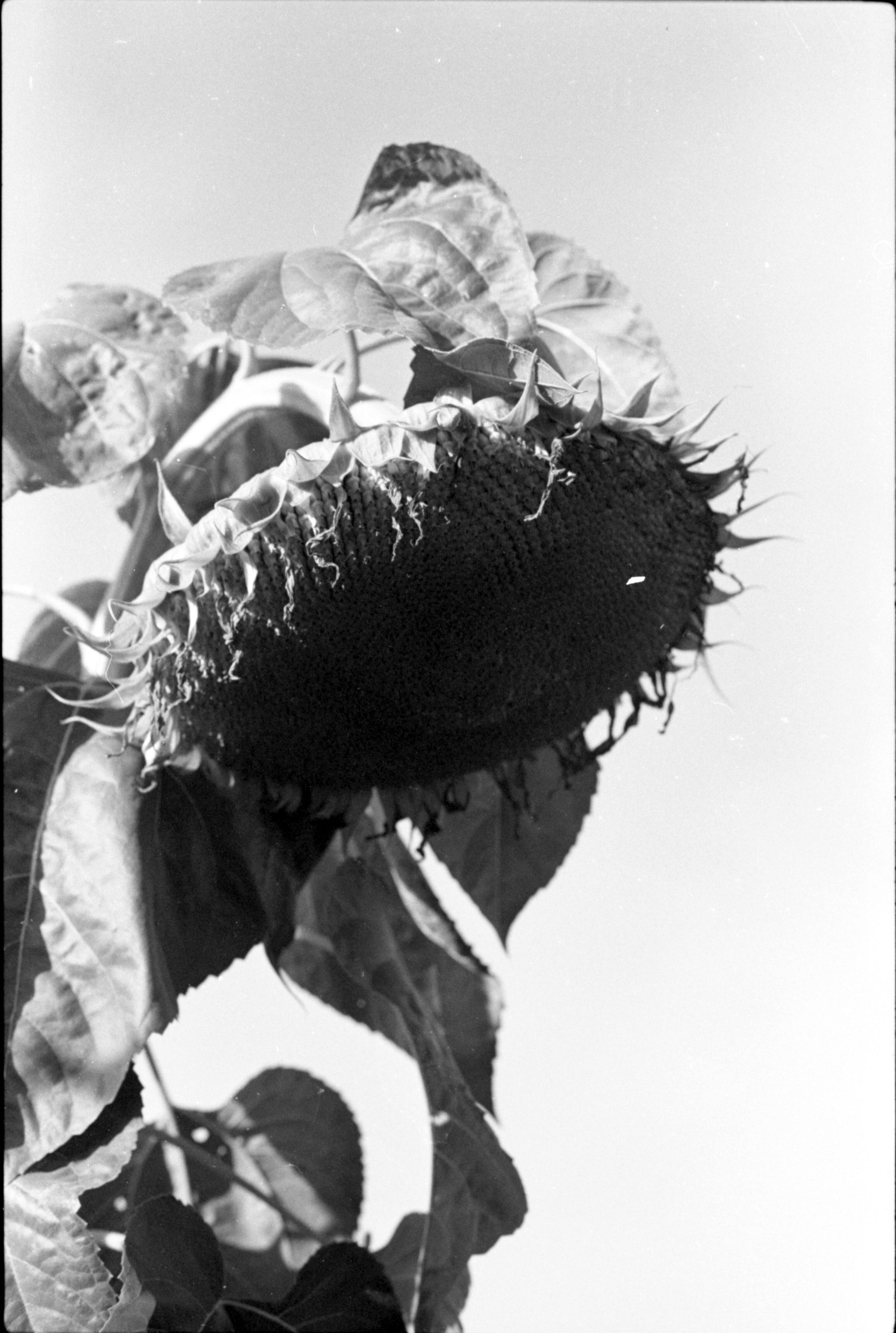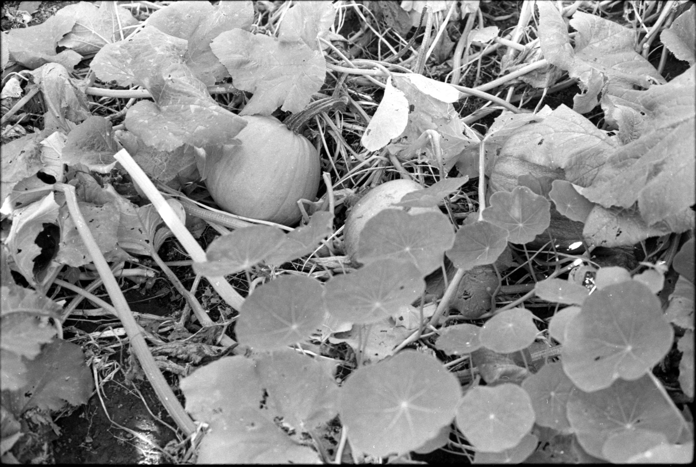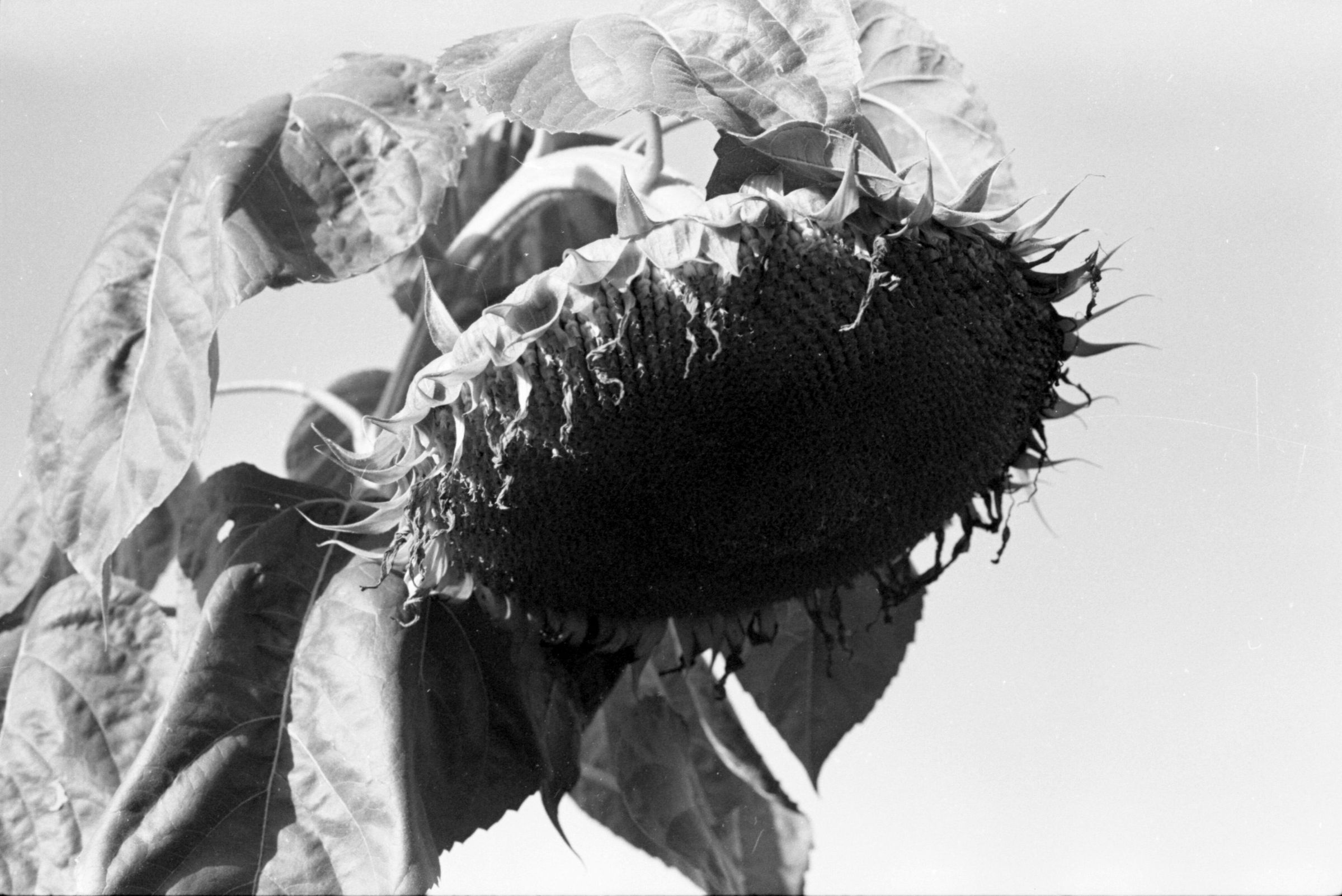 Plants, 1978. These three black and white film negative strips were created for the Lacey Leader newspaper. These images show tomatoes, corn, squash and sunflowers growing. They also show a woman blocking her face from the camera.Made/Created