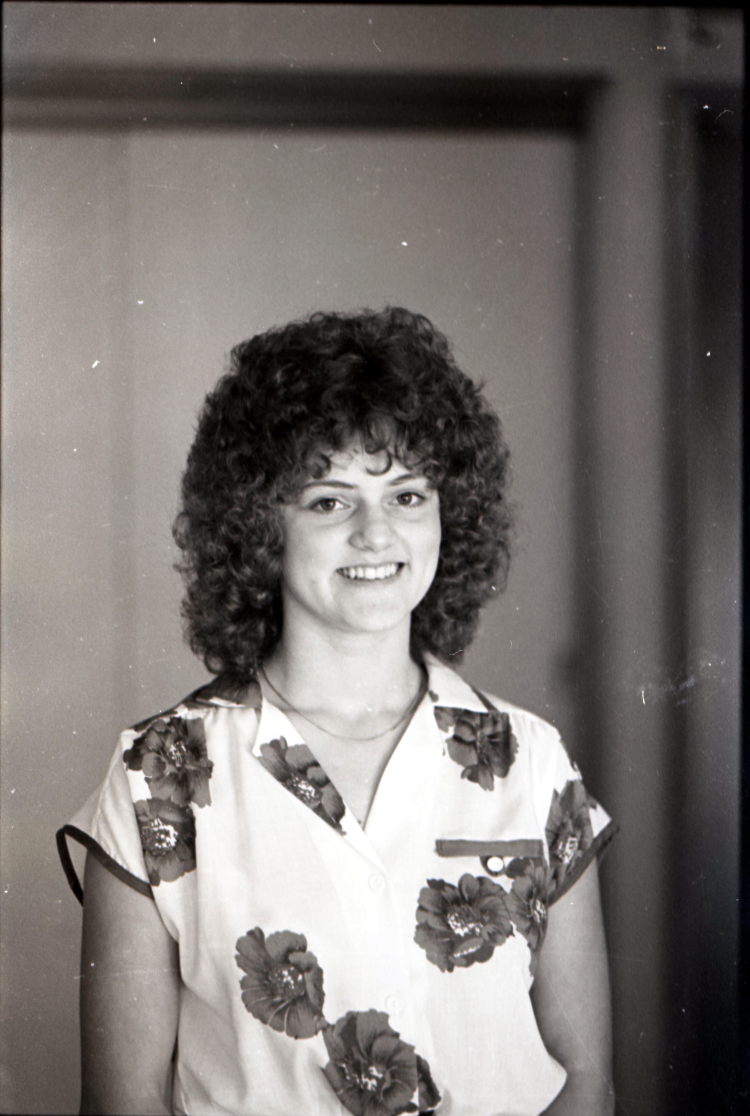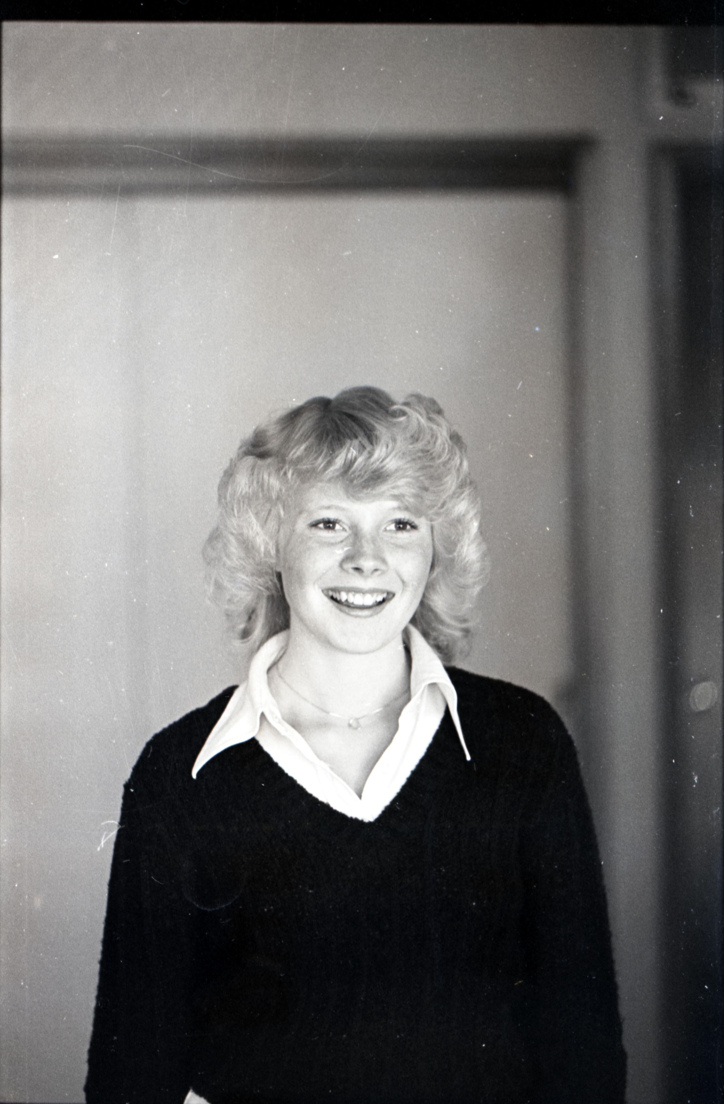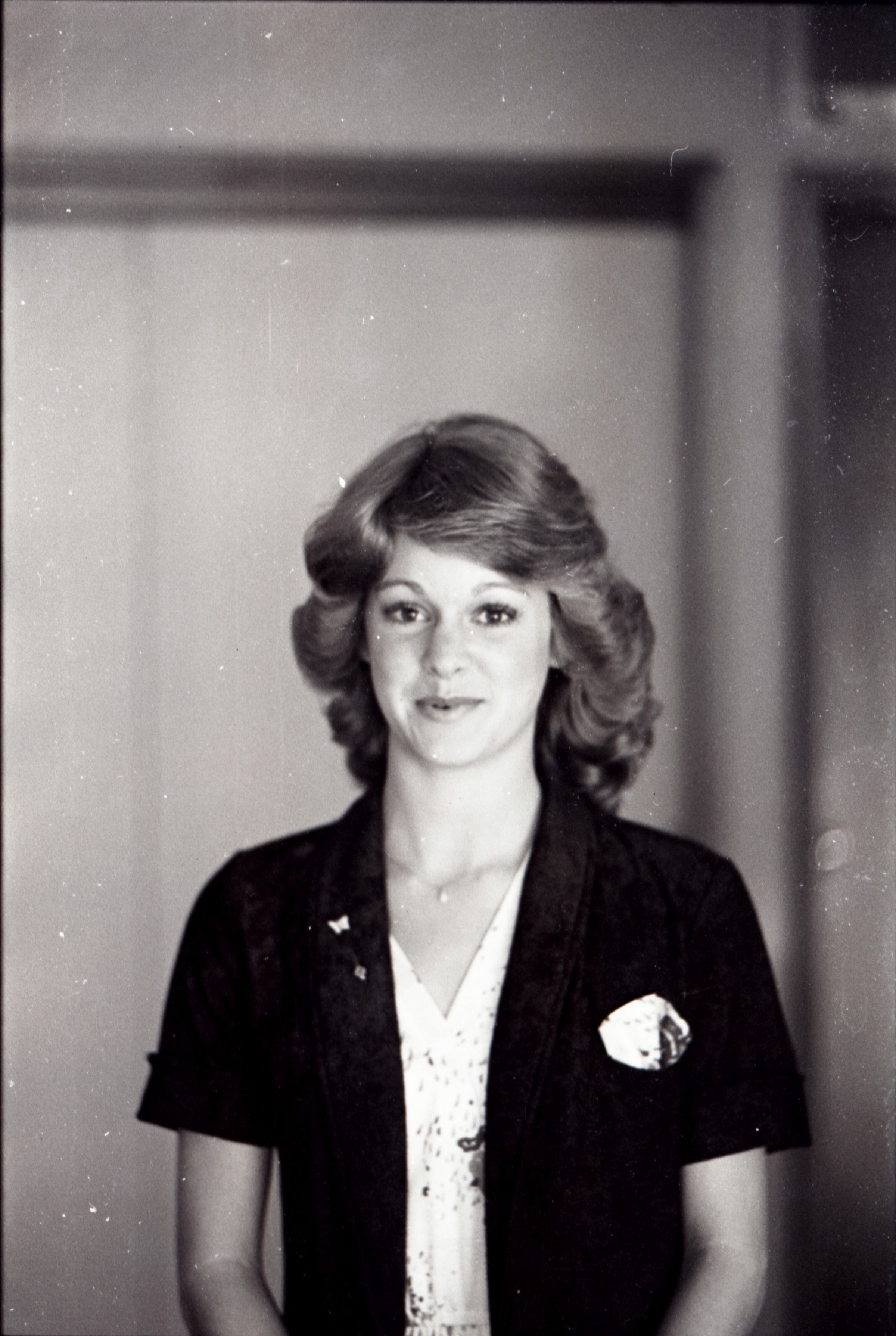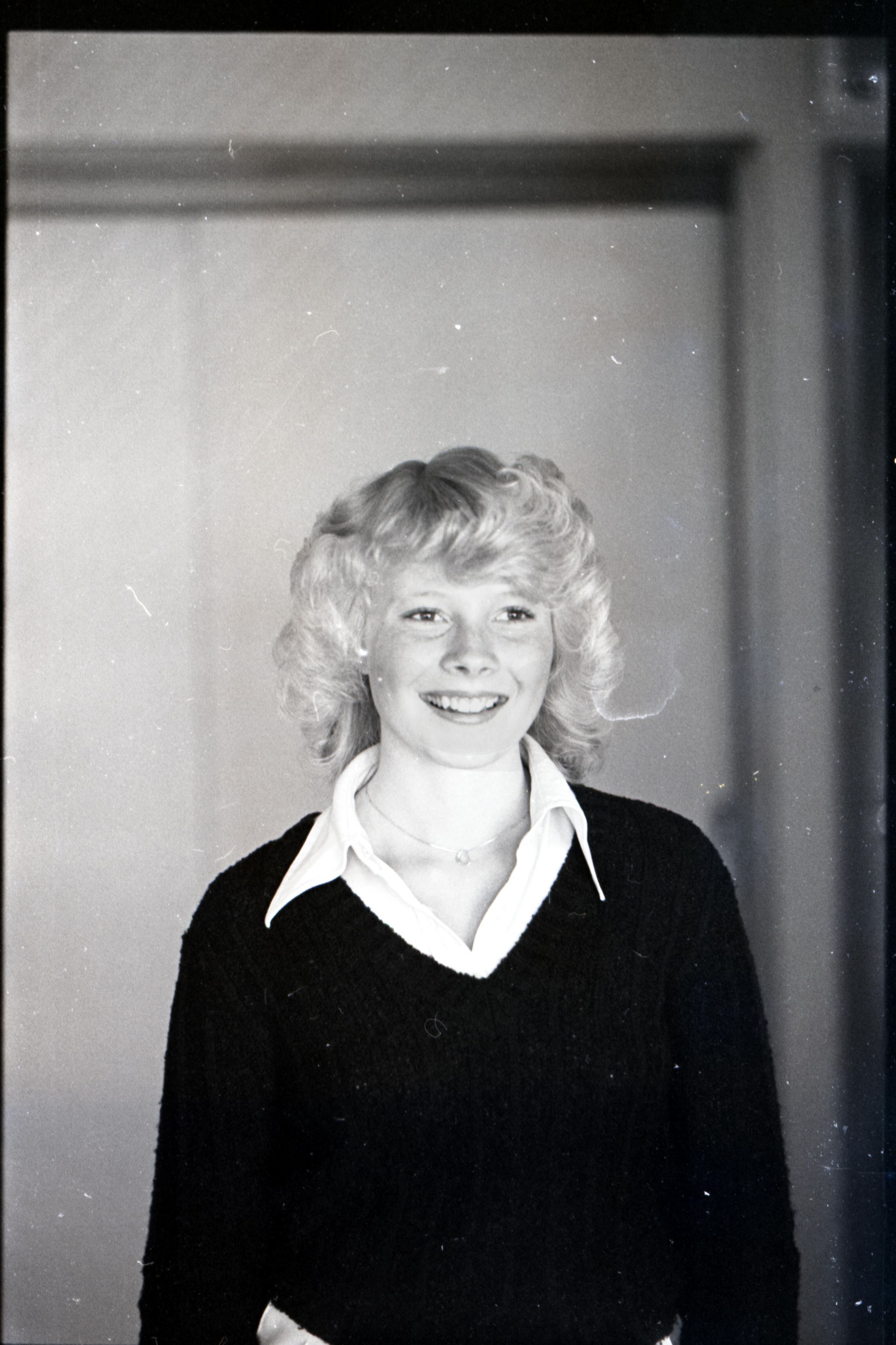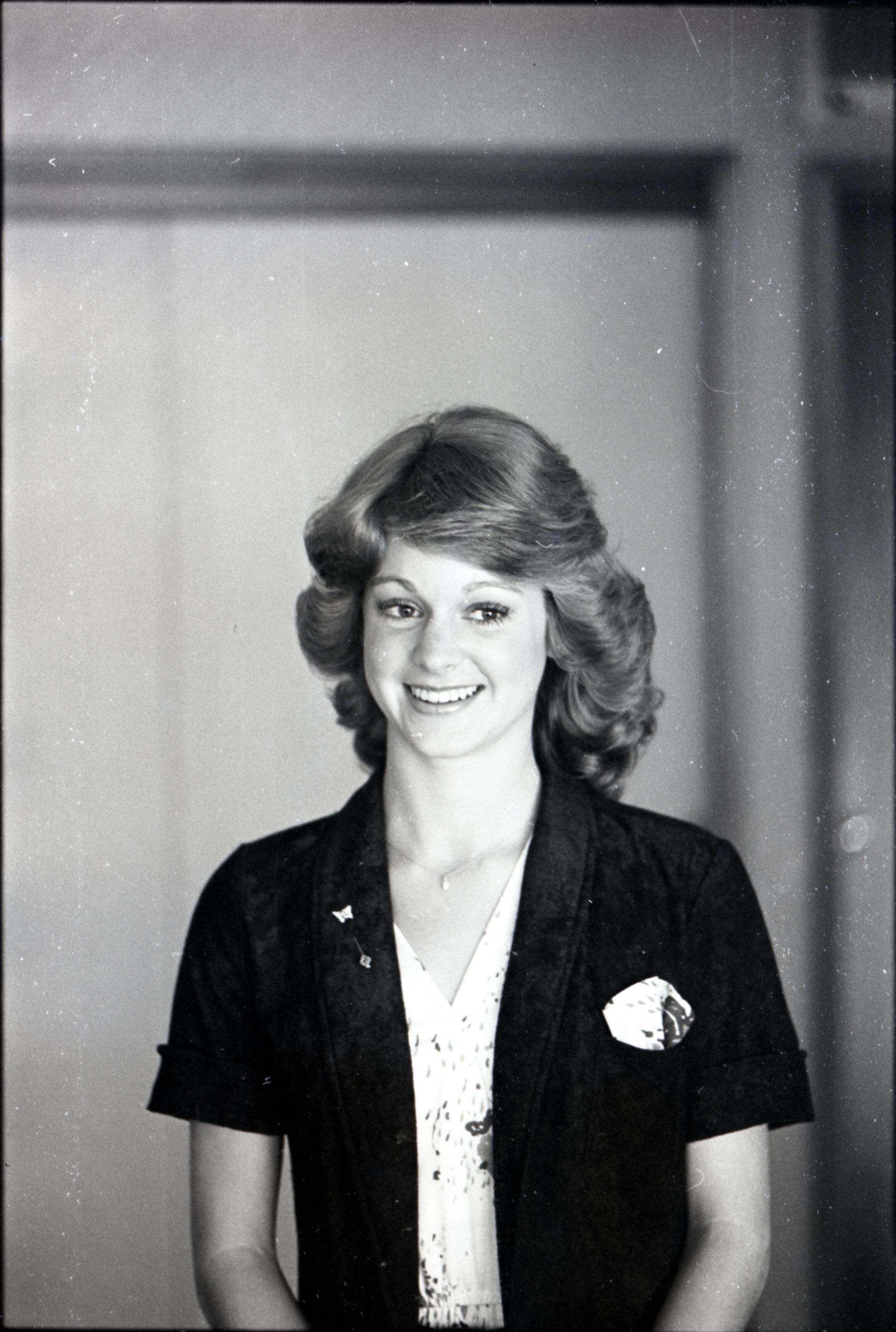 Lakefair Queen Candidates, 1980. These three black and white film negative strips were created for the Lacey Leader newspaper. These images show six different women (Carrie Conner, Carol Kinnaman, Linda Beyers, Colleen Parrish, Sheri DeWitt and Kristil Taylor) posing individually for portrait-style photos.Made/Created