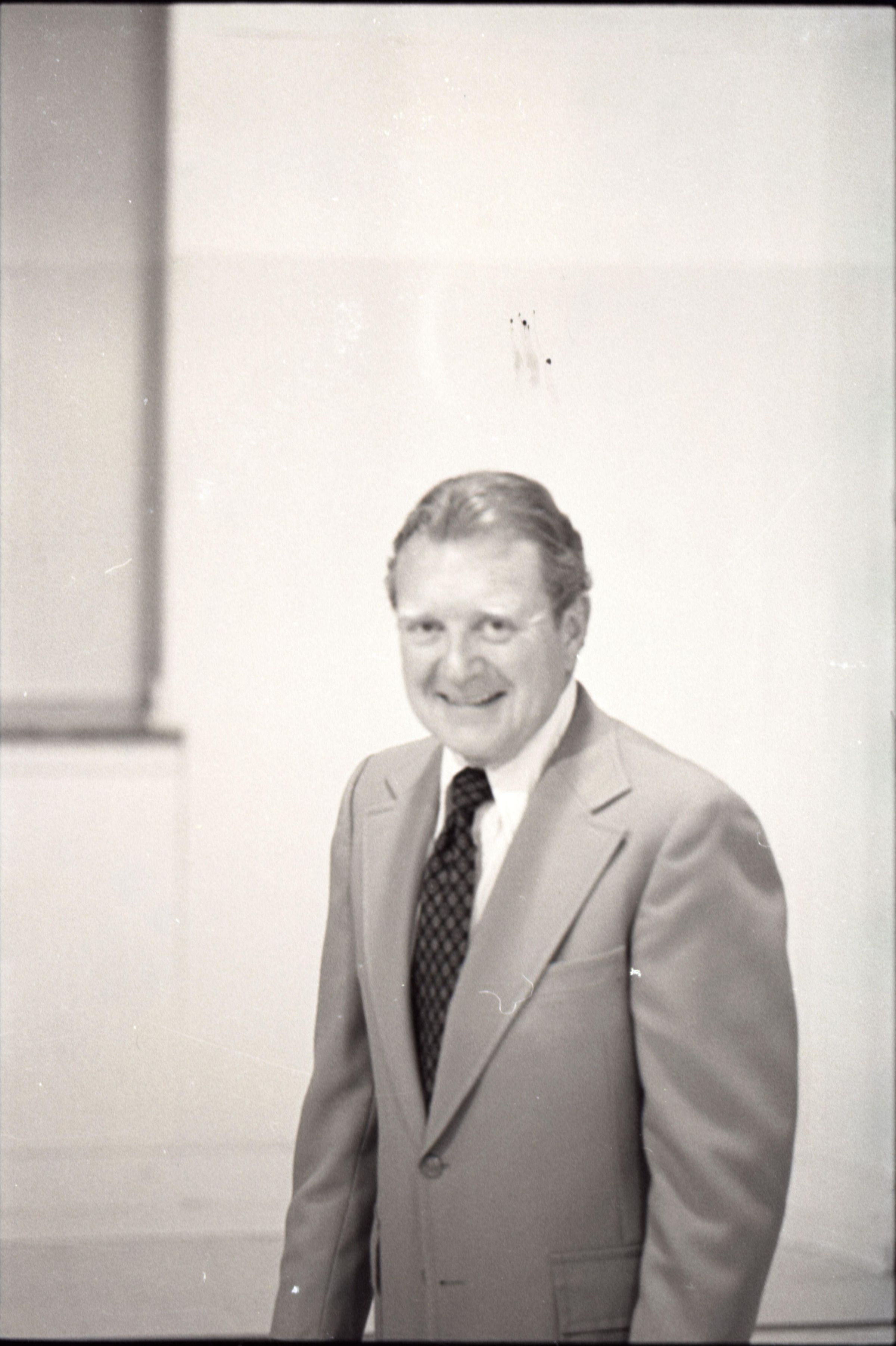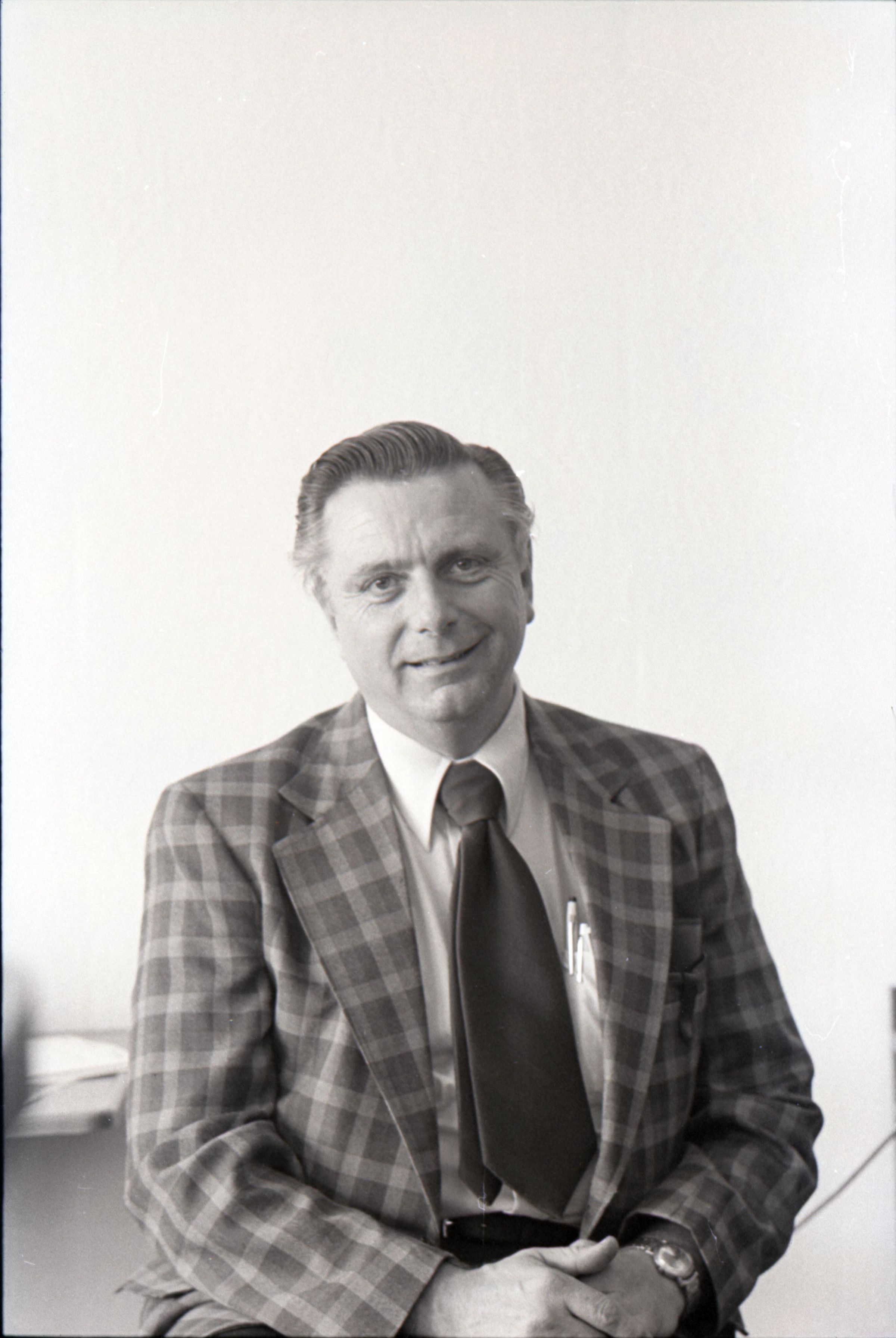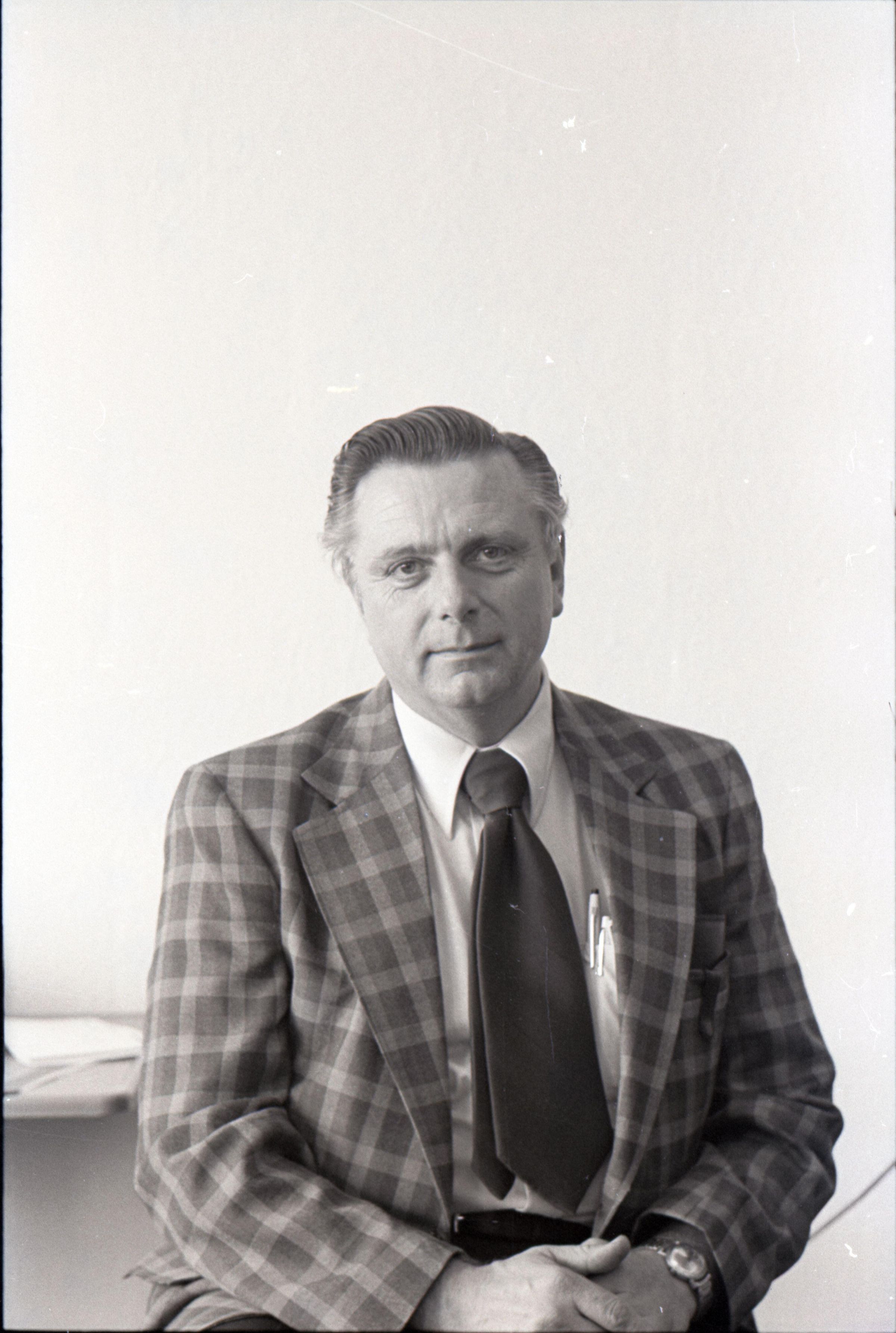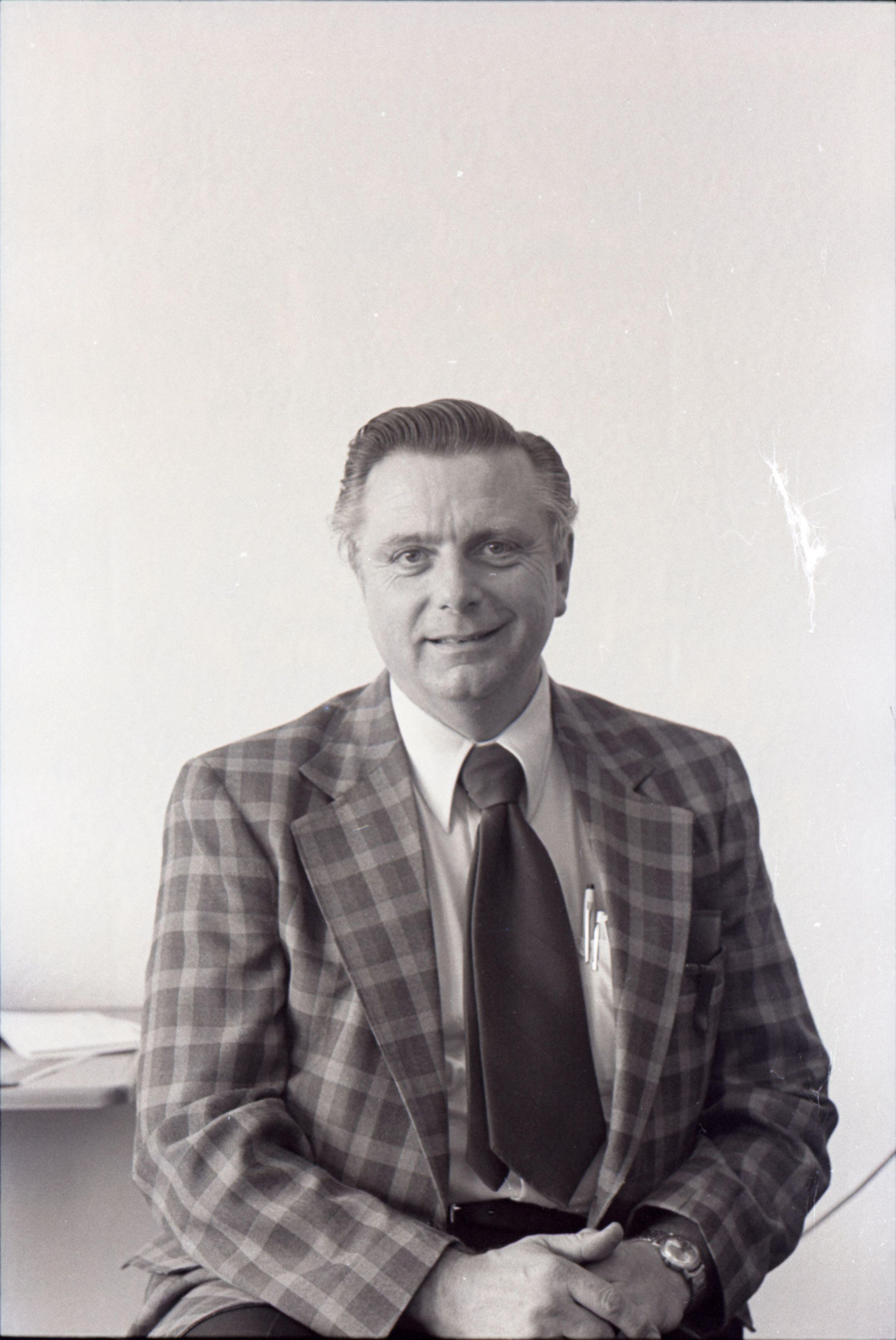 Olympia Port Commissioner Candidates, 1979. These three black and white film negative strips were created for the Lacey Leader newspaper. These images show six men (Bill Evans, Jim Wright, Jeff Harris, Henry Scheller, Jerry Christensen, and an unknown man) posing separately for photos. All of the men are shown from approximately the waist up.Made/Created