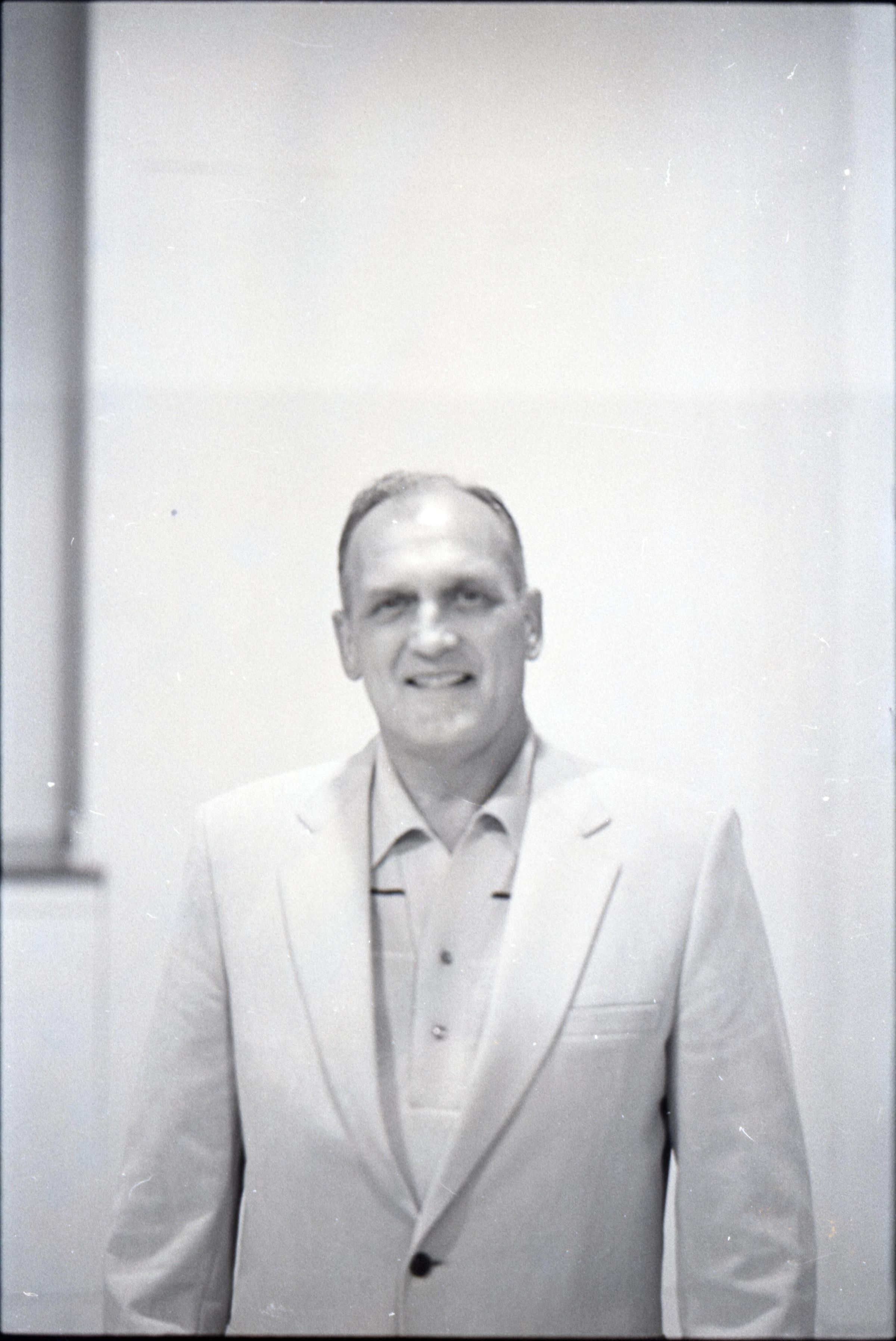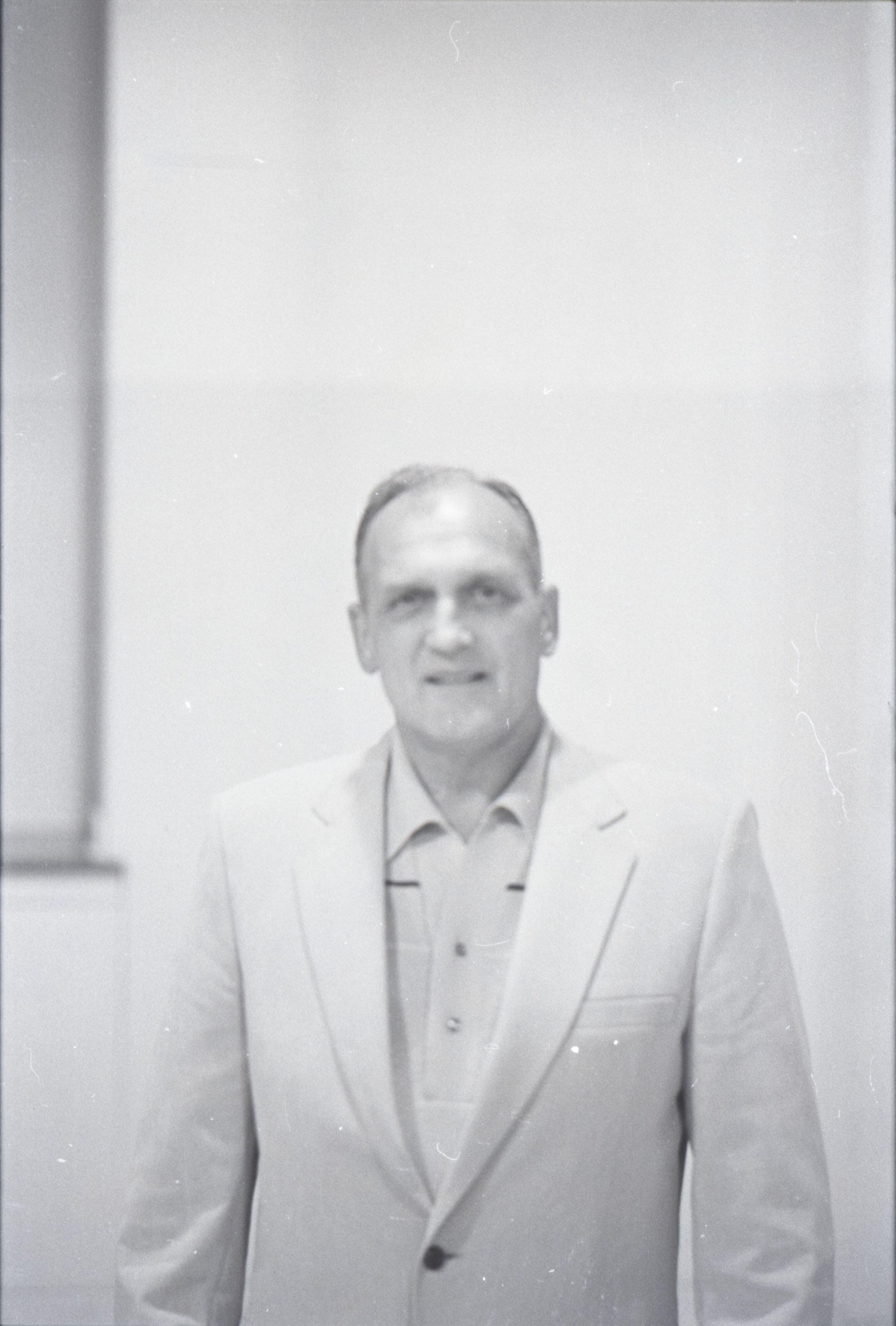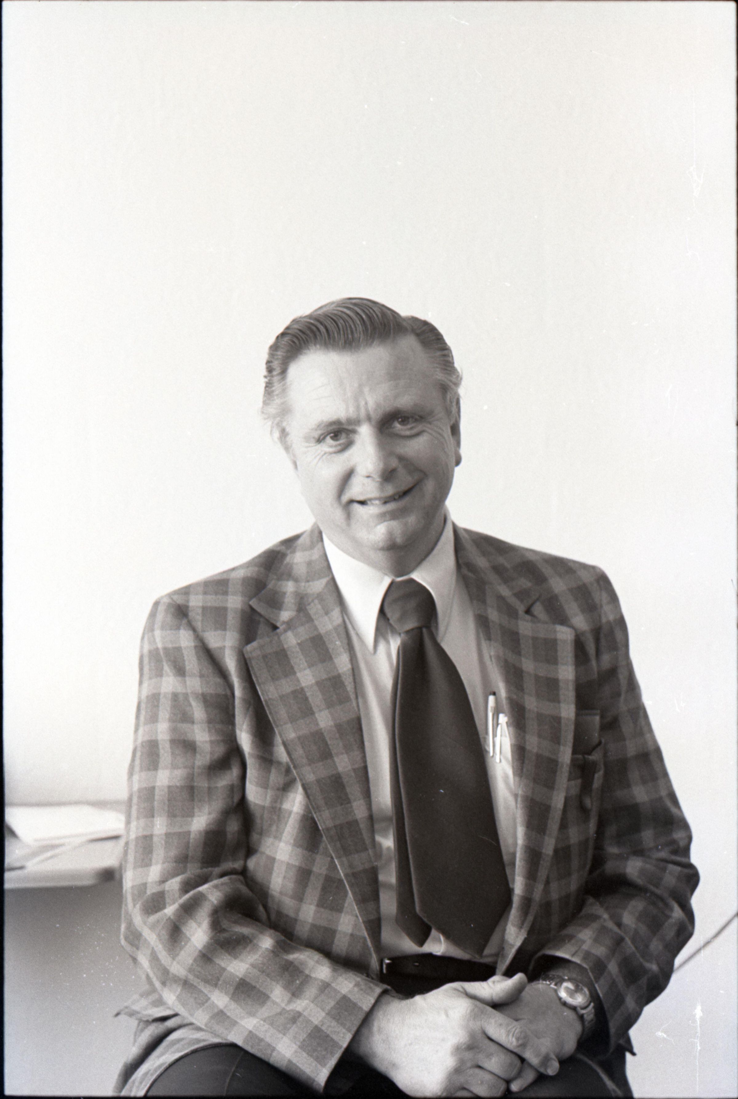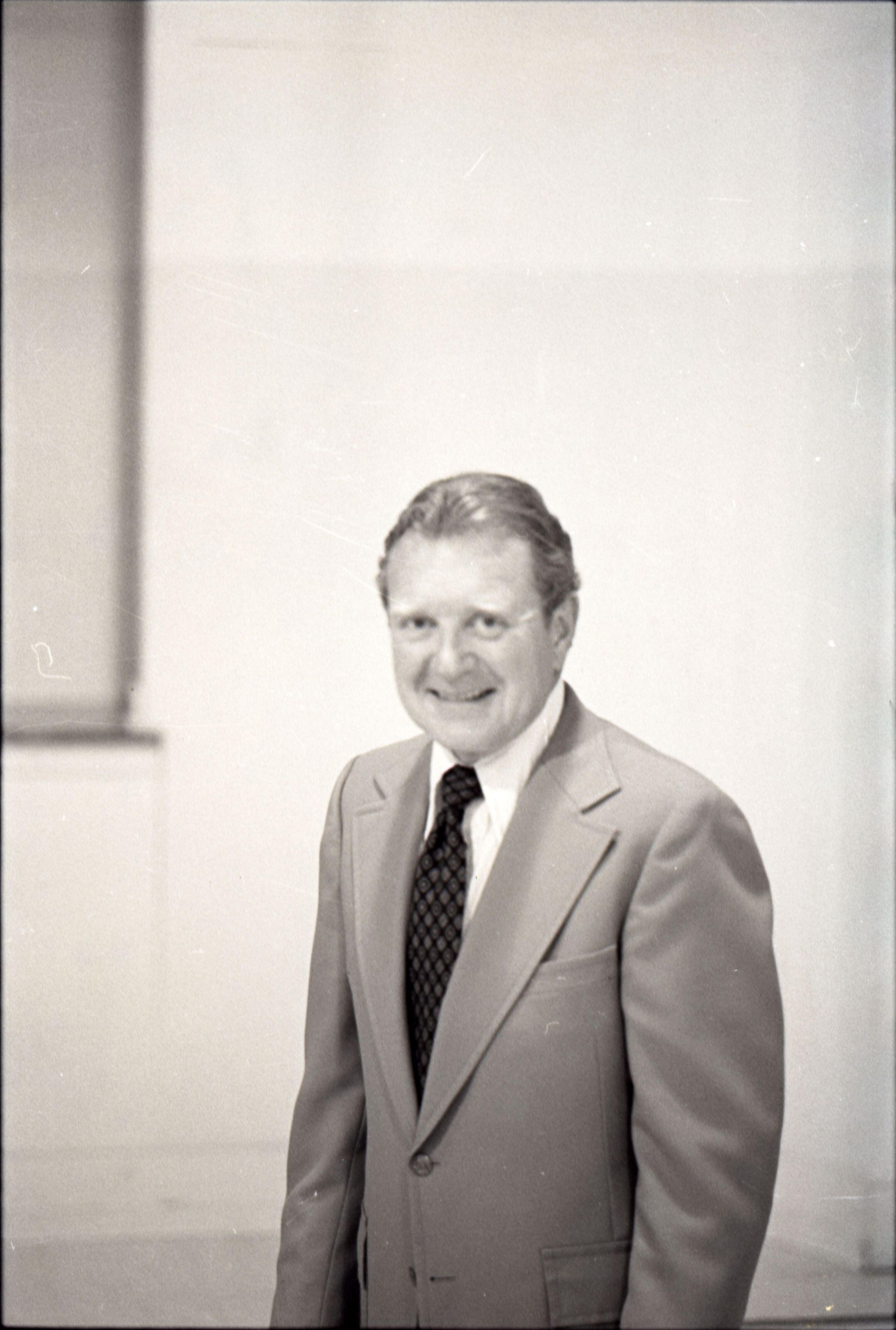 Olympia Port Commissioner Candidates, 1979. These three black and white film negative strips were created for the Lacey Leader newspaper. These images show six men (Bill Evans, Jim Wright, Jeff Harris, Henry Scheller, Jerry Christensen, and an unknown man) posing separately for photos. All of the men are shown from approximately the waist up.Made/Created