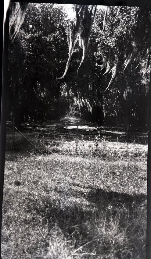 This negative is inserted along with a print of the image into a brown envelope which has typed "New Orleans--Avenue from Versailles Home to the Mississippi River, bordered and shaded by Live Oaks 10/16/29". Stamped is "232" and "indexed".Made/Created