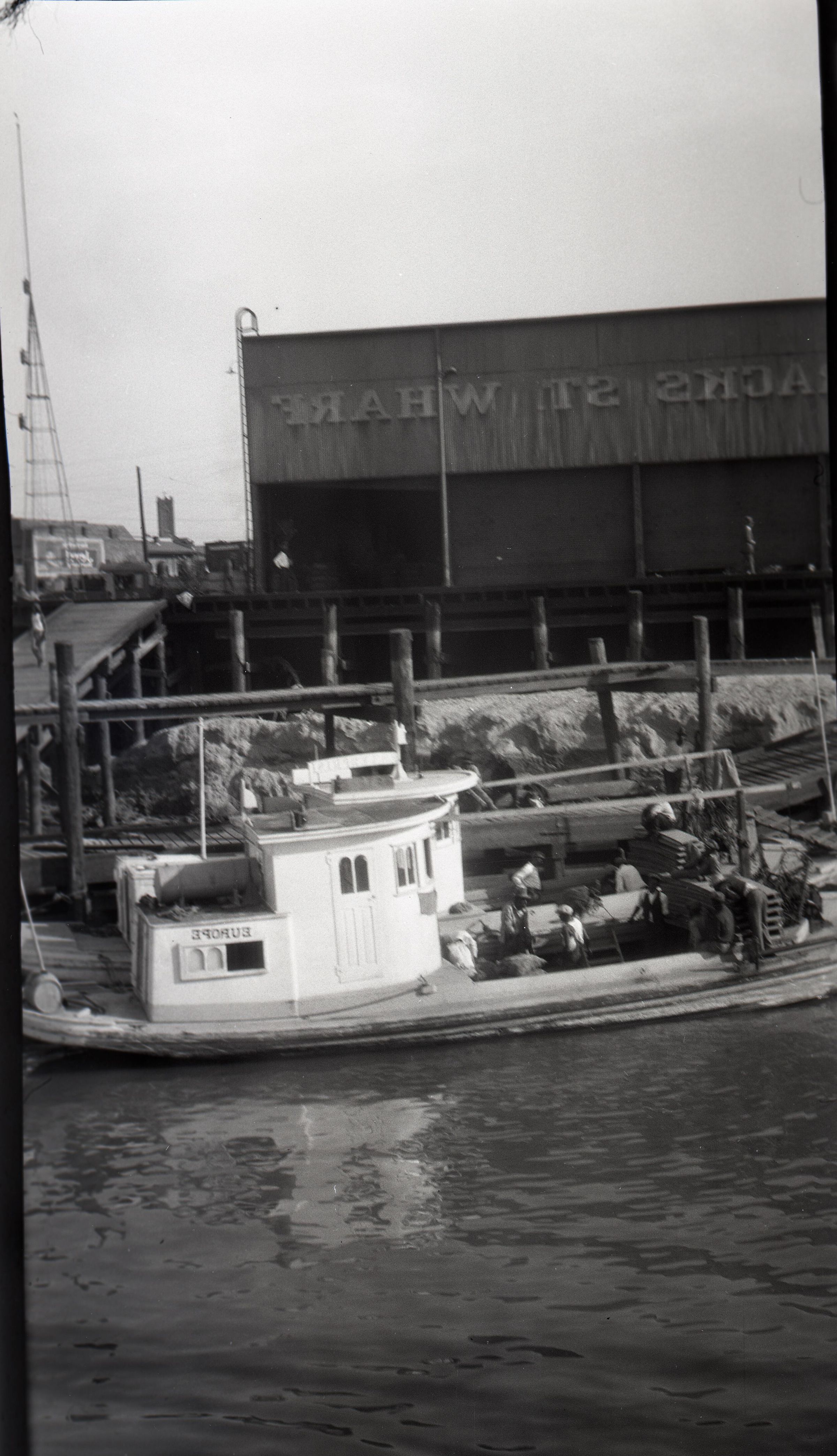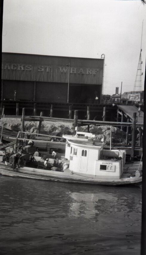 This negative is inserted along with a print of the image into a brown envelope that has typed "New Orleans--Oyster Boats on the Mississippi 10/16/29". Stamped is "235" and "indexed".Made/Created