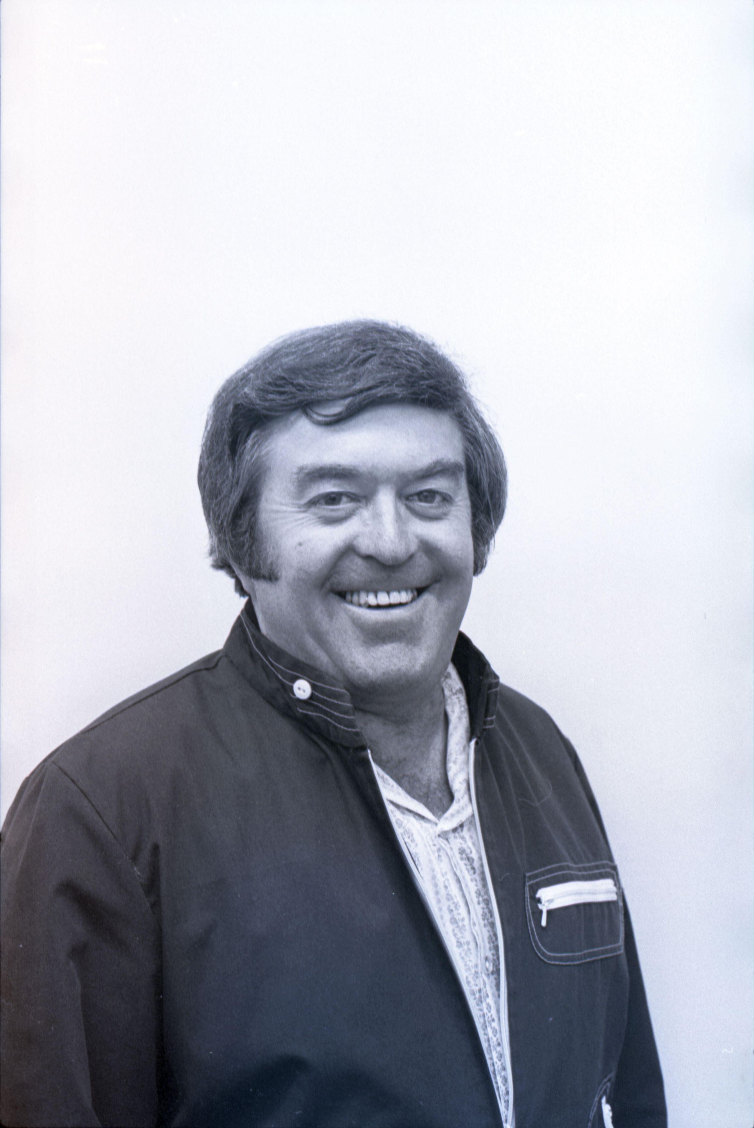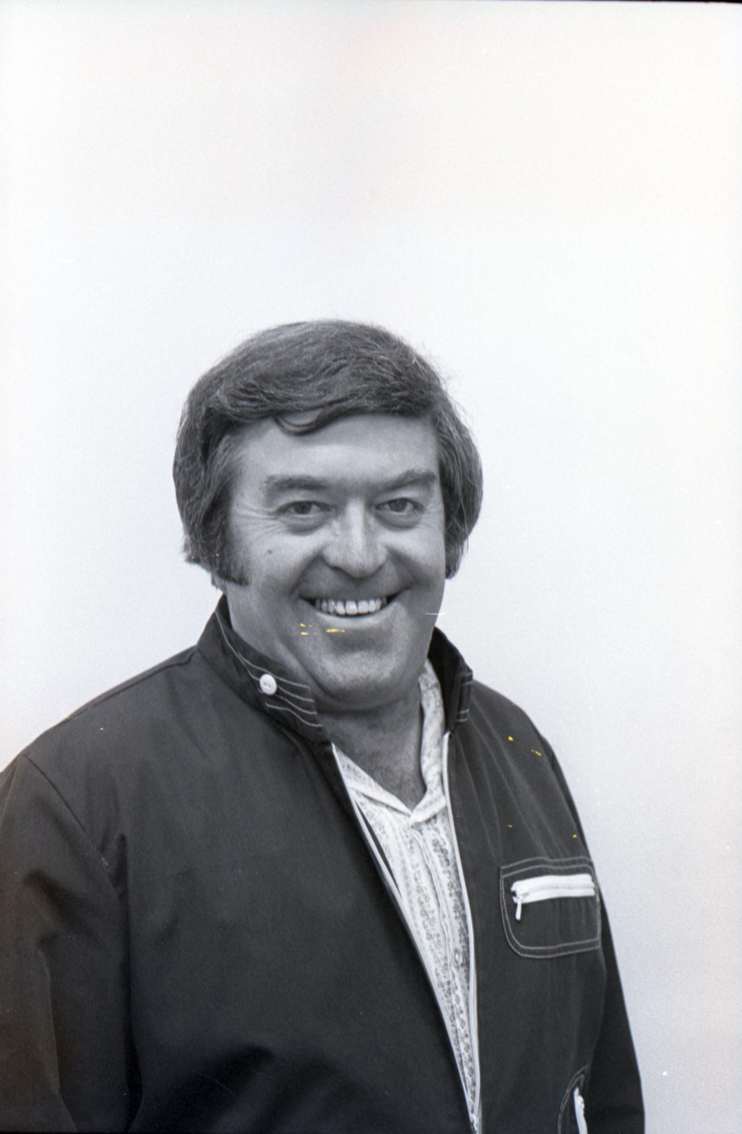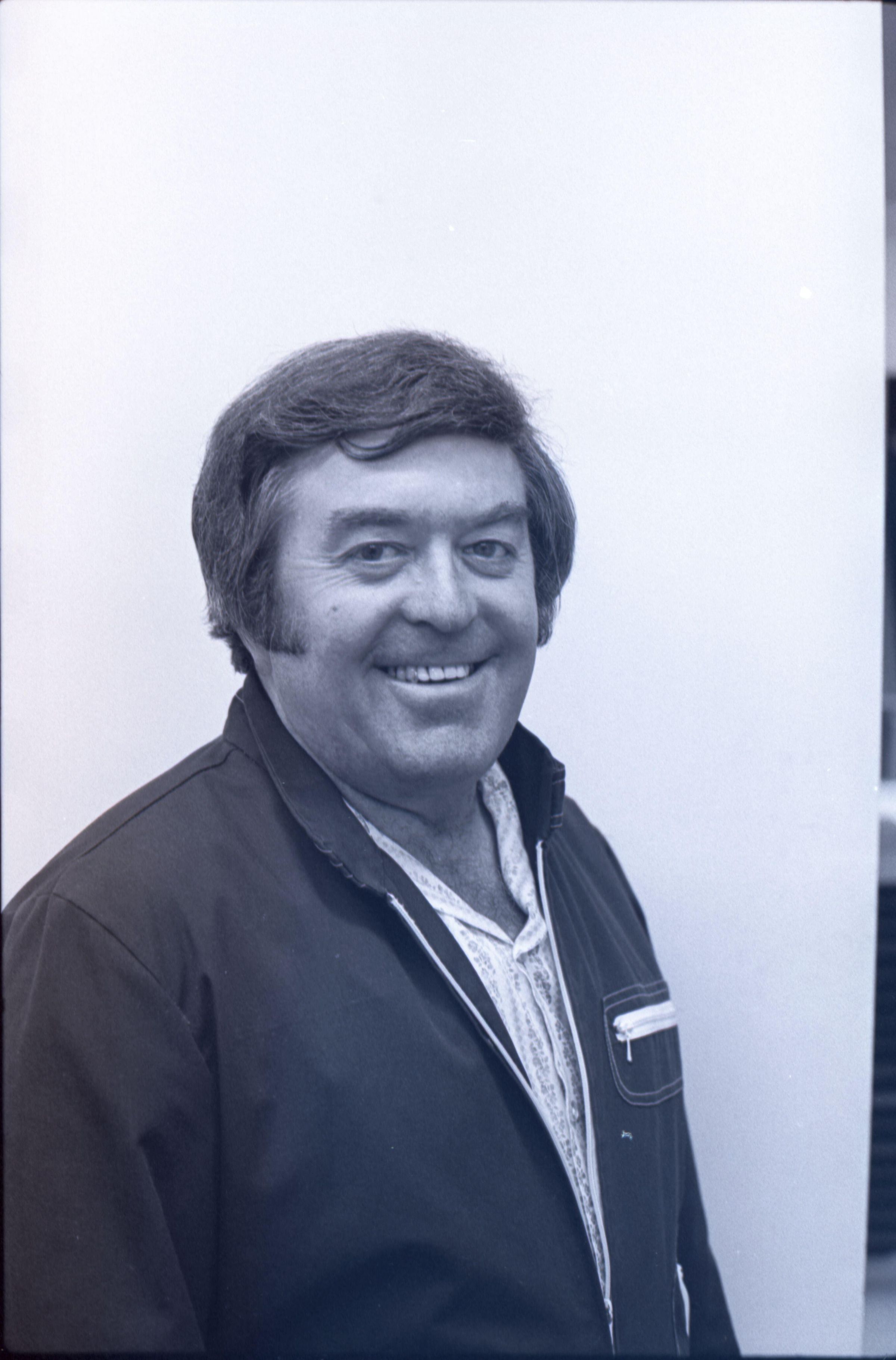 Jack Anderson, 1975. These two black and white film negative strips were created for the Lacey Leader newspaper. These images show a man (Jack Anderson) posing for photographs.Made/Created