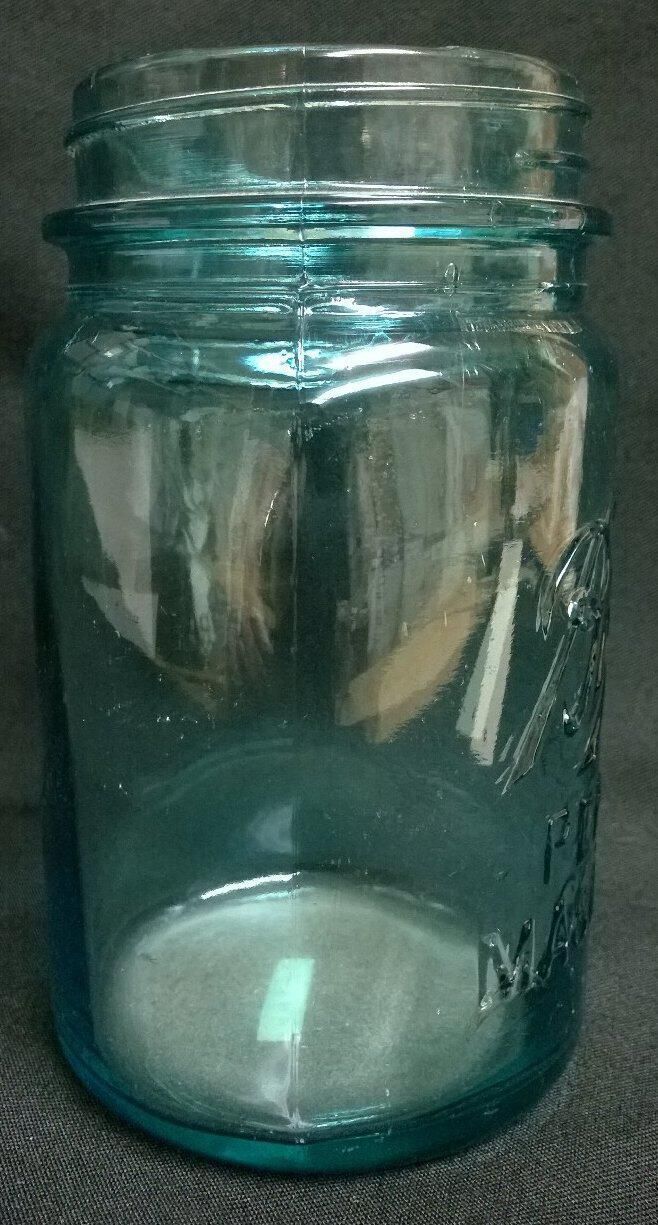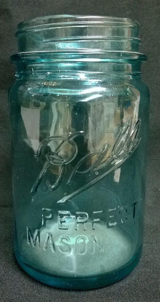 Embossed on the side "Ball" "perfect mason" A figure embossed on the bottom is obscured by the object ID tag.