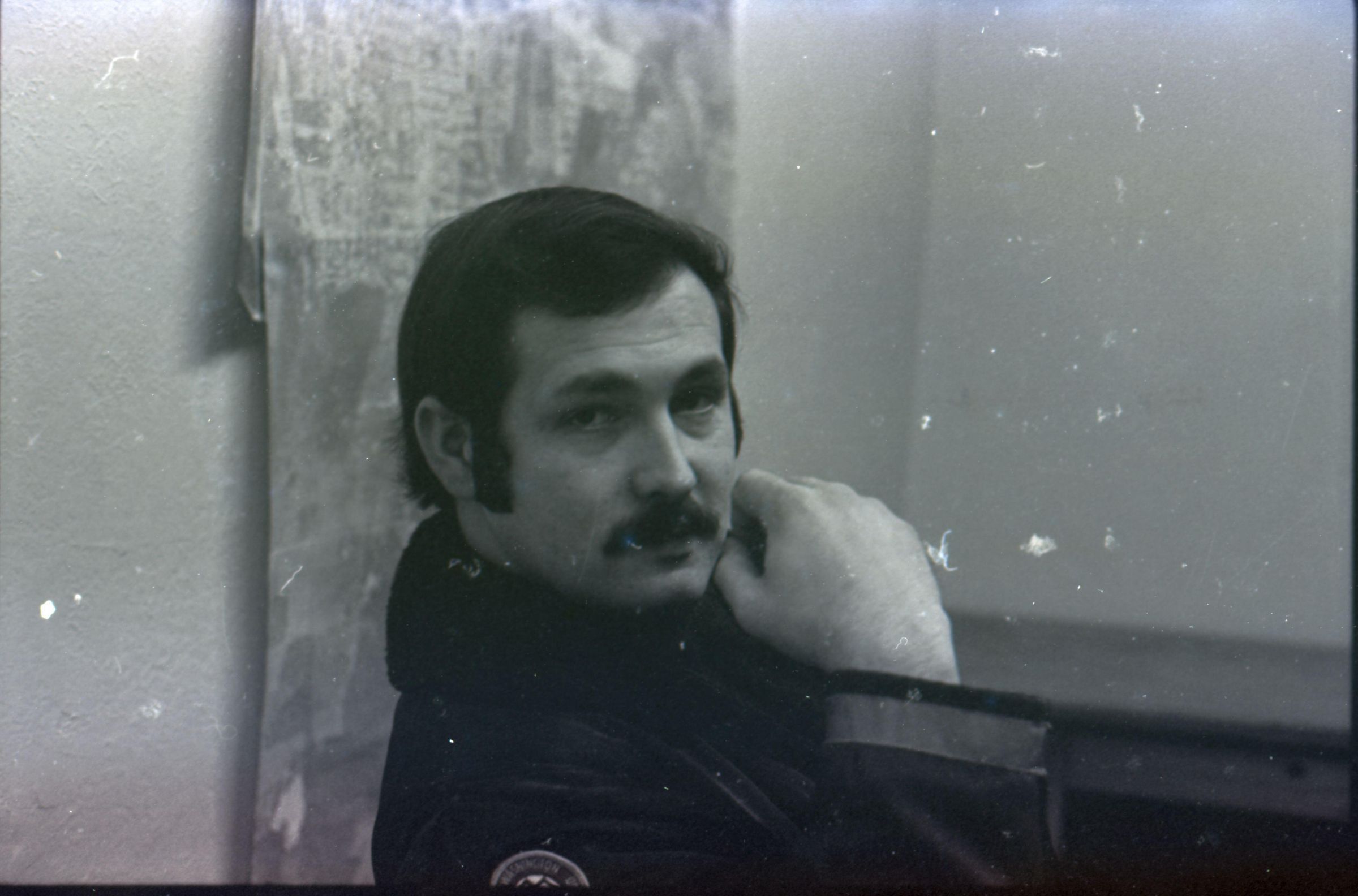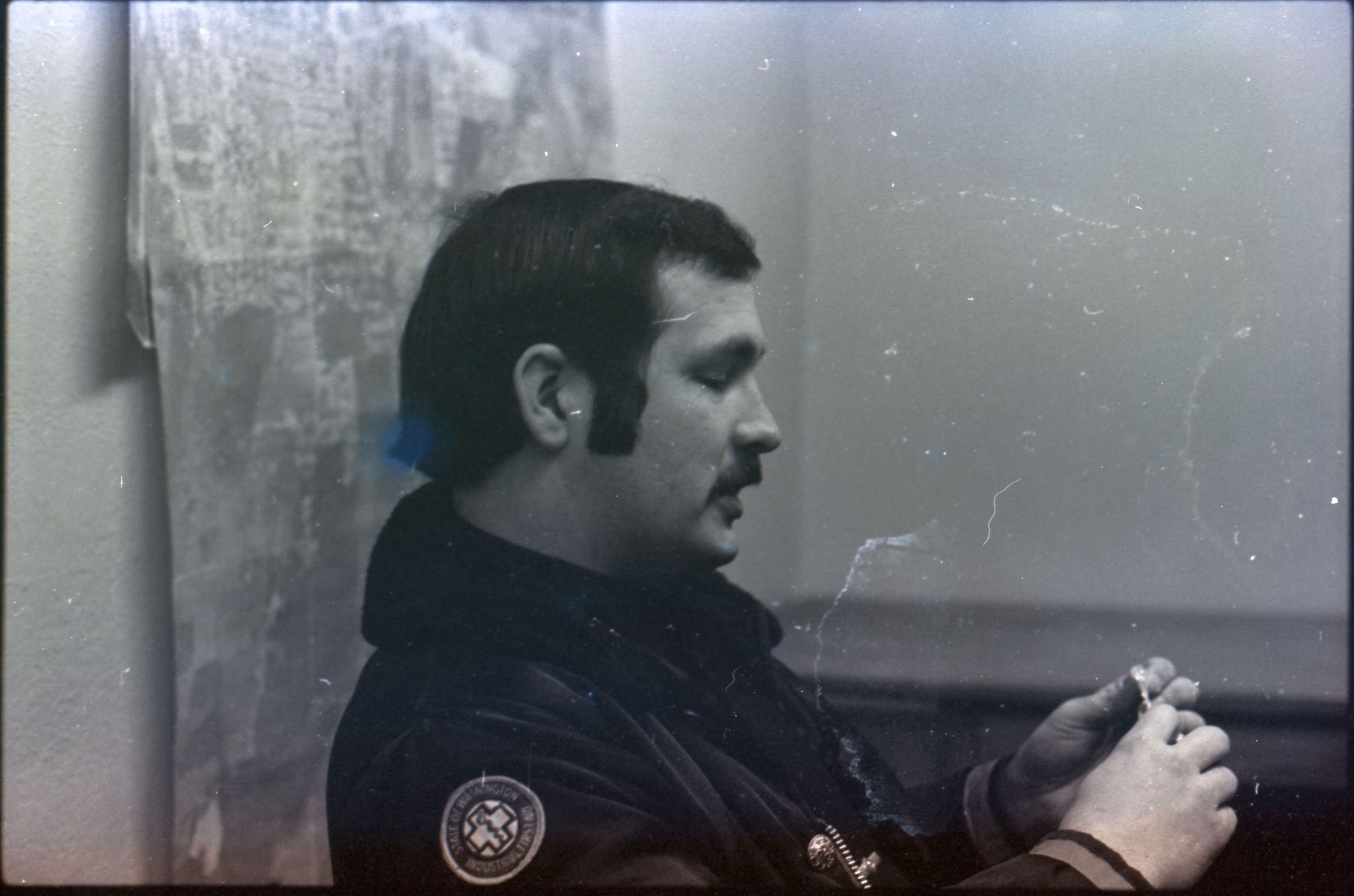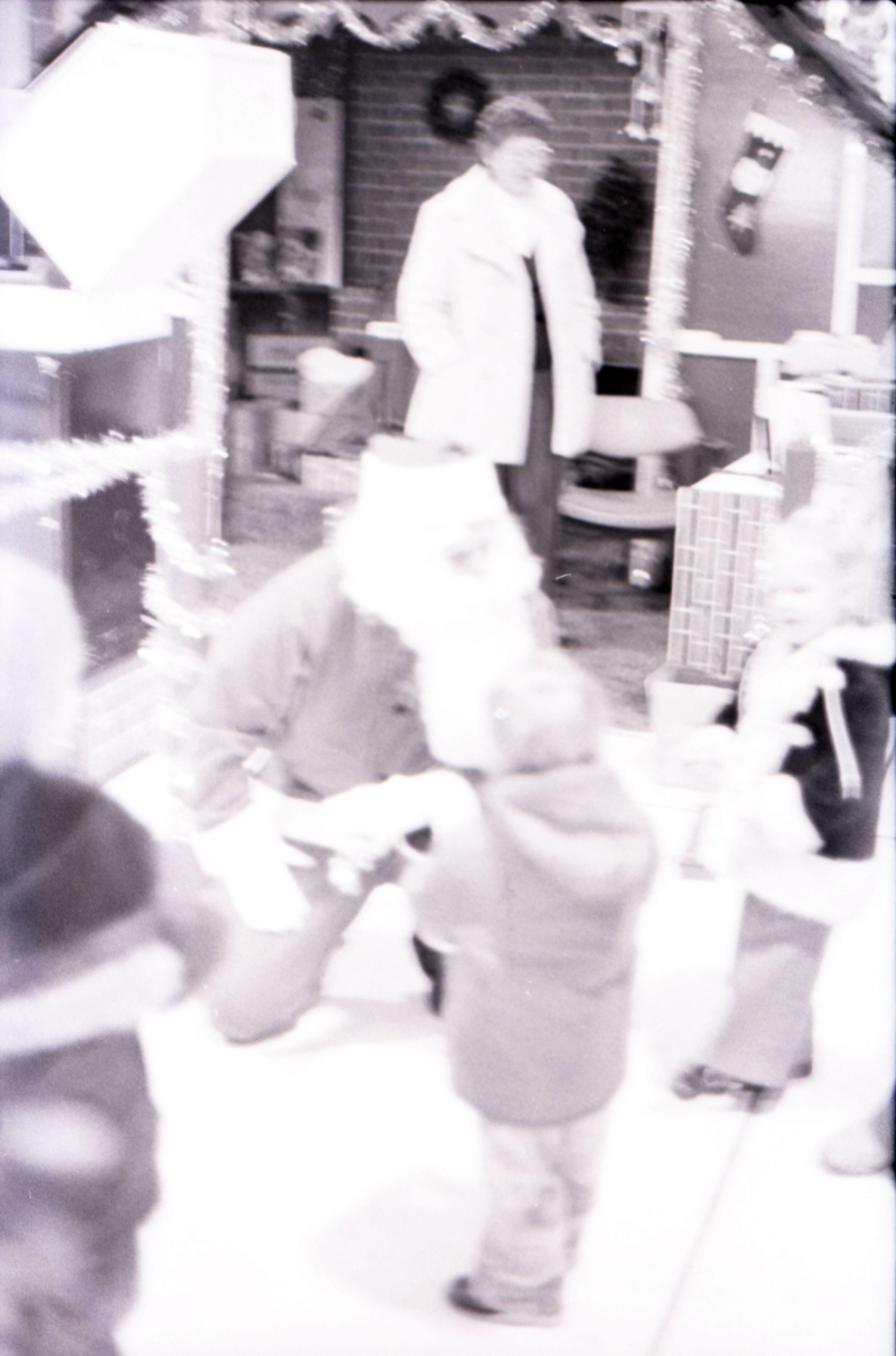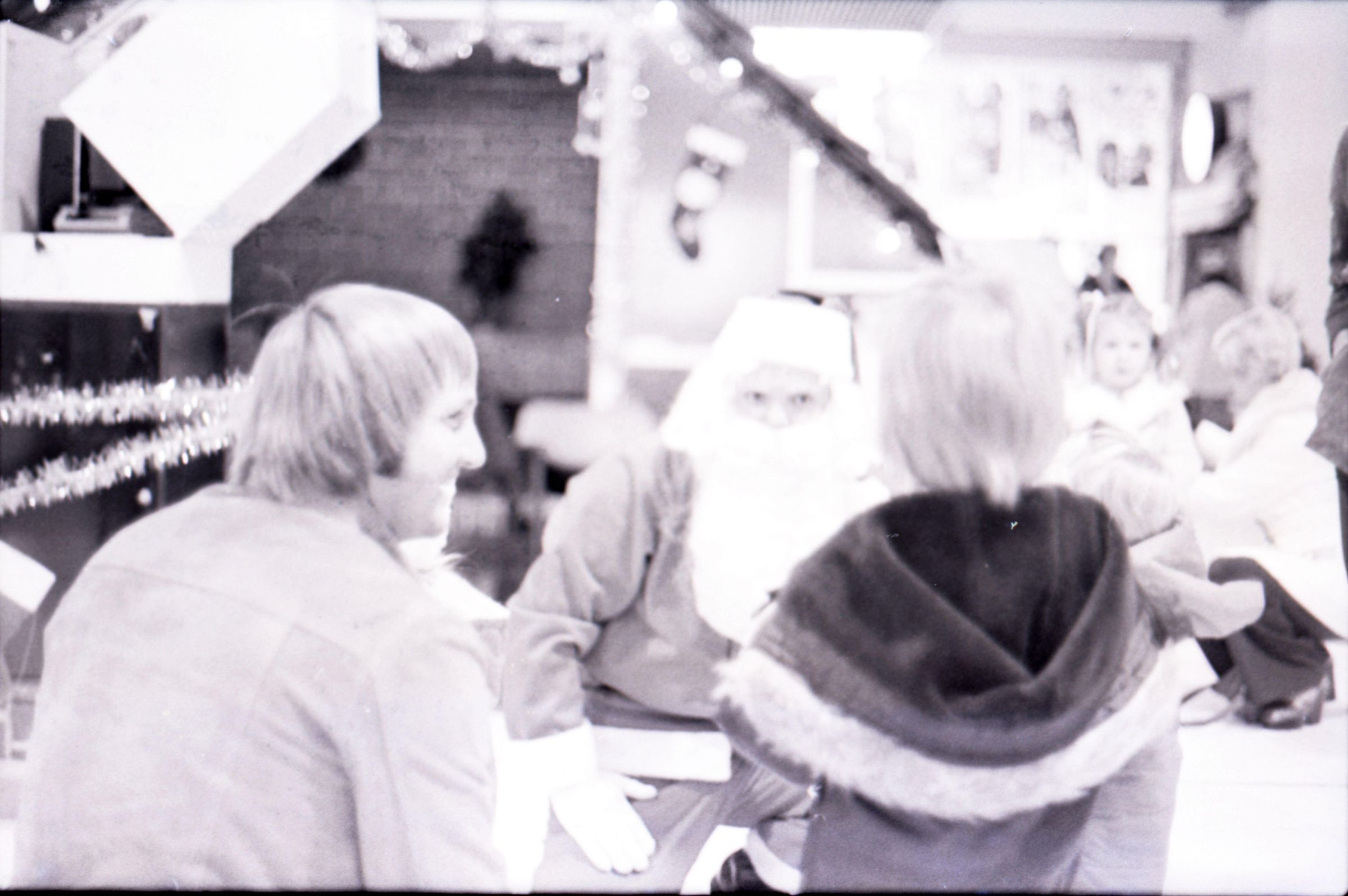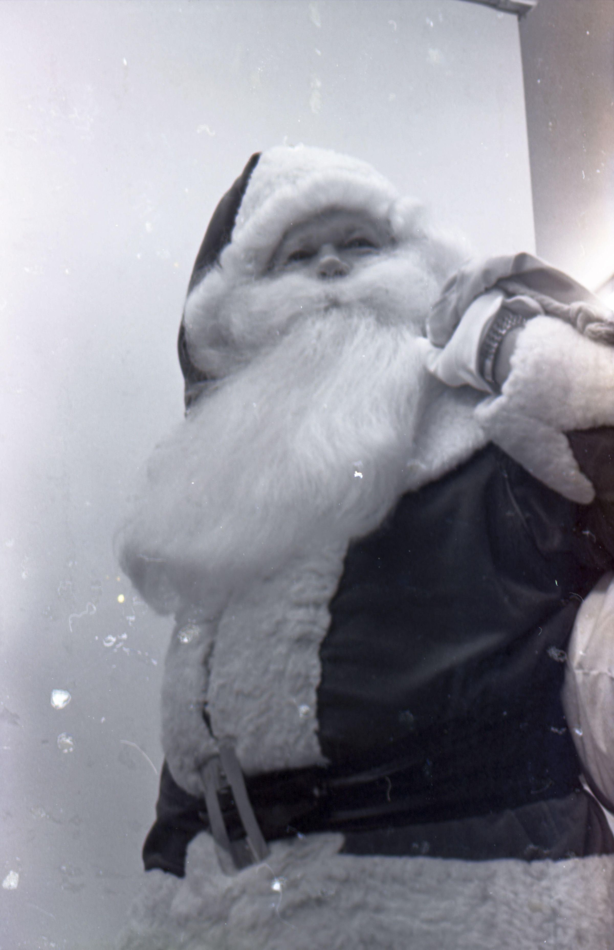 Freeman Rose, 1976. These three black and white film negative strips were created for the Lacey Leader newspaper. These images show a man (Freeman Rose) dressed as Santa Claus posing individually for photos, an unknown man with a mustache, and Freeman Rose dressed as Santa Claus meeting children.Made/Created