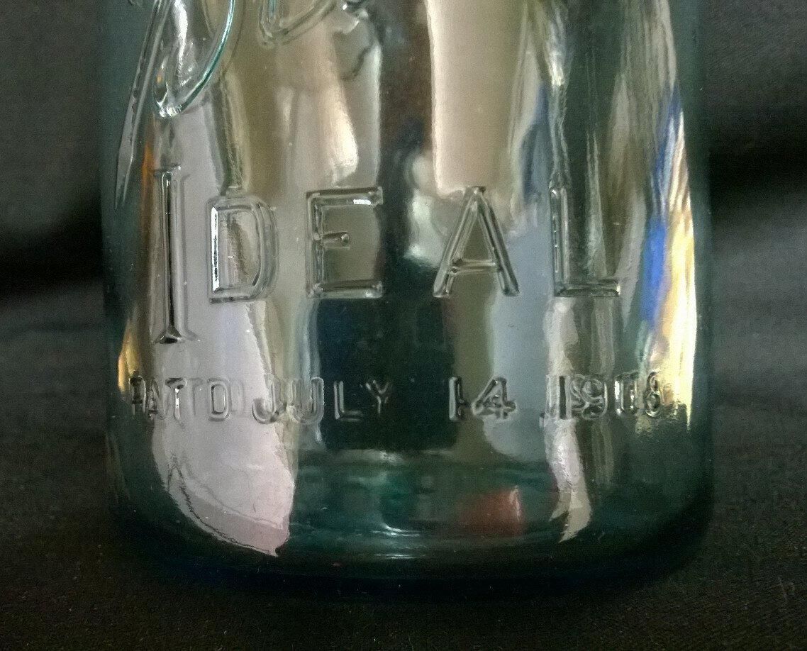 Maker's Mark: 11/30/14 It is embossed: On side near lip: "wire side" "21443" On the side: "Ball" "Ideal" "Pat D July 14 1908" On the bottom: "2" with a short horizontal line below. RFJ