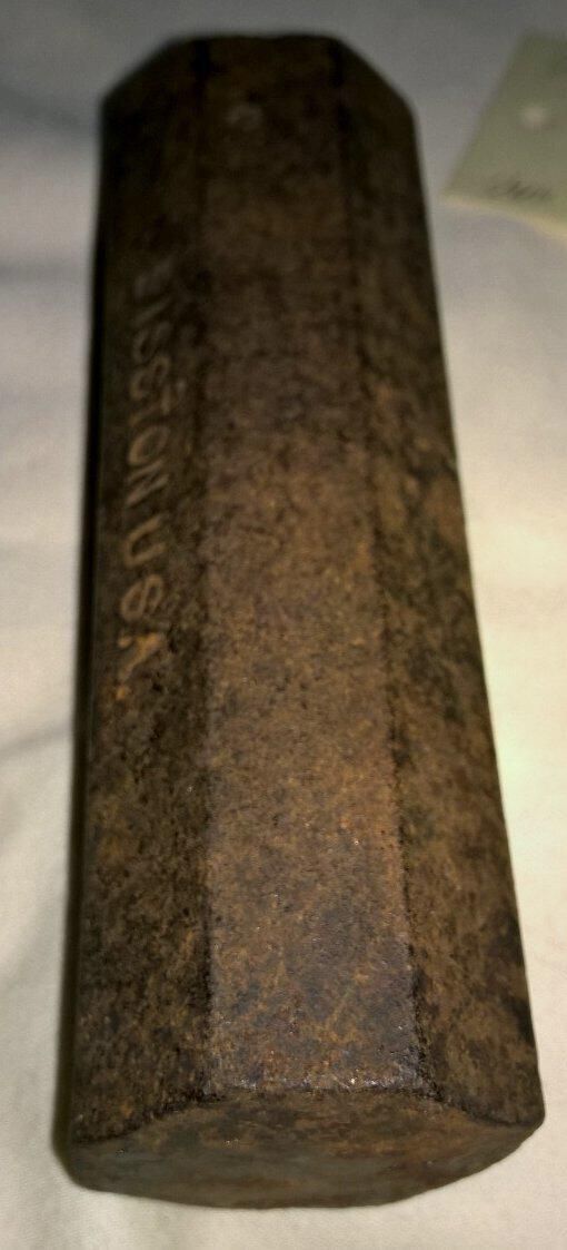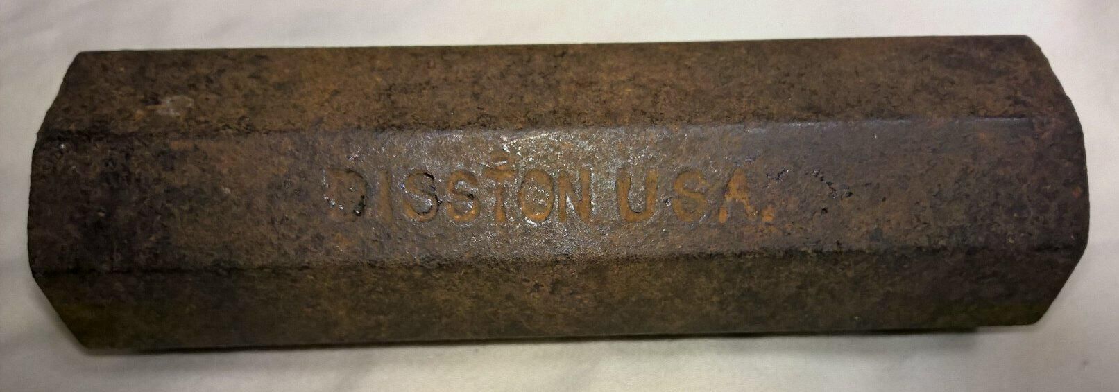Octagon shaped metal cylinder for setting the teeth of a crosscut saw, used with a hammer that is designed to work with the anvil.. The face of the cylinder is machined so as to give the teeth a proper angle. On the side of the cylinder is stamped "Disston USA".Made/Created