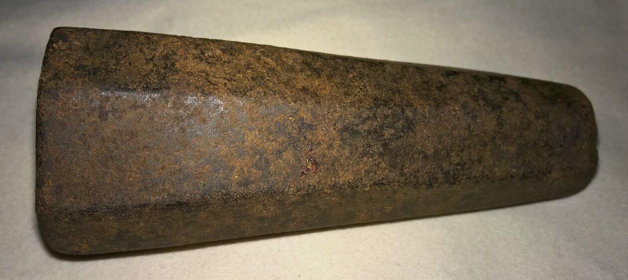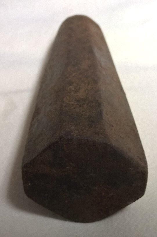 Tapered octagon shaped cylinder for setting the teeth of a cross-cut saw. The object is designed to be used with a setting hammer. Four of the eight faces are wider than the other four. No marks or images were found on the object.Made/Created