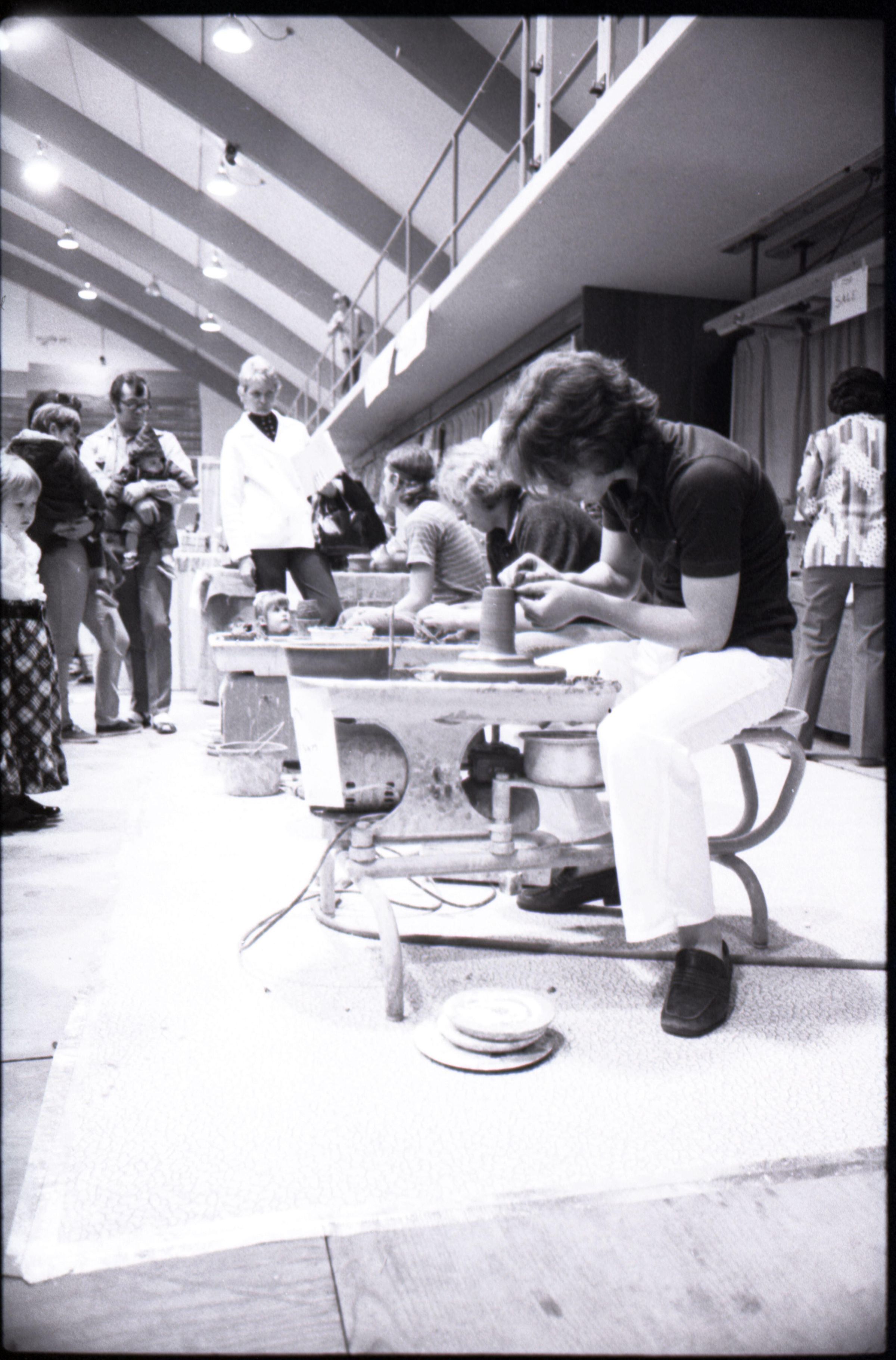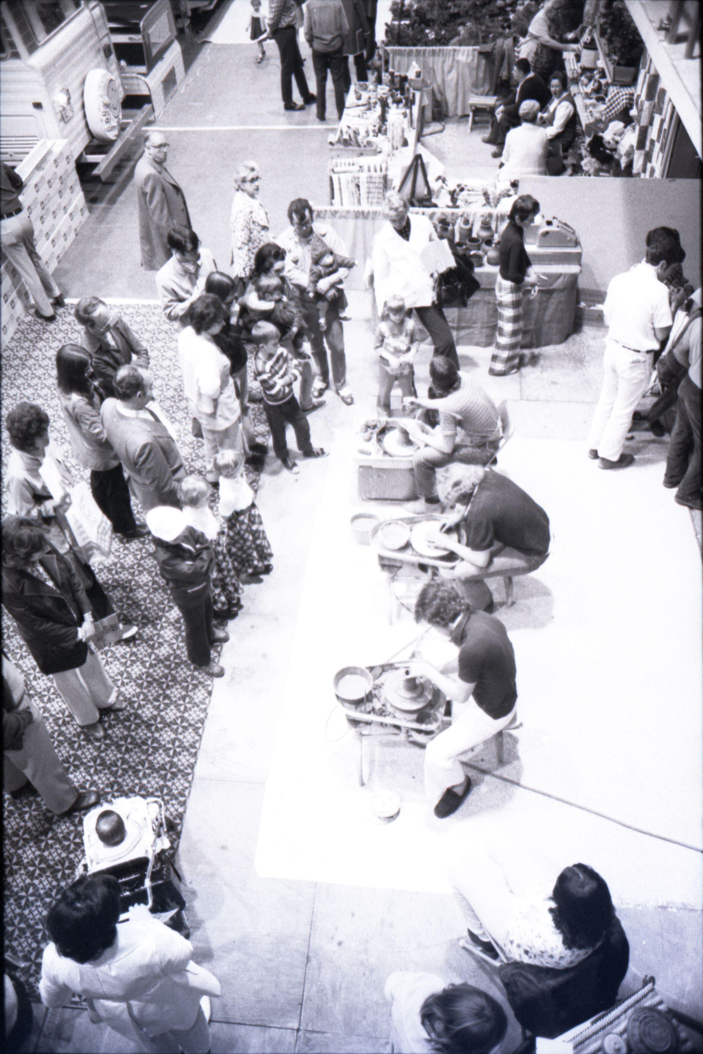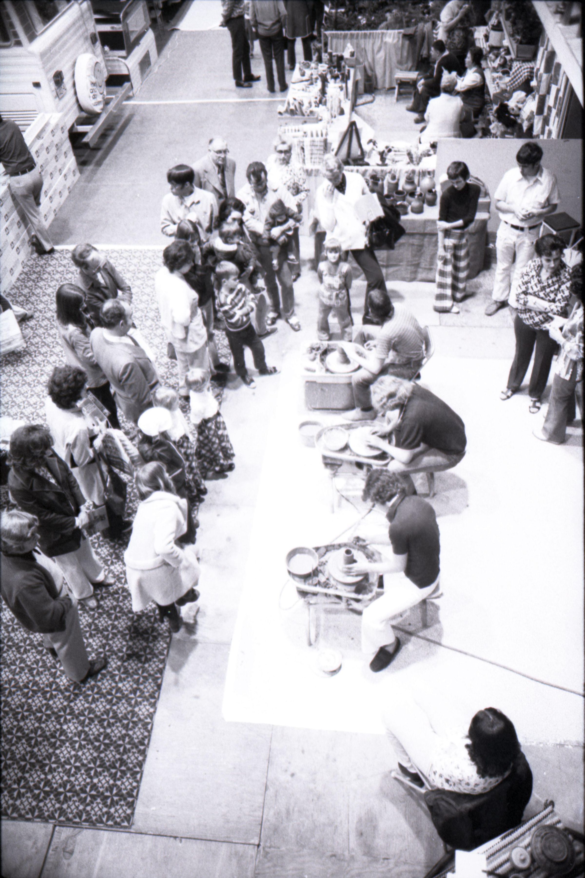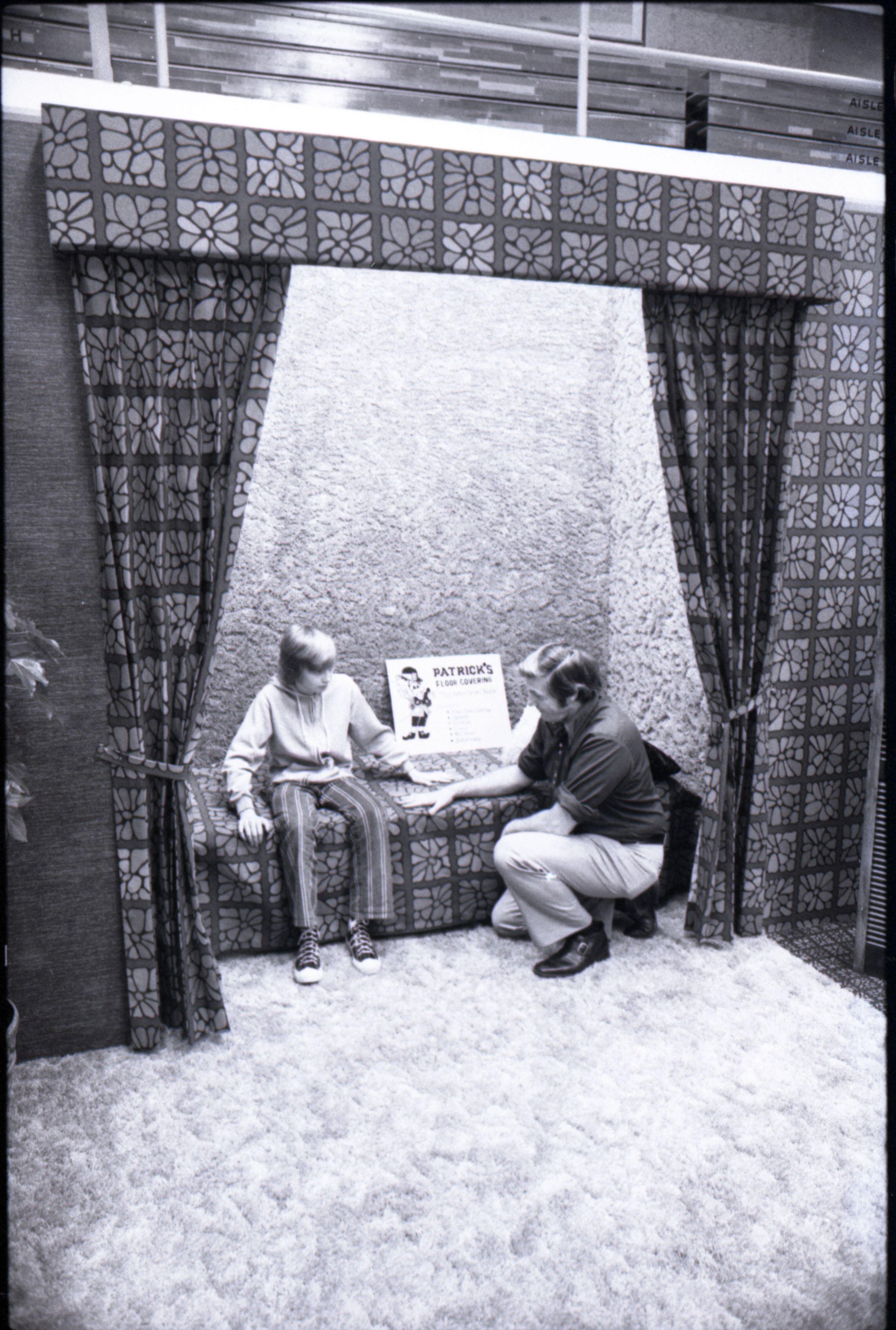 Home Show and Horses, 1972. These five black and white film negative strips were created for the Lacey Leader newspaper. These images show a home show which appears to have taken place in the pavilion on the Saint Martin's campus, and people posing with a horse outdoors.Made/Created