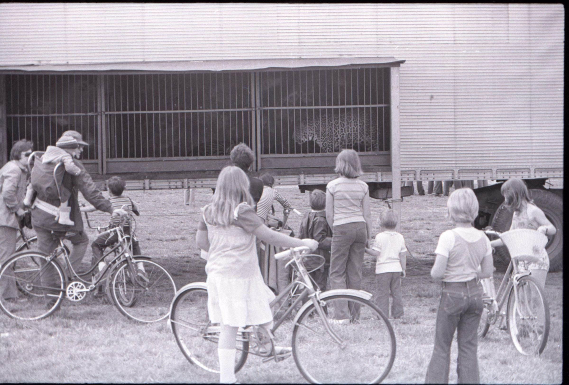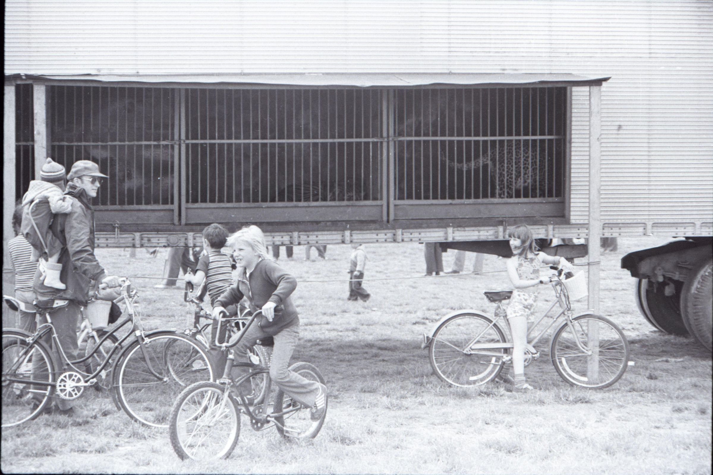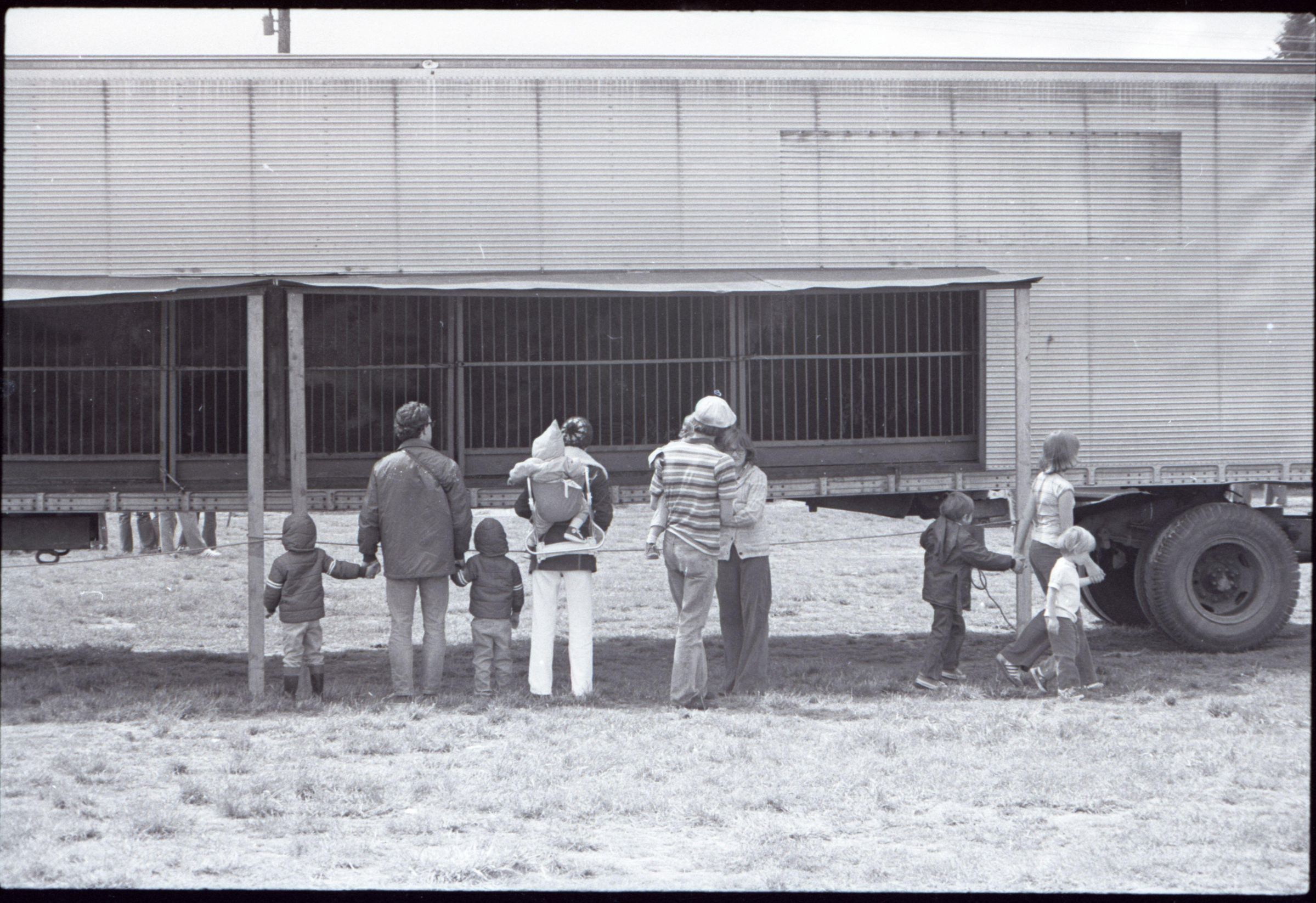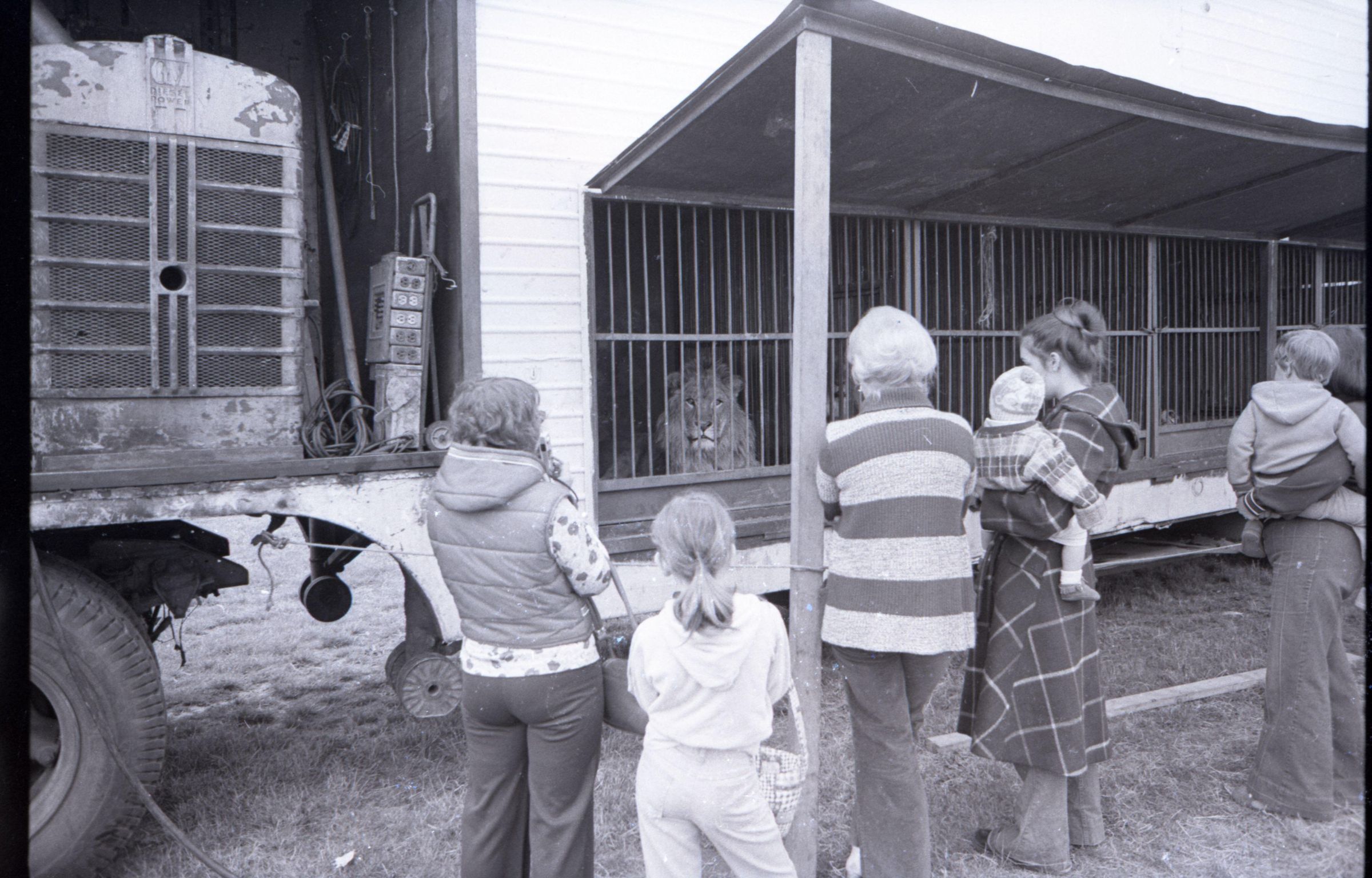 Circus, 1978. These eleven black and white film negative strips were created for the Lacey Leader newspaper. These images were created using four separate film negative strips, so some of the physical numbers on the strips are repeated. For the purposes of this description, the strips will be grouped according to the film roll from which they originally came. Each group will be assigned a lower-case letter to go along with the physical numbers on the strips (1a, 2a, 3a, 1b, 2b, 3b, etc.) to help differentiate between images.