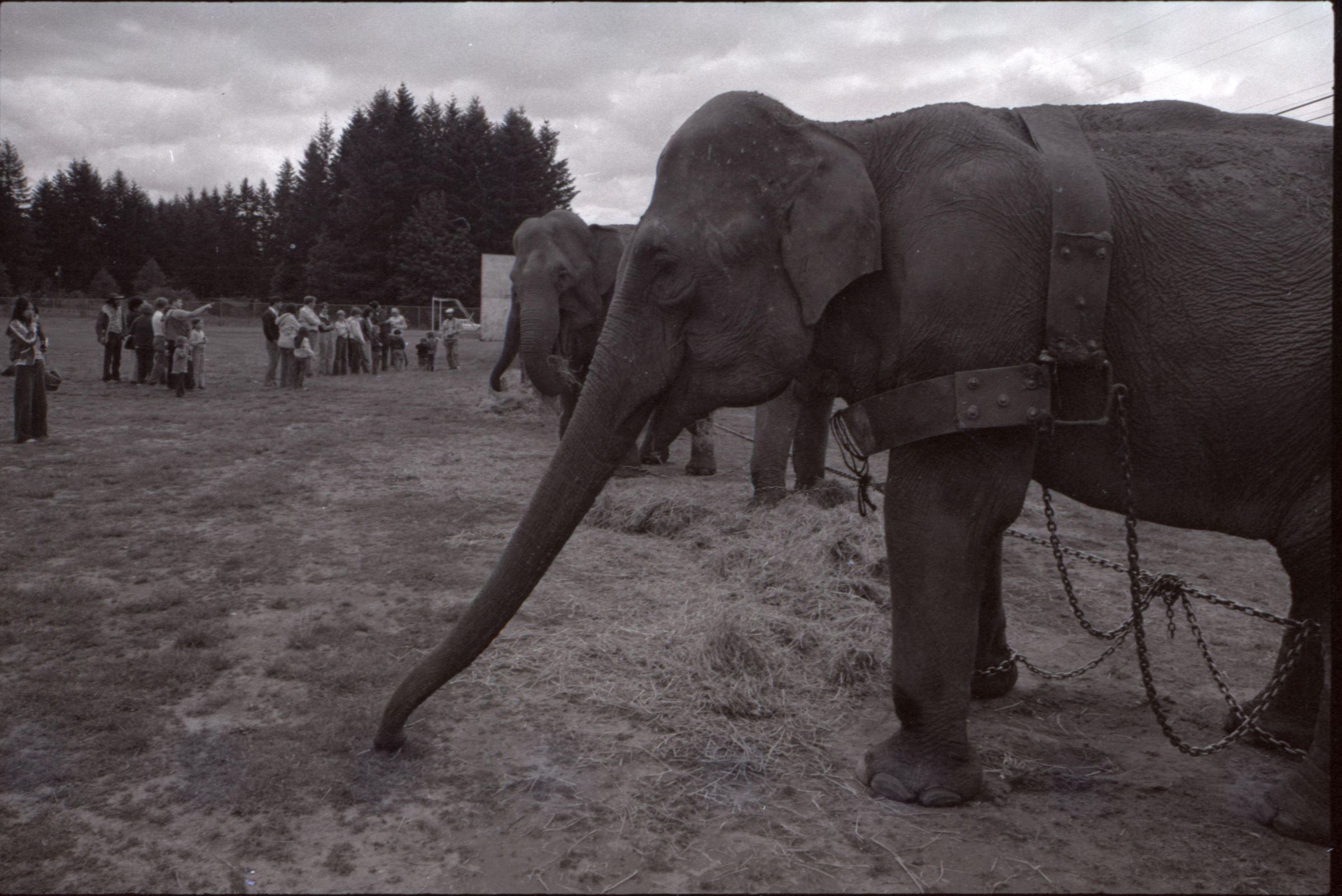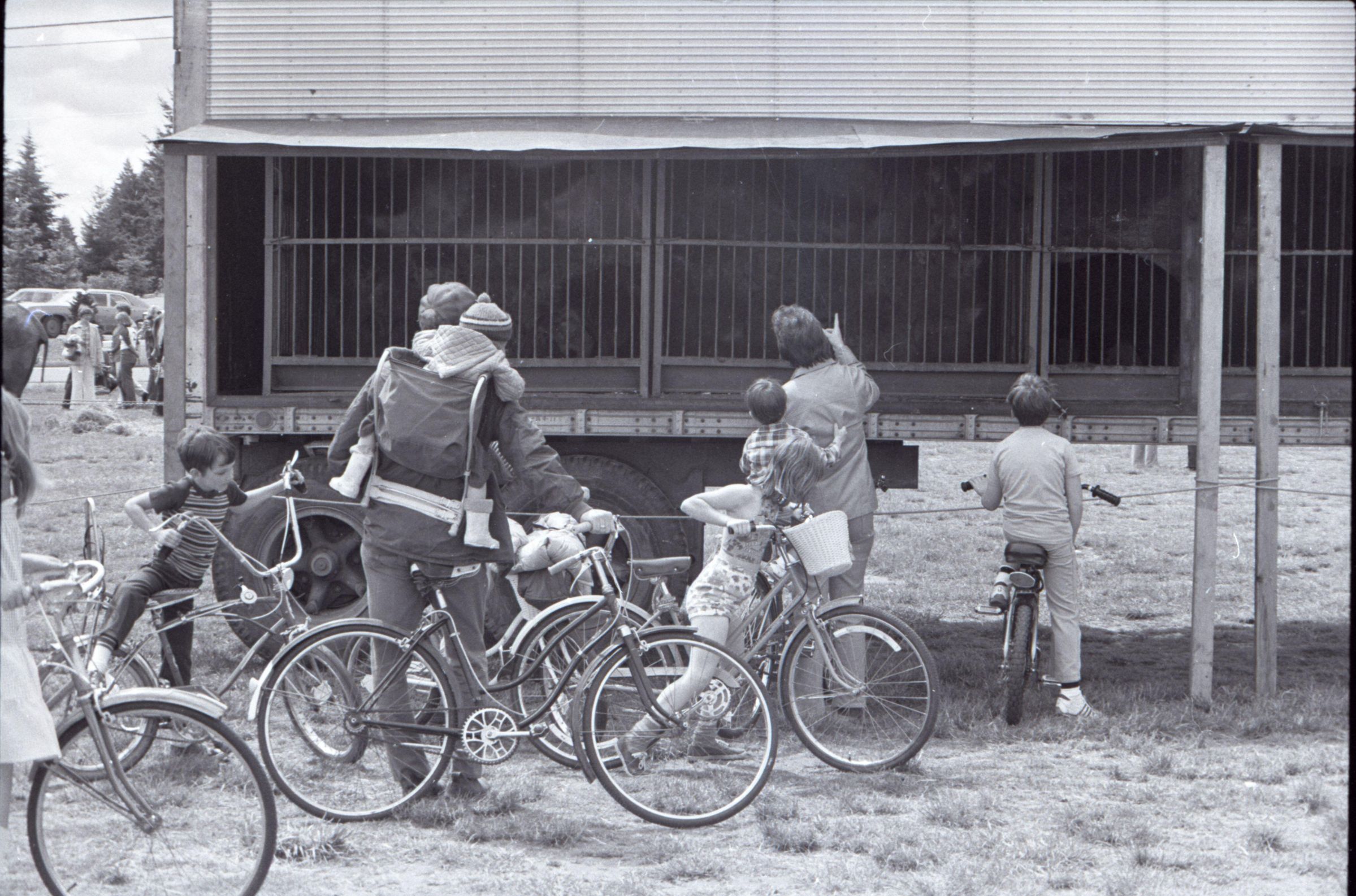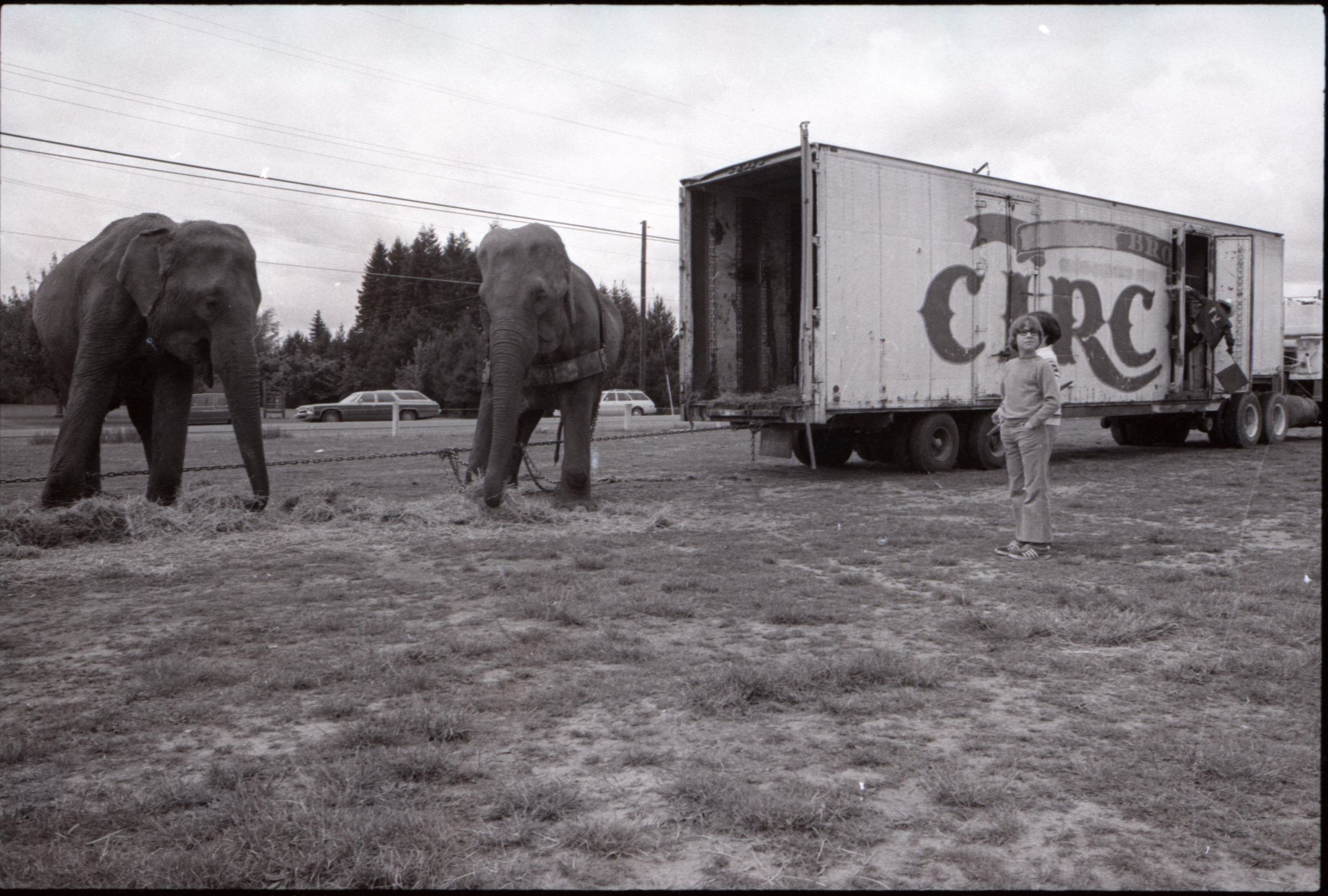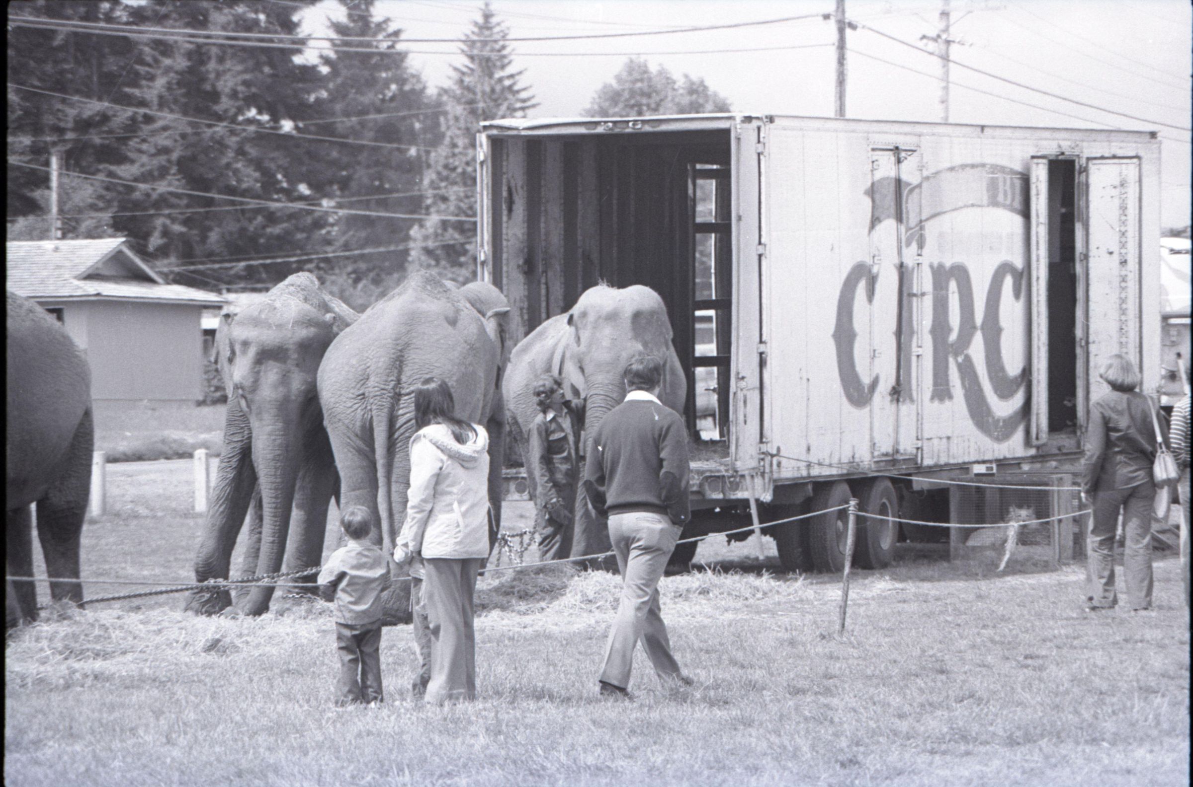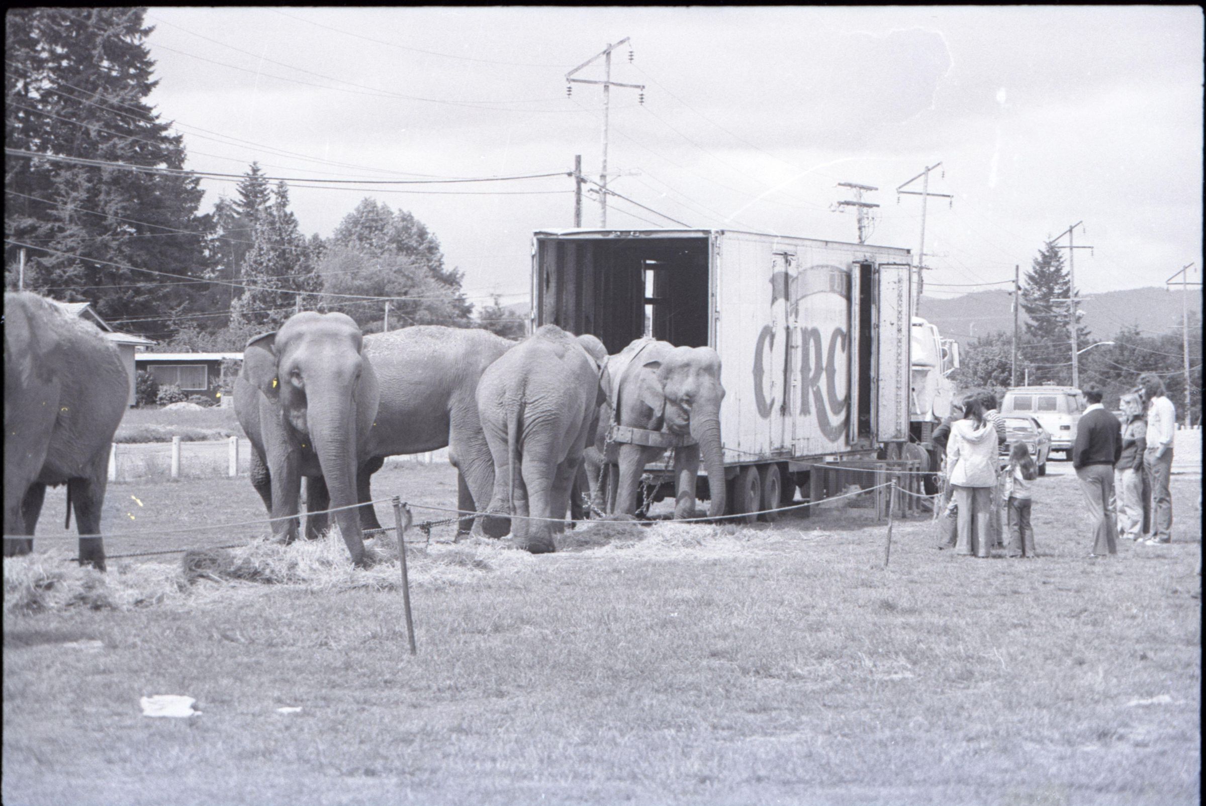 Circus, 1978. These eleven black and white film negative strips were created for the Lacey Leader newspaper. These images were created using four separate film negative strips, so some of the physical numbers on the strips are repeated. For the purposes of this description, the strips will be grouped according to the film roll from which they originally came. Each group will be assigned a lower-case letter to go along with the physical numbers on the strips (1a, 2a, 3a, 1b, 2b, 3b, etc.) to help differentiate between images.