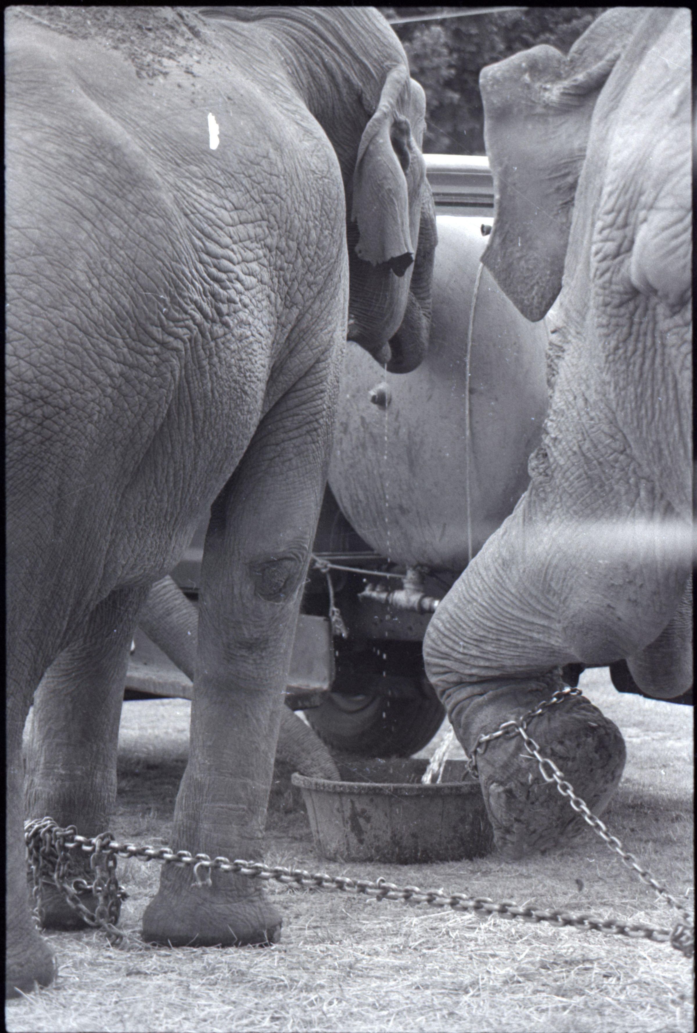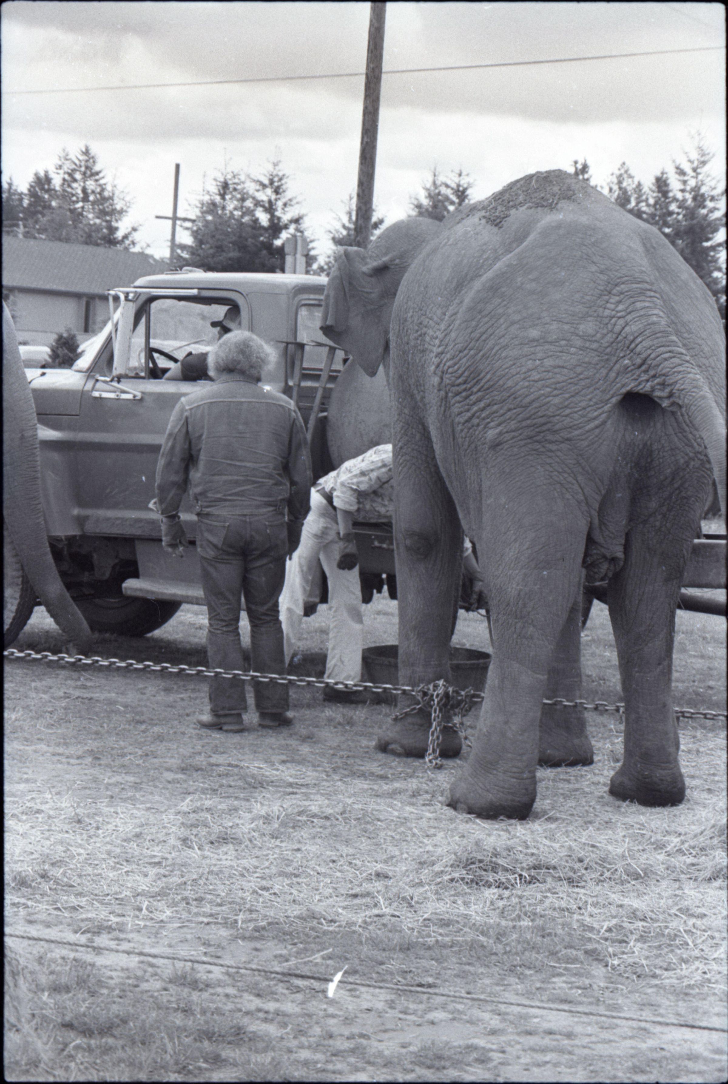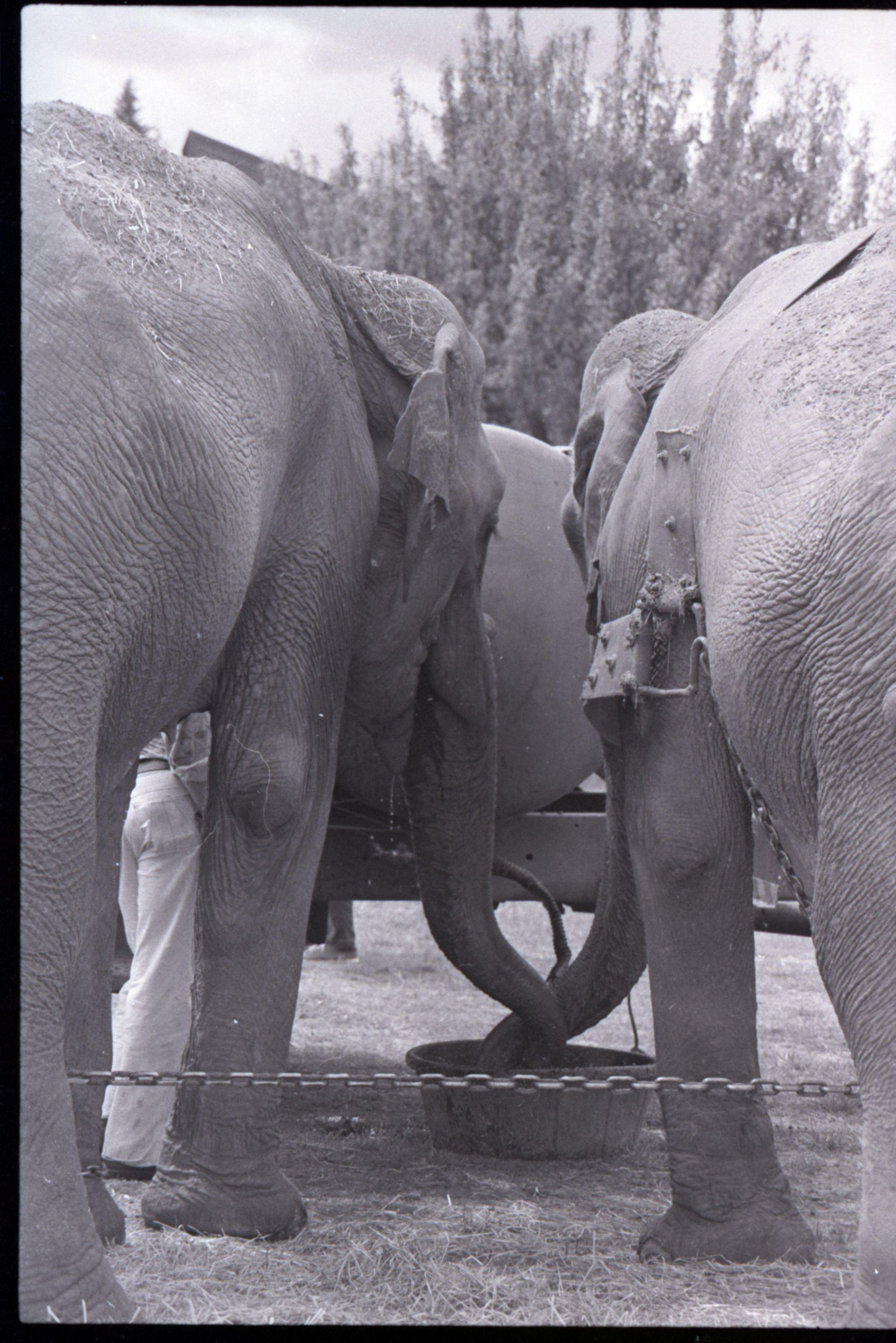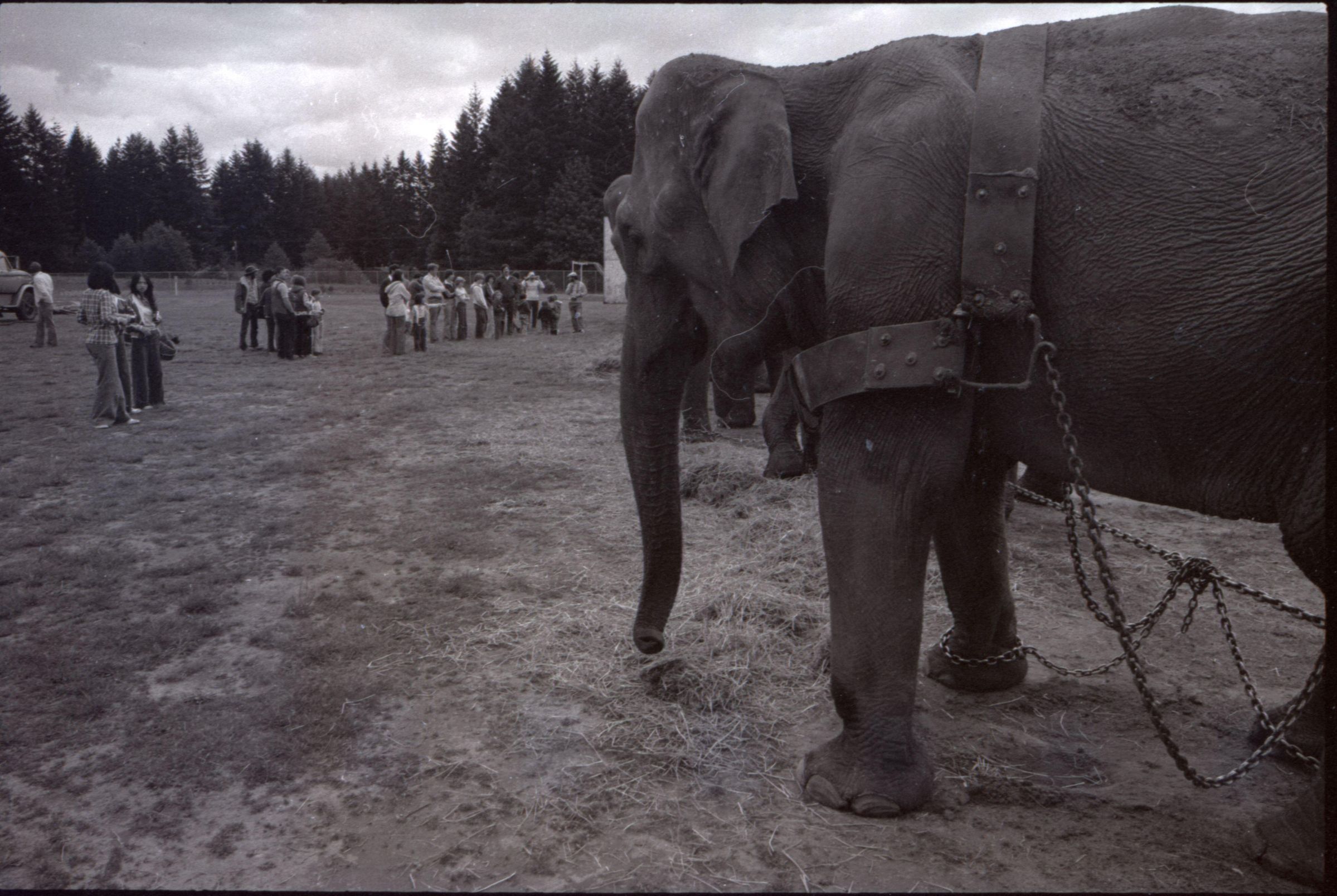 Circus, 1978. These eleven black and white film negative strips were created for the Lacey Leader newspaper. These images were created using four separate film negative strips, so some of the physical numbers on the strips are repeated. For the purposes of this description, the strips will be grouped according to the film roll from which they originally came. Each group will be assigned a lower-case letter to go along with the physical numbers on the strips (1a, 2a, 3a, 1b, 2b, 3b, etc.) to help differentiate between images.