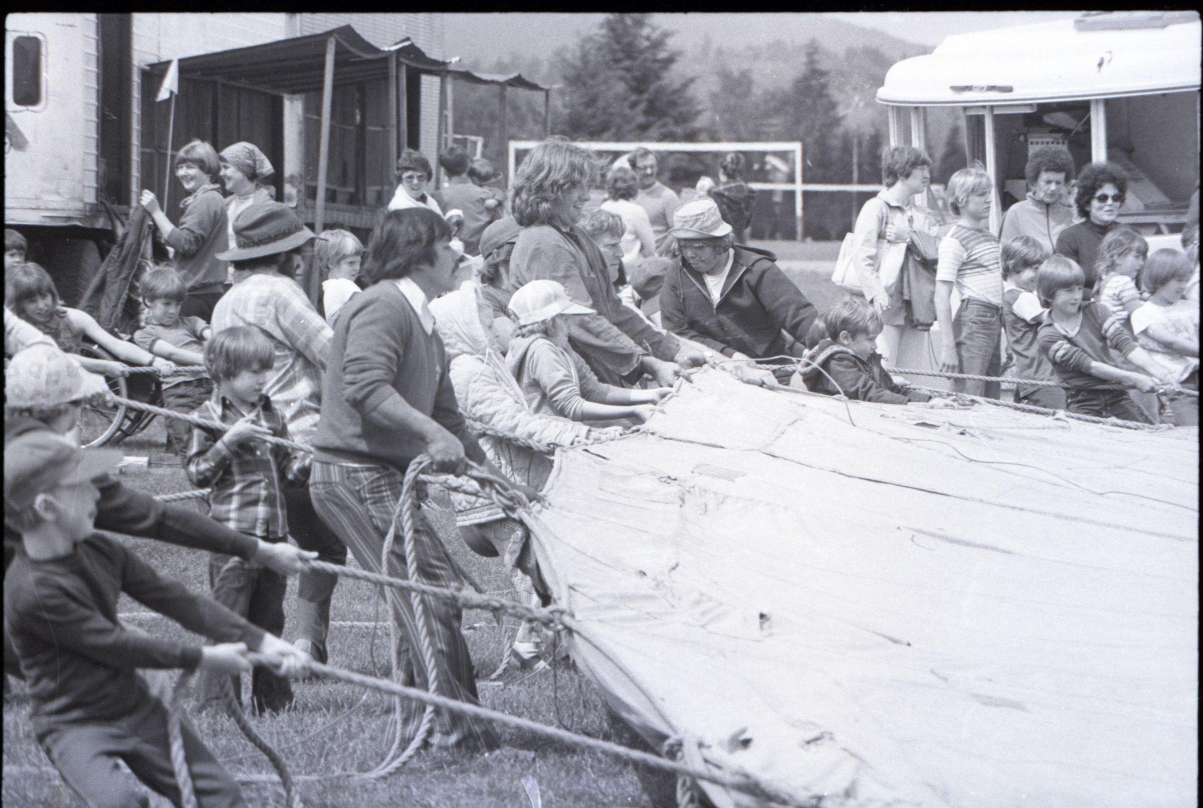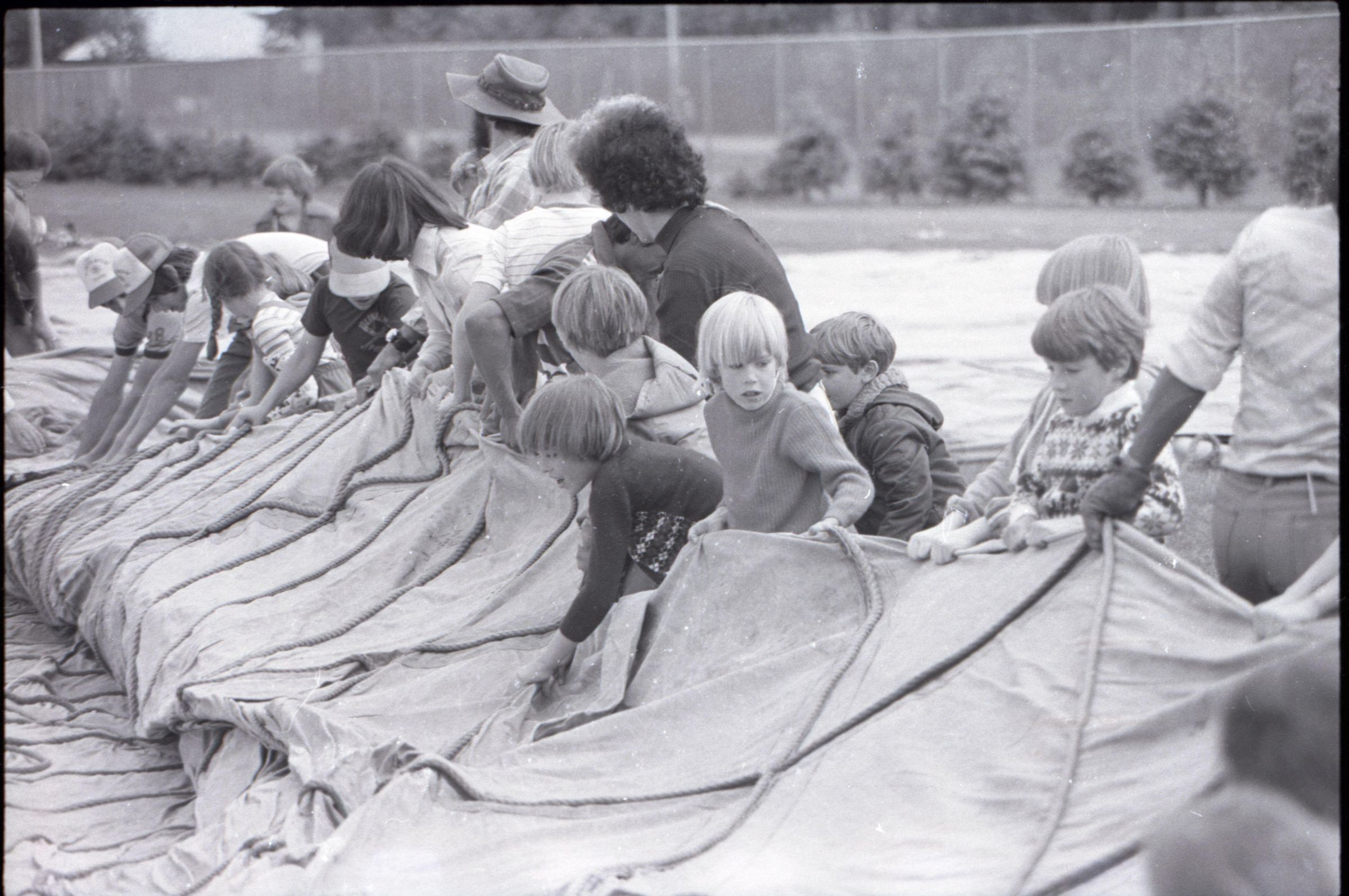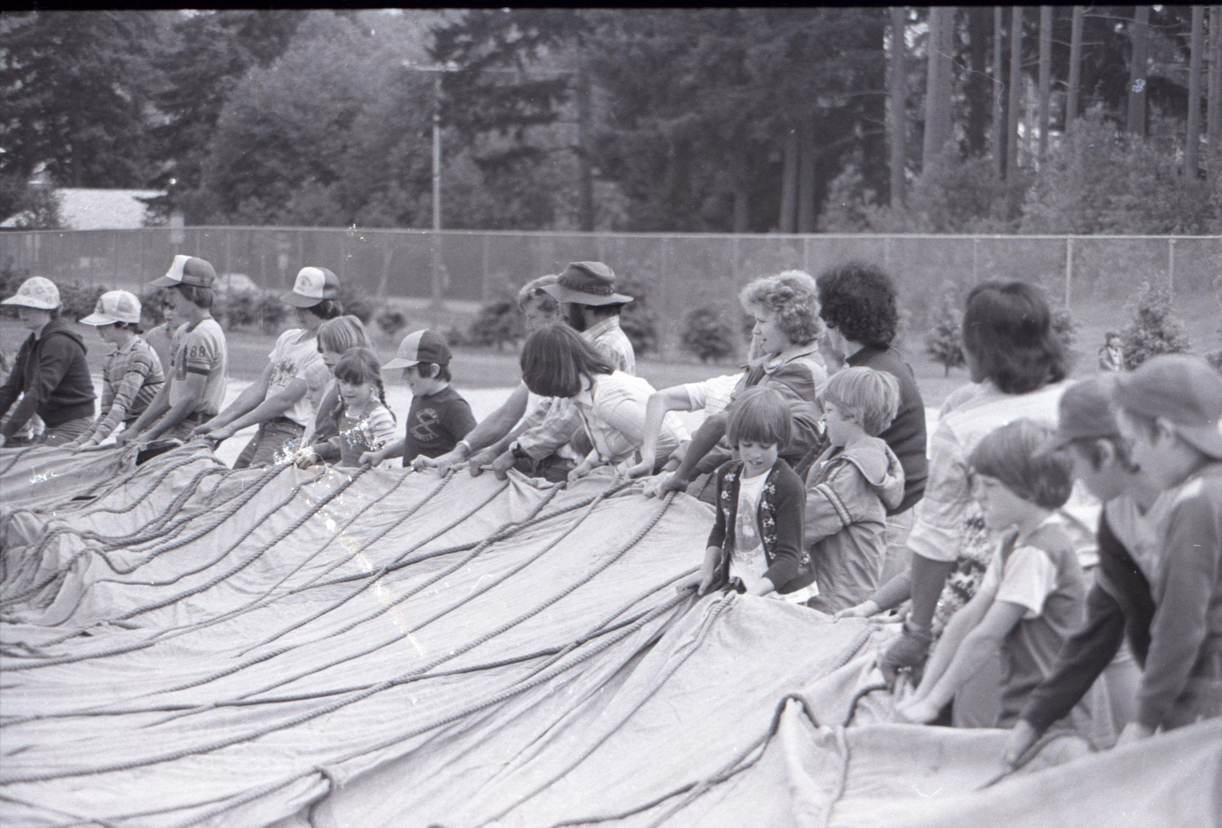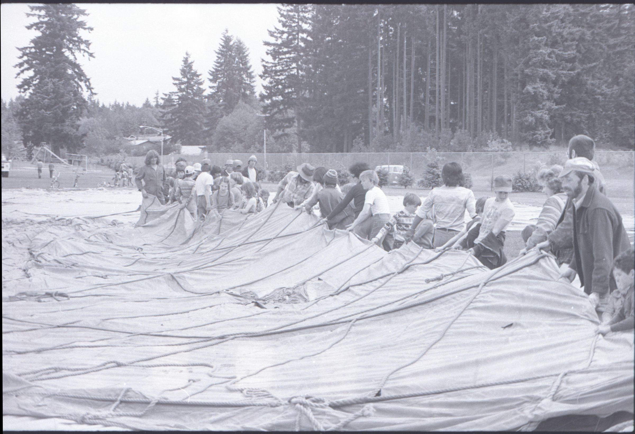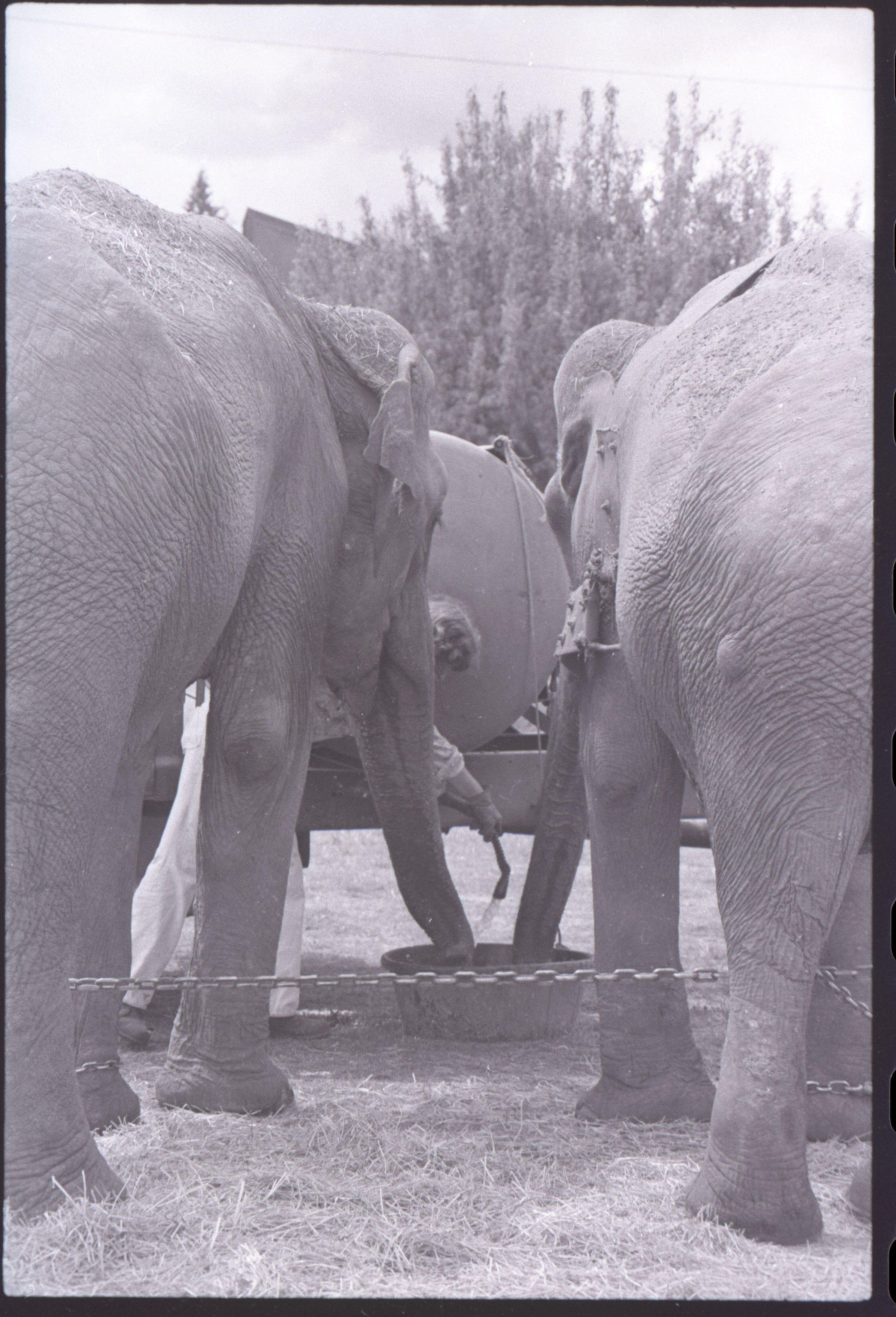Circus, 1978. These eleven black and white film negative strips were created for the Lacey Leader newspaper. These images were created using four separate film negative strips, so some of the physical numbers on the strips are repeated. For the purposes of this description, the strips will be grouped according to the film roll from which they originally came. Each group will be assigned a lower-case letter to go along with the physical numbers on the strips (1a, 2a, 3a, 1b, 2b, 3b, etc.) to help differentiate between images.