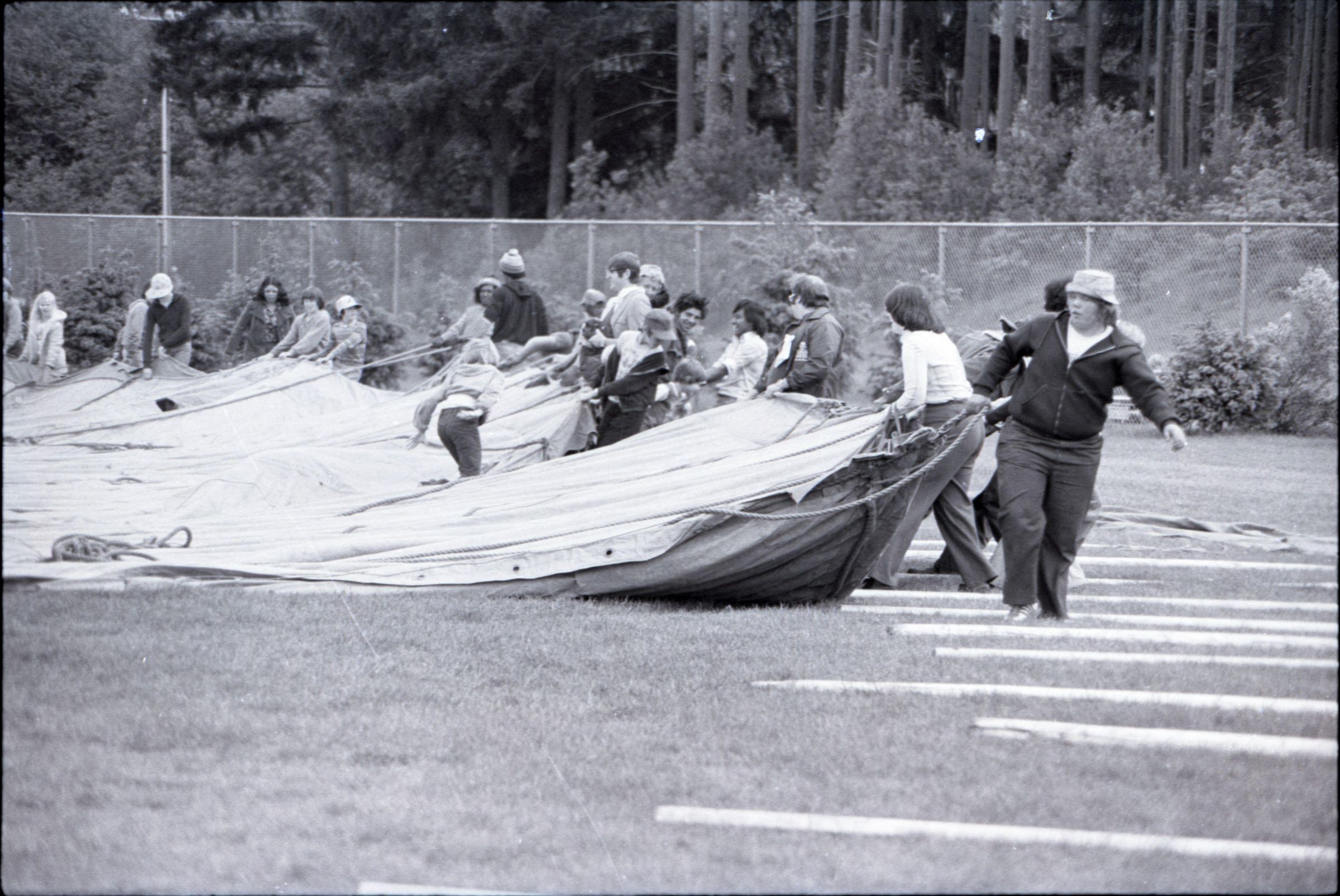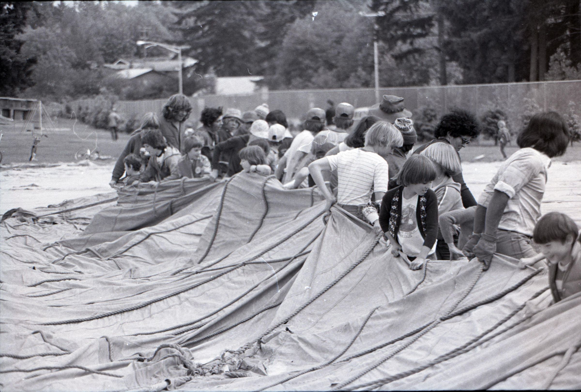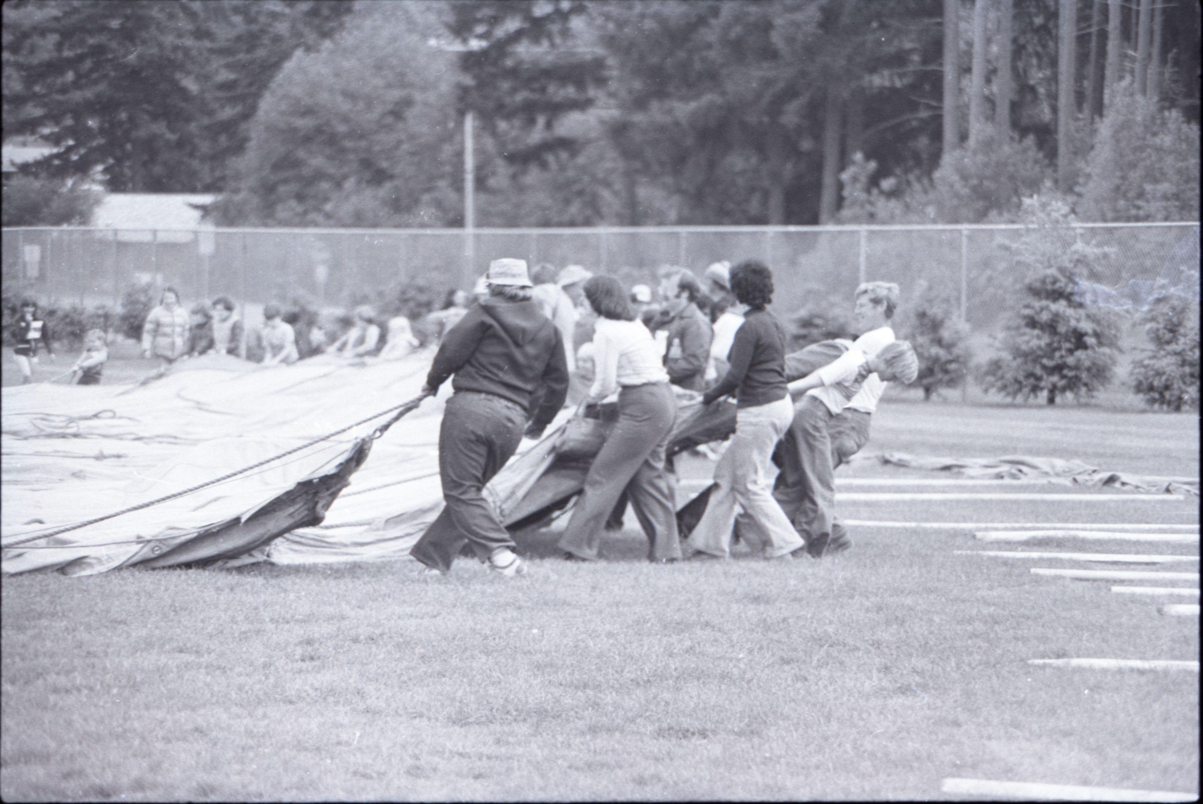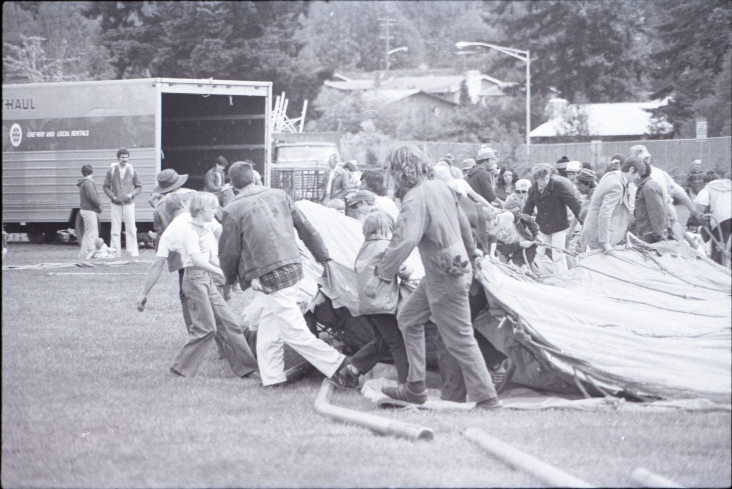 Circus, 1978. These eleven black and white film negative strips were created for the Lacey Leader newspaper. These images were created using four separate film negative strips, so some of the physical numbers on the strips are repeated. For the purposes of this description, the strips will be grouped according to the film roll from which they originally came. Each group will be assigned a lower-case letter to go along with the physical numbers on the strips (1a, 2a, 3a, 1b, 2b, 3b, etc.) to help differentiate between images.