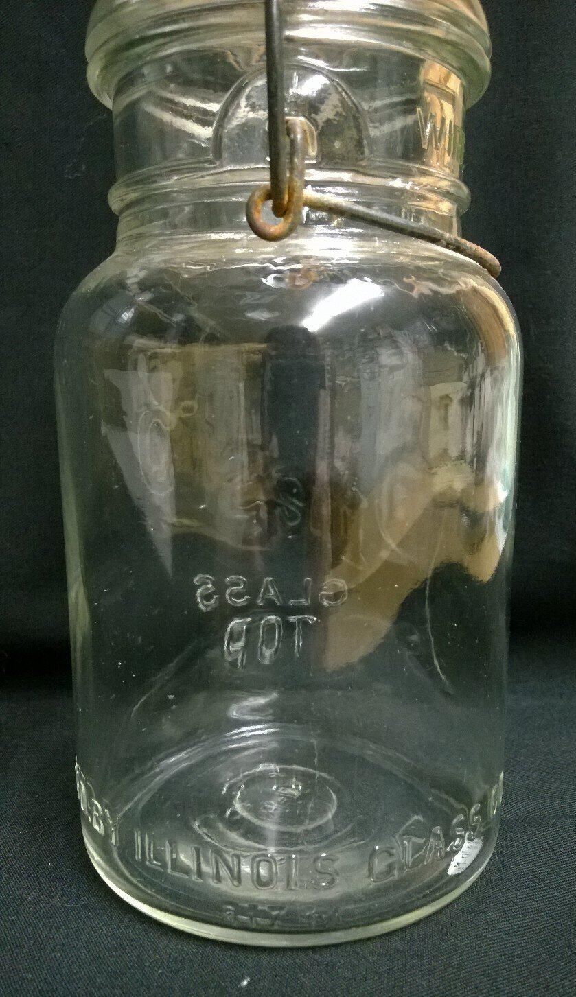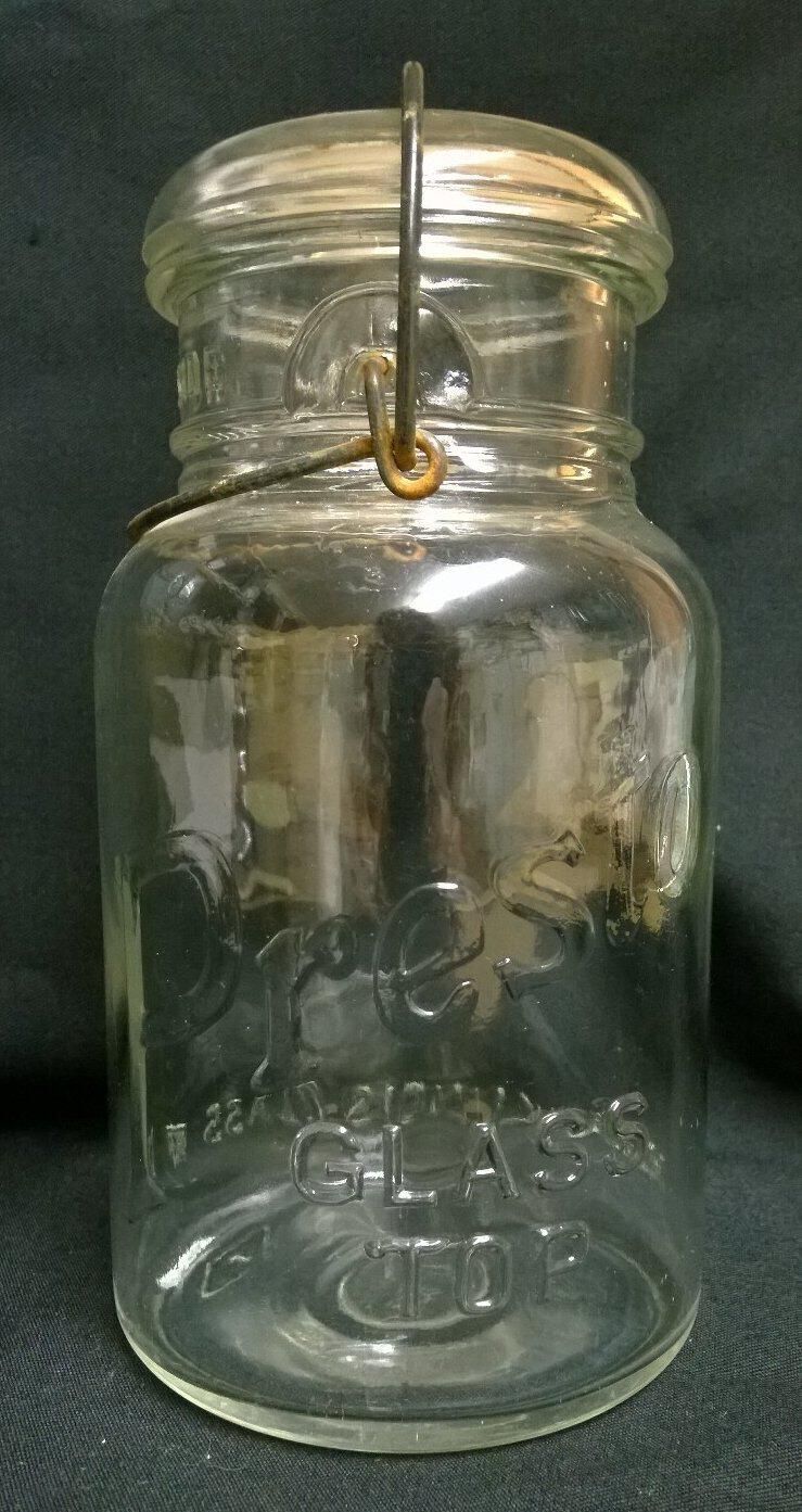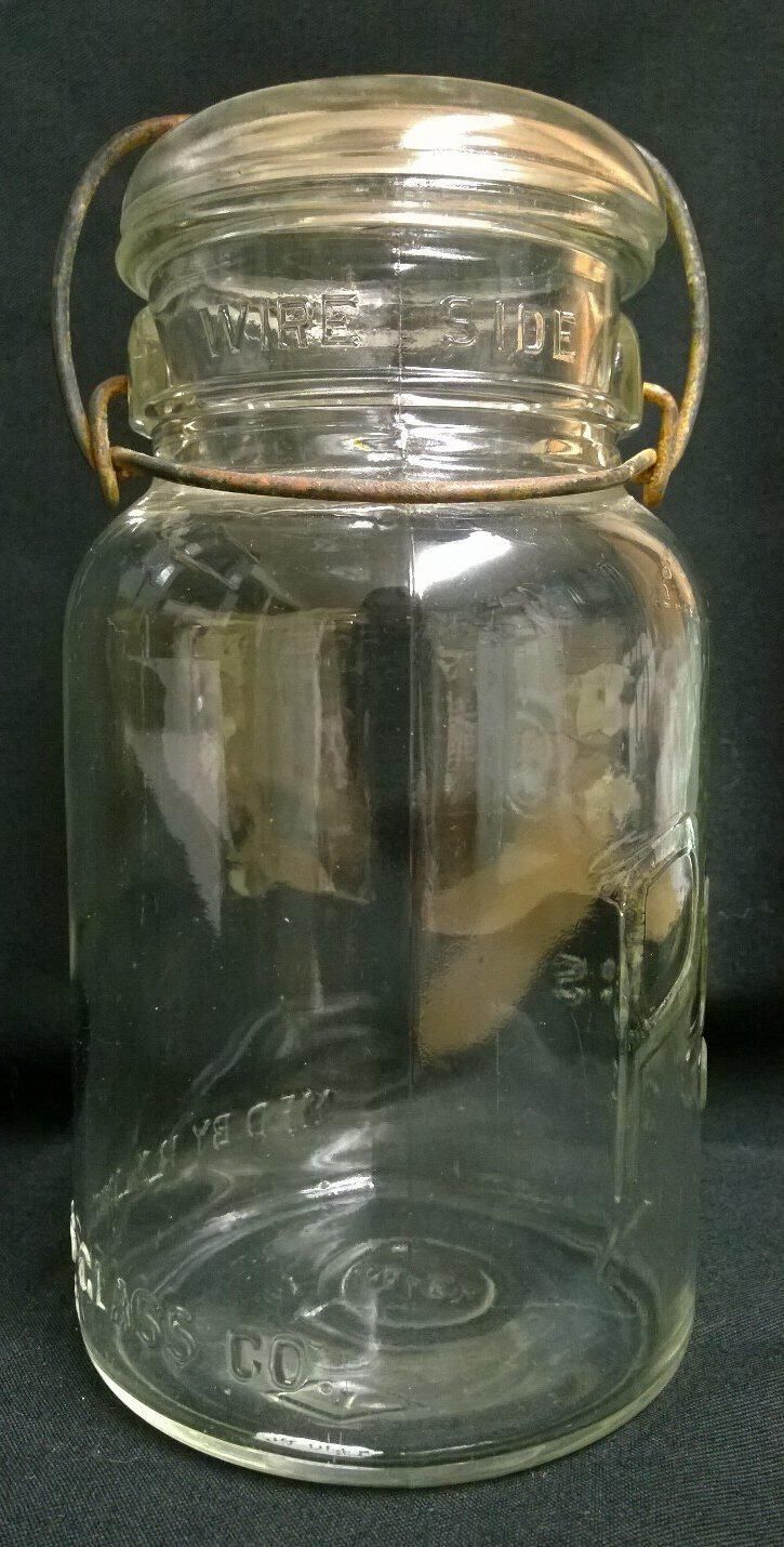 Maker's Mark: Embossed on the side is "wire side" "Presto glass top" and "mfd. by Illinois glass Co. 217 4x". Embossed on the bottom is "I" inside a diamond, "M-EK" inside a raised circle, and "3".