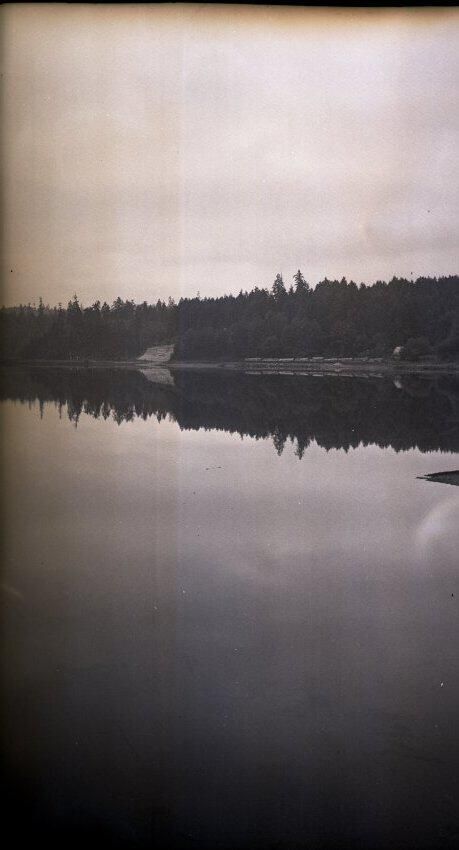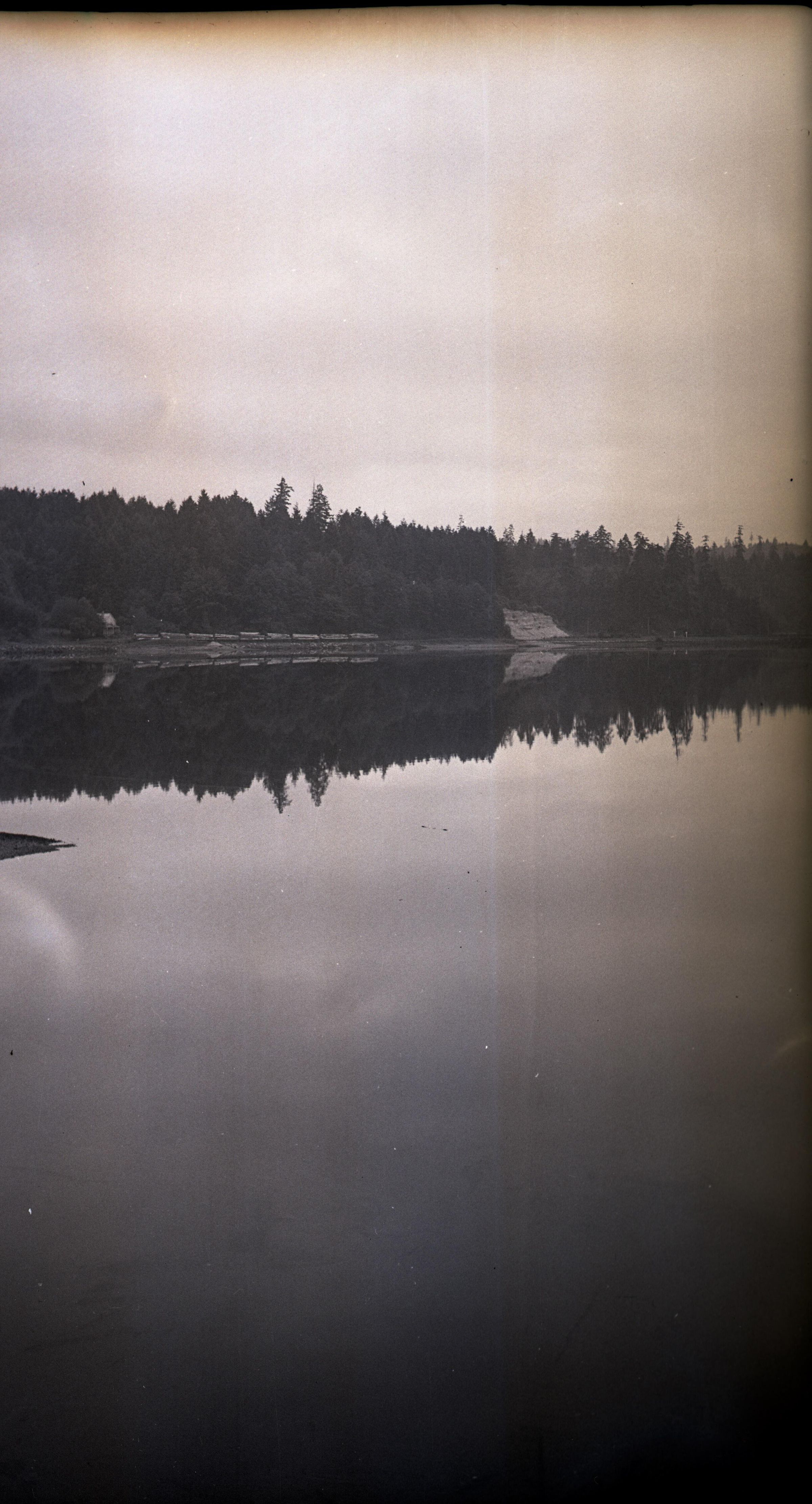 The negative is inserted along with a print of the image into a cream colored envelope that has typed "Olympia 1936 ? Reflection of west side of bay". Stamped is "753" and "indexed".Made/Created