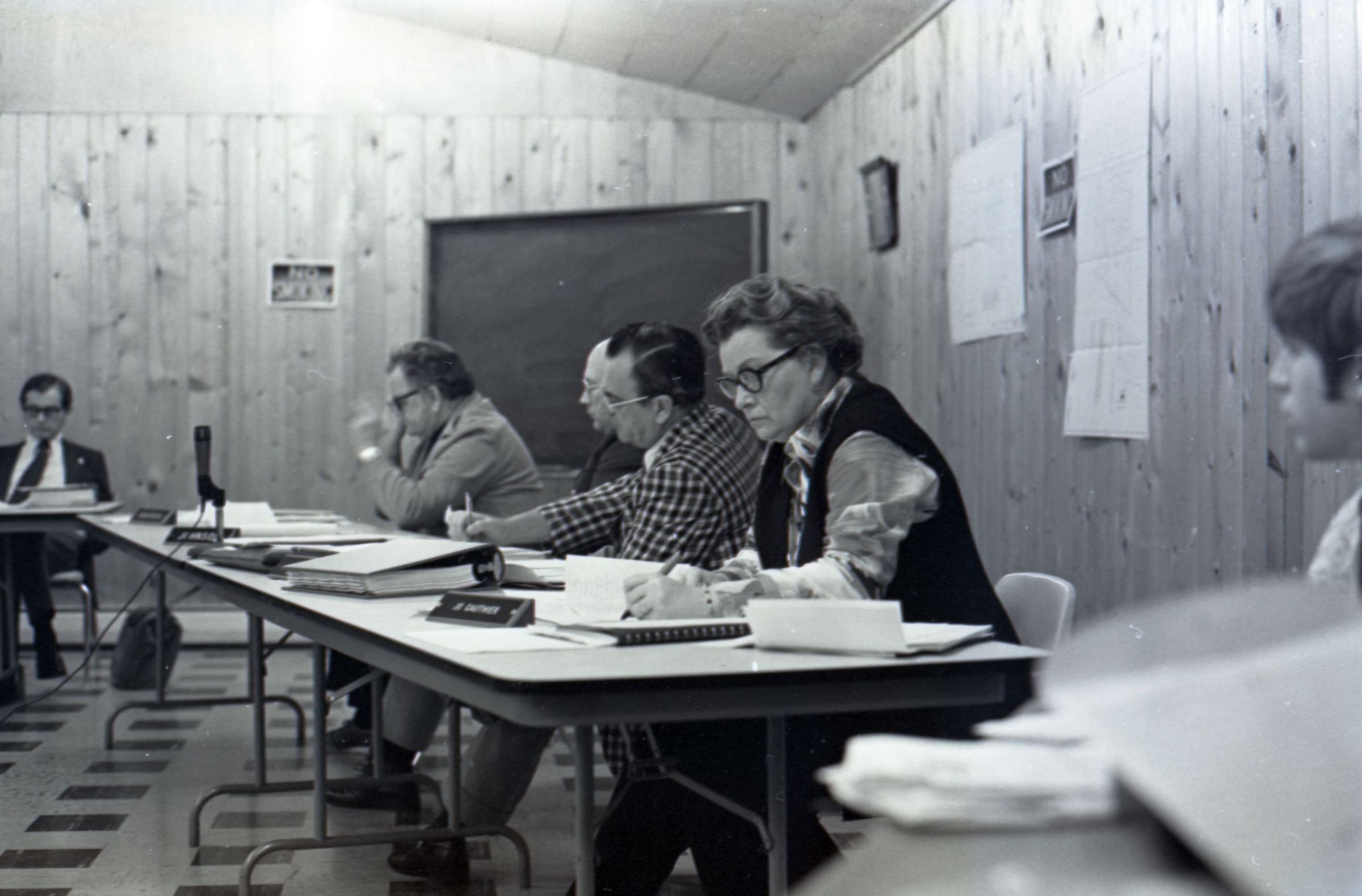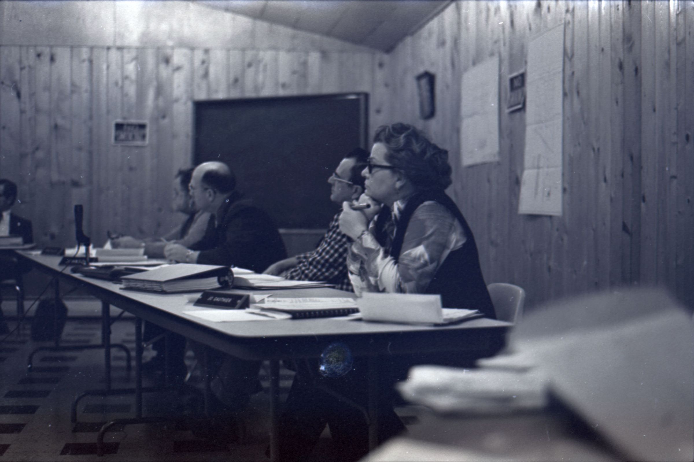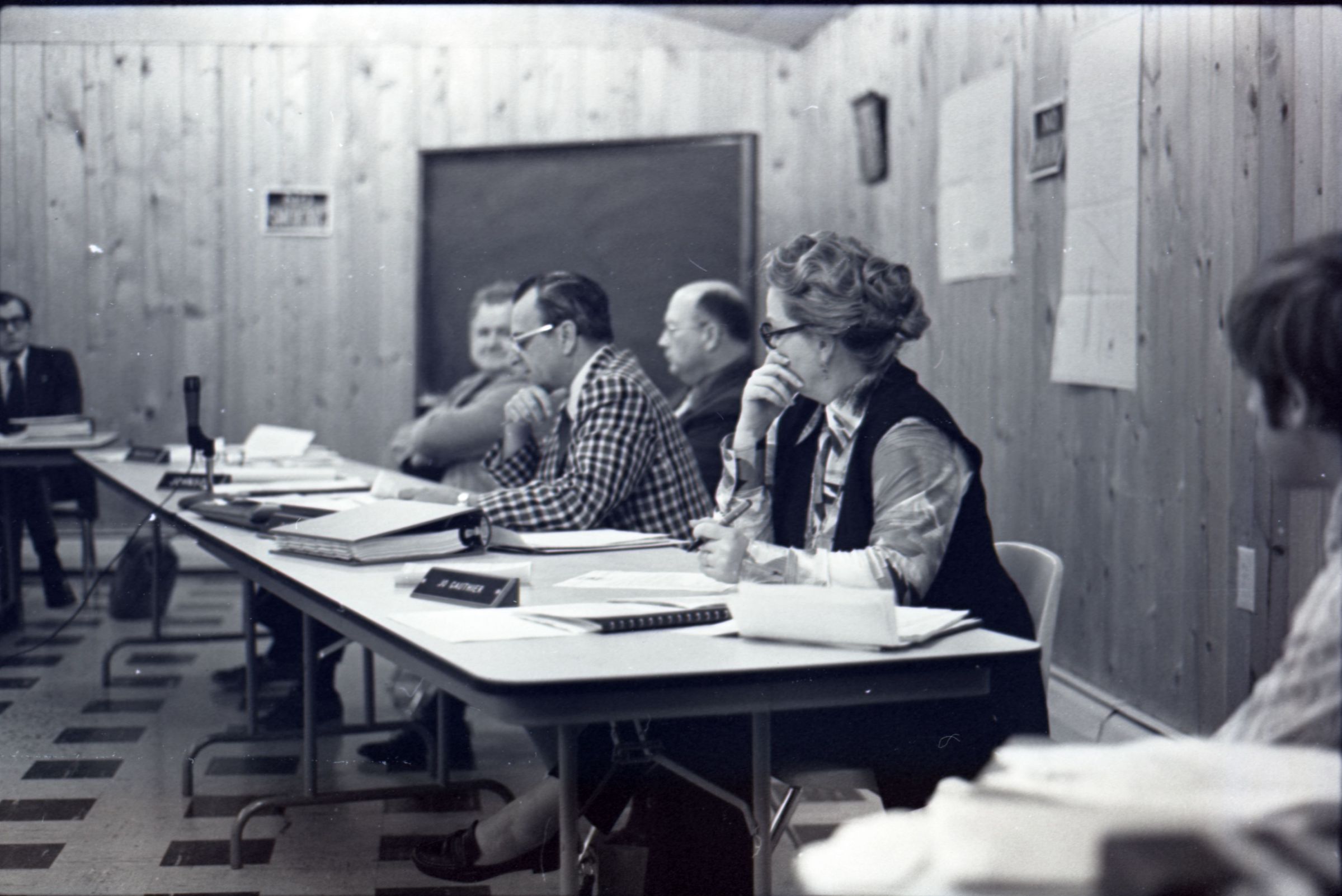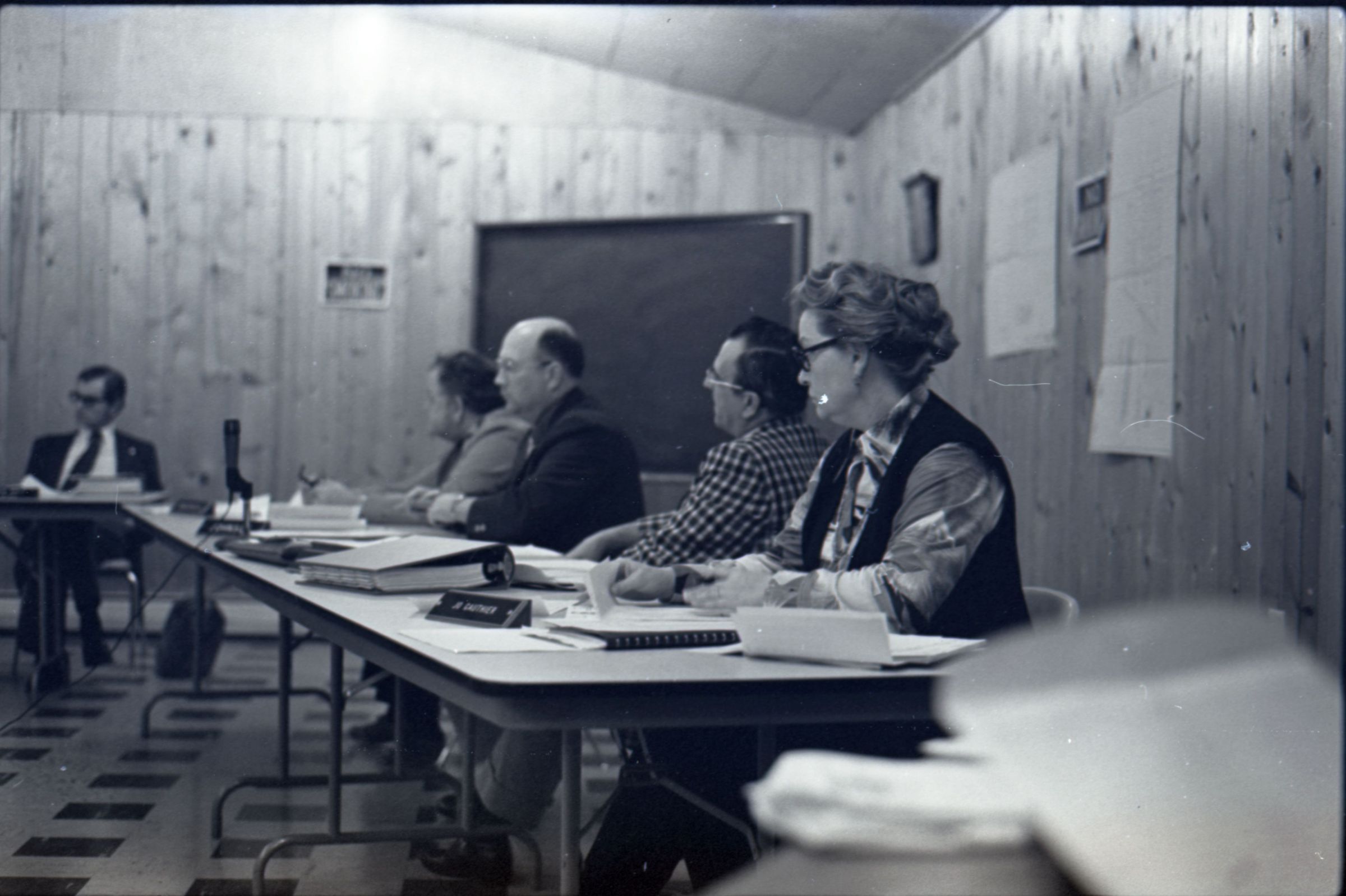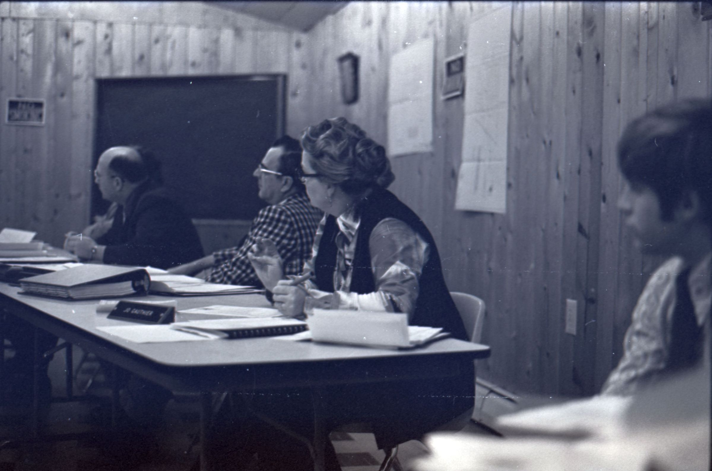 The images of the city council meeting were created for inclusion with an article concerning new Lacey City Council members. ("HARD AT WORK," Lacey Leader, 1/28/1976) The images of Beverly Hilts and Al Striggow (group "c") were created for inclusion with an article concerning a fundraiser for North Thurston High School. ("FUND RAISER," Lacey Leader, 1/21/1976)Made/Created