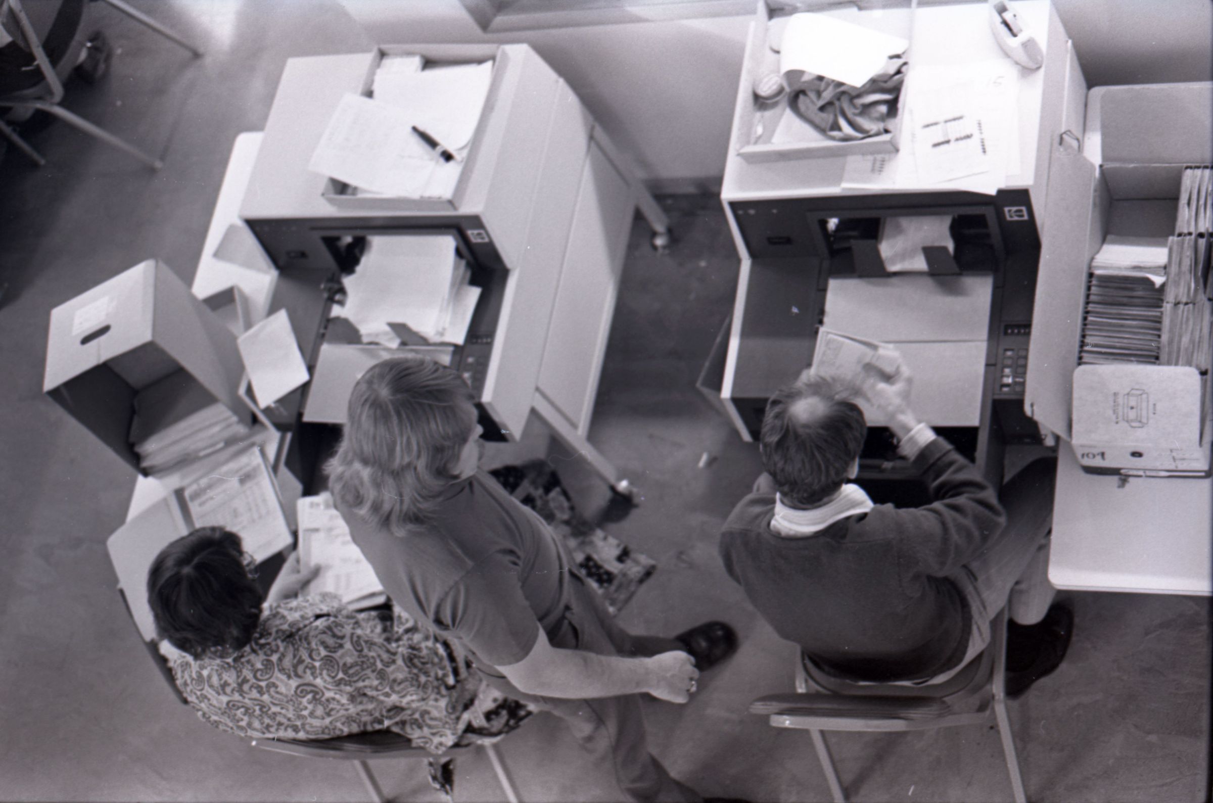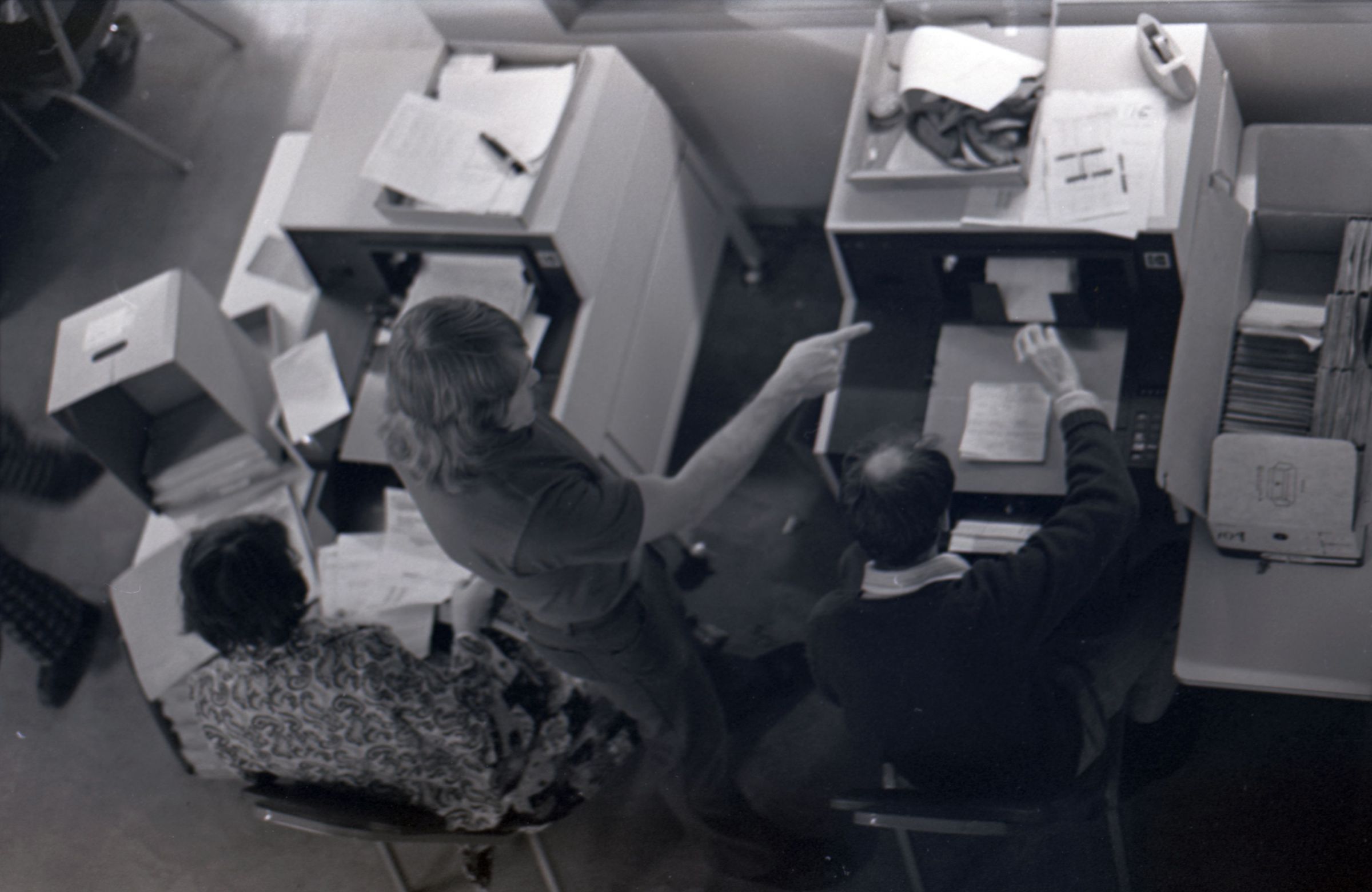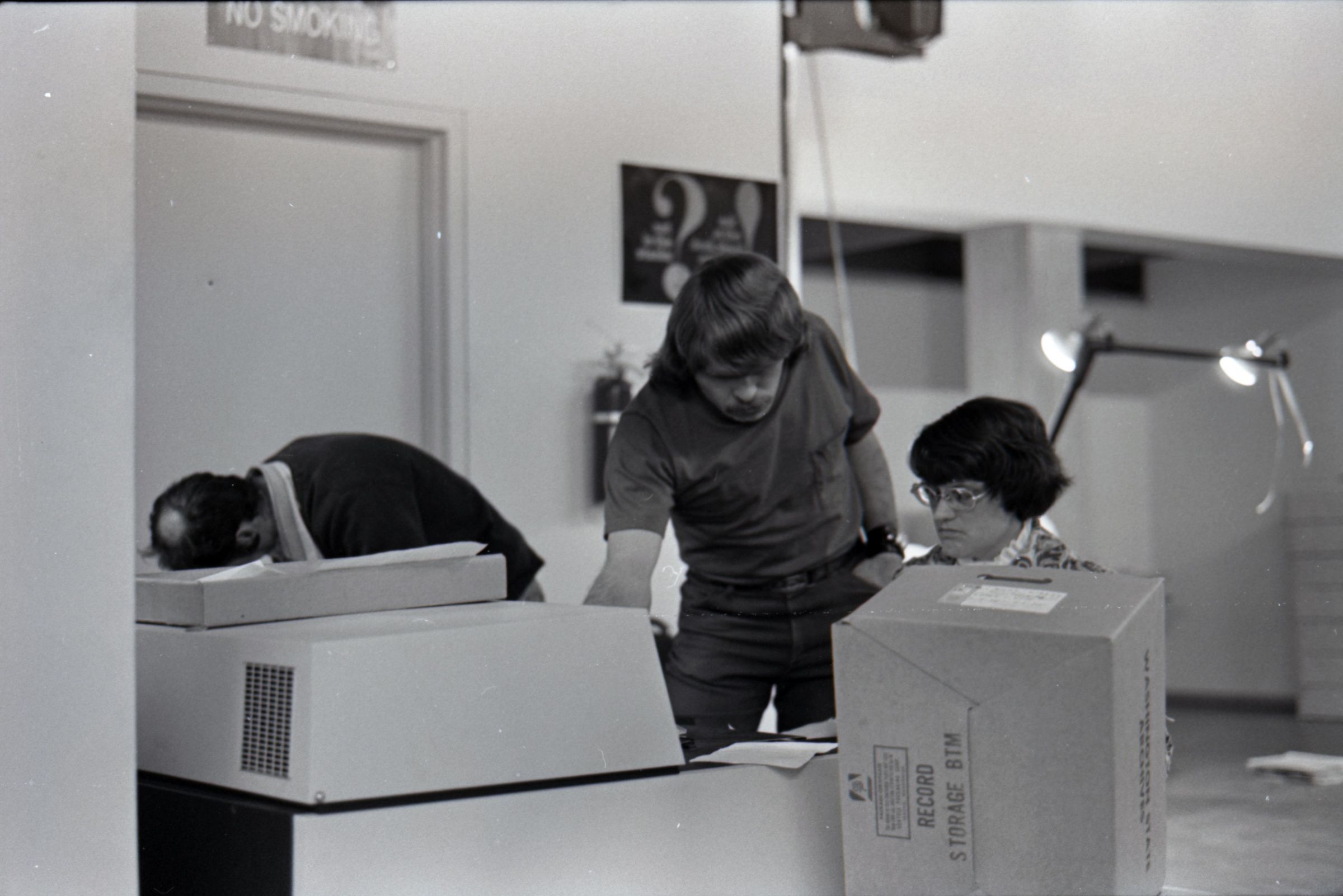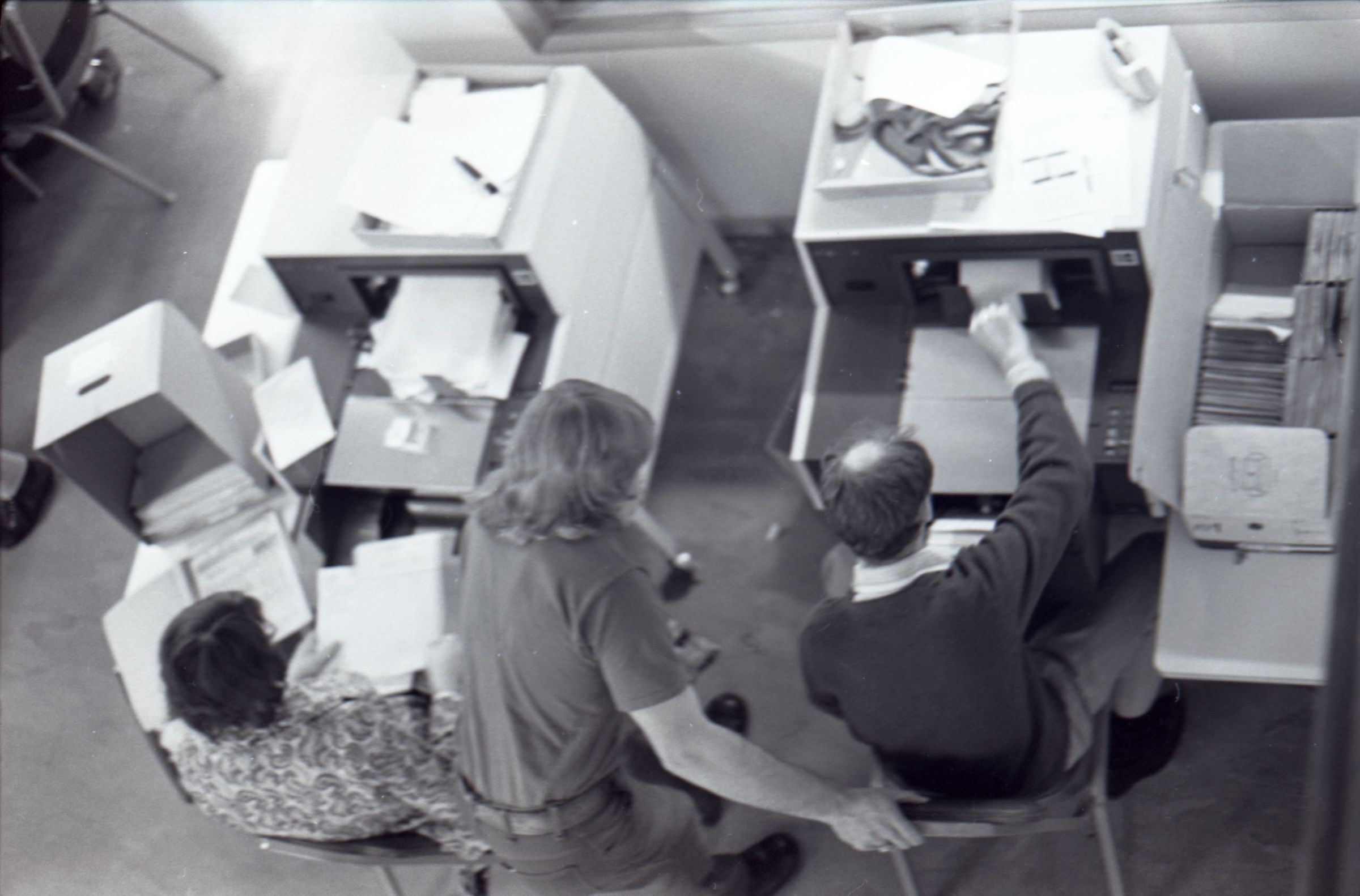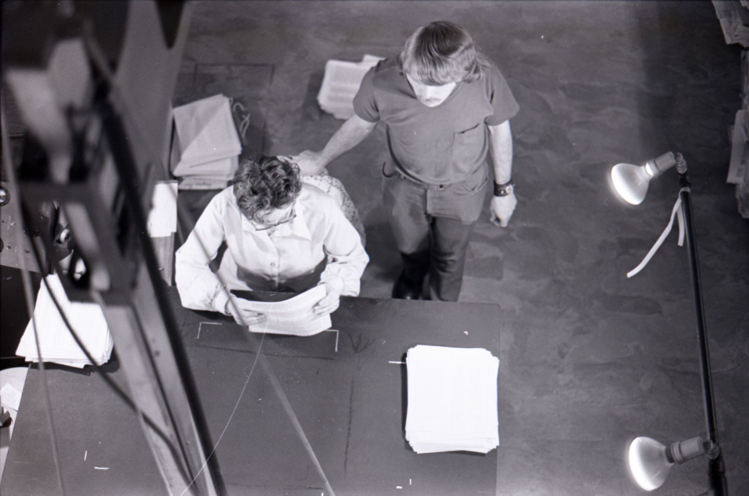 The images of the city council meeting were created for inclusion with an article concerning new Lacey City Council members. ("HARD AT WORK," Lacey Leader, 1/28/1976) The images of Beverly Hilts and Al Striggow (group "c") were created for inclusion with an article concerning a fundraiser for North Thurston High School. ("FUND RAISER," Lacey Leader, 1/21/1976)Made/Created