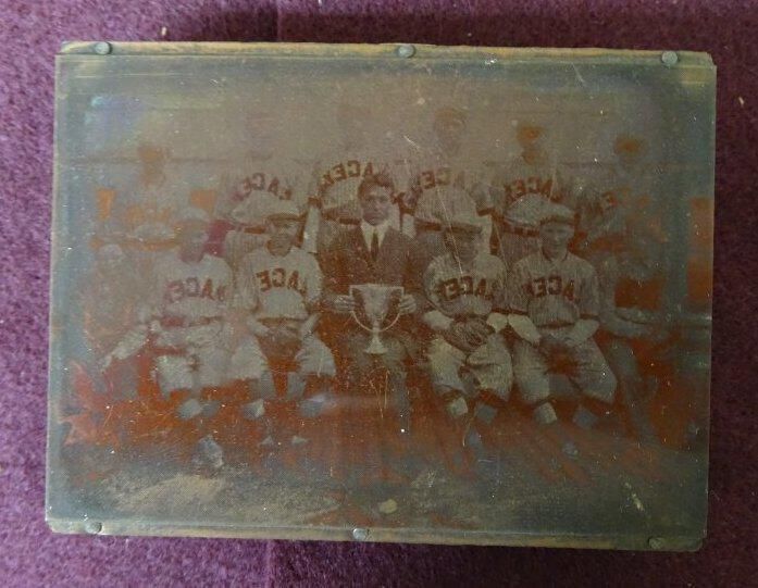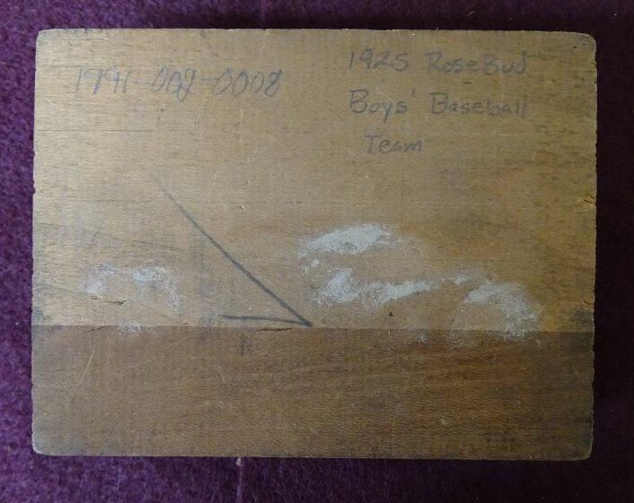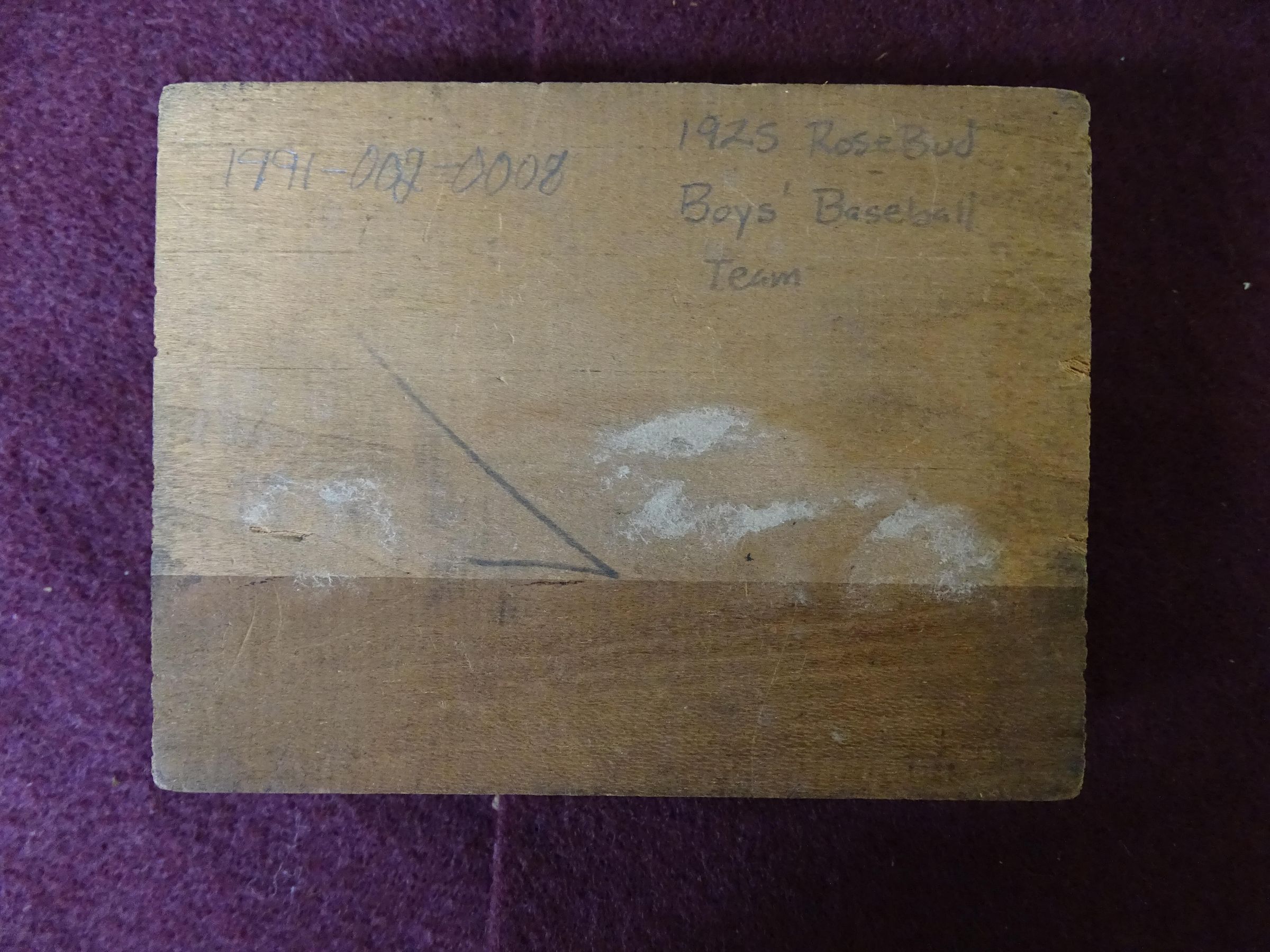 This plate was used in printing the Lacey School annual "Rosebud" and is a picture of the 1925 boy's baseball team. First row (L to R) Chester Southwick, Henry Wurn, Gwin Hicks Jr., Mr. Willard G. Miller, Oscar Thelander, Bret Huntamer, and Fred Daley. Second row, Bjarne Nelson, Bertle Thelander, William Naismith, Albert Hangge, Dorus Quasebarth, and Harold Skinner.Dimensions