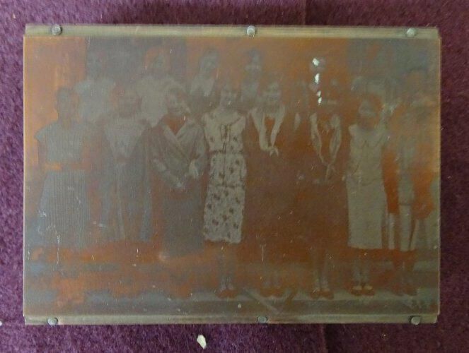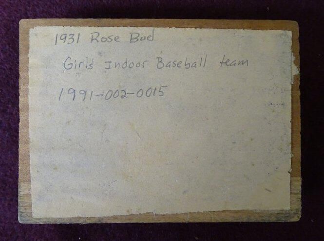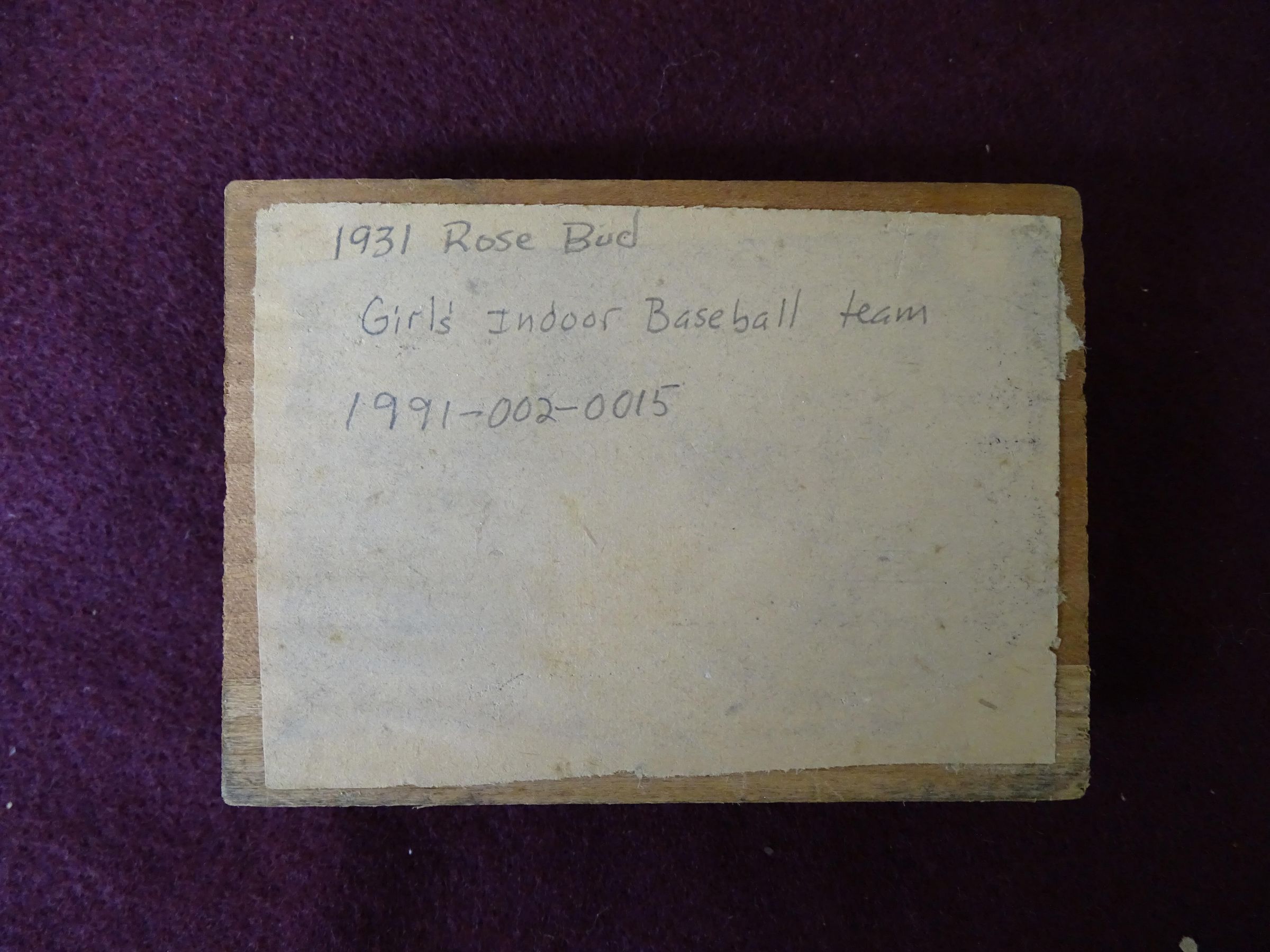 This plate was used in printing the Lacey School annual "Rosebud" and is a picture of the 1931 girl's indoor baseball team. First row (L to R) Nonie Russell, Julia Shrewbury, Mary Iyall, Kathryn Dodge, Margaret Dent, Clarice Watson, Eleanor Suslik, and Lucy Daly. Second row Miss Dorothy Jacobson, Geneva Scott, Annie Kramer, Florence Ulery, Edna Wooster, and Geraldine Dimmick.Dimensions