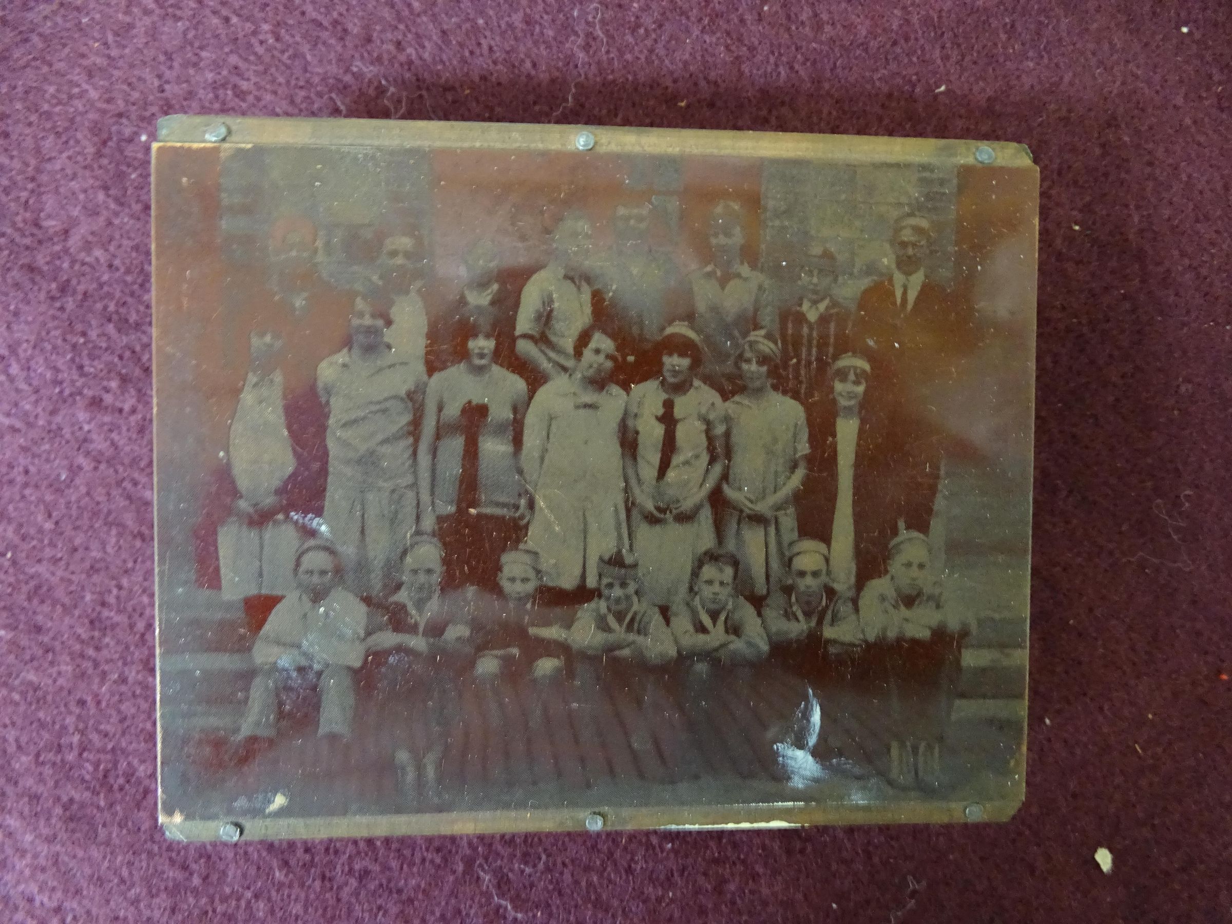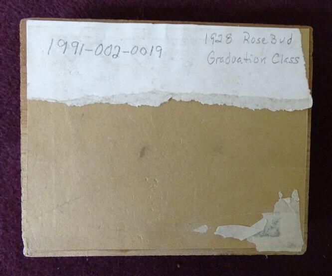 The plate was used in printing the Lacey school annual "Rosebud," and is a picture of the 1928 graduating class. First row (L to R) John Dannell, Frank Daly, Harold Yates, Urban Hicks, Jack Watson, Donald Miner, and Ervin Jackson. Second row Ruth Heusman, Elaine Stewart, Elsie Huntamer, Betty Ann Dent, Helen Barnard, Mabel Rackham, and Ruby Turnow. Third row Mr. Willard G. Miller, Charles Williams, Earl Weatherbie, Herman Hagge, Archie Watson, Billy Dent, John Waters, and Bob Maloney.Dimensions