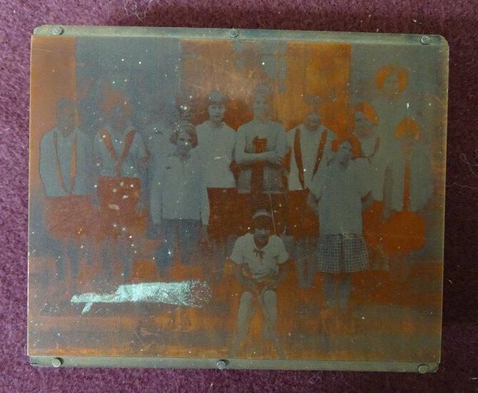 The plate was used in printing the Lacey school annual "Rosebud," and is a picture of the 1928 girls baseball team. First row (L to R) Marguerite Warren, Elsie Huntamer, and Elaine Strewart. Second row Miss Dorothy Jacobson, Ruth Heusman, Betty Ann Dent, Helen Barnard, Mabelle Rackman, Hidur Larson, Mildred Goforth, Cleo Gillis, Leona Peterson, and Miss Evelyn Johnson.Dimensions