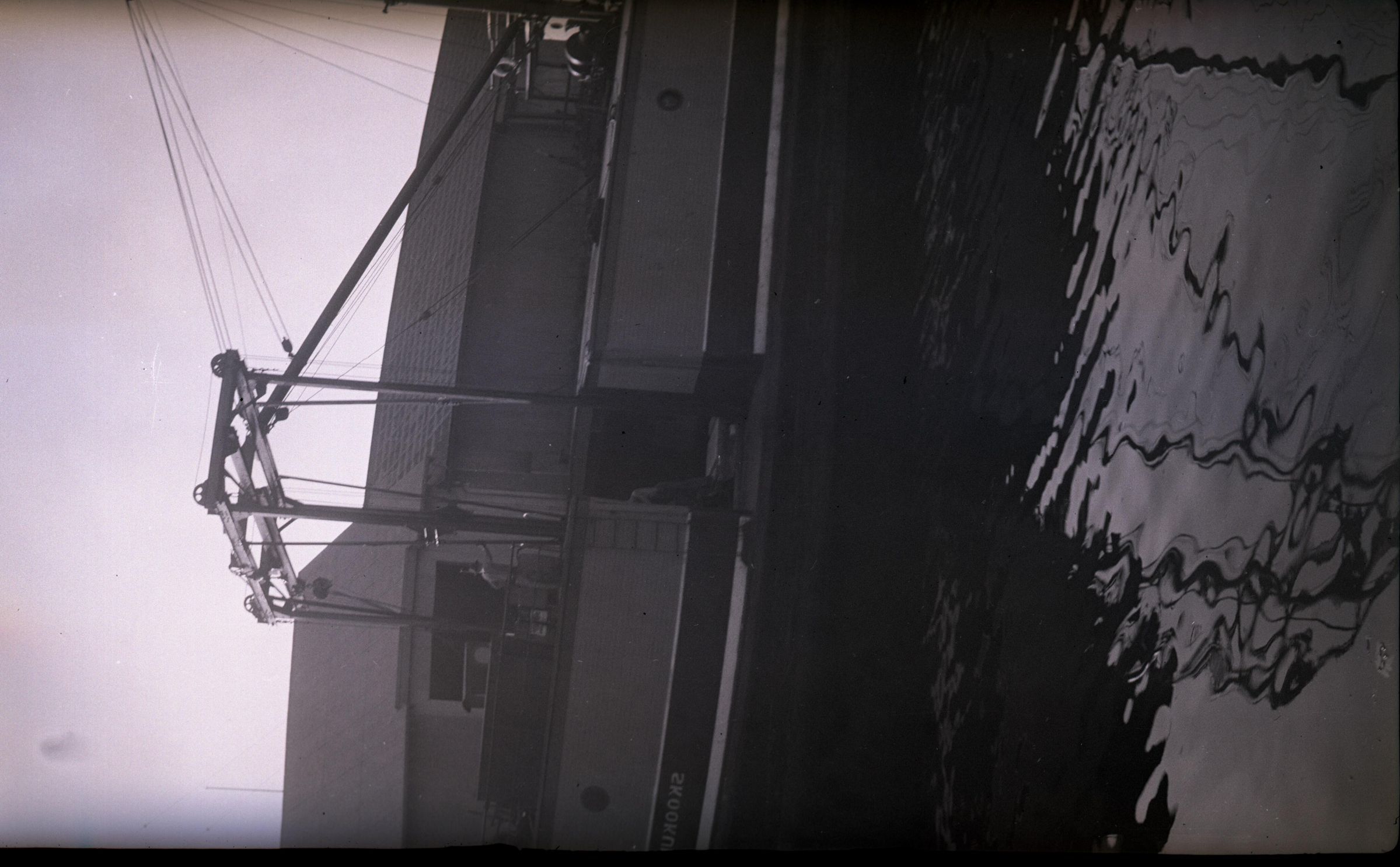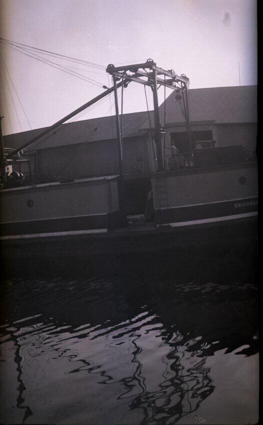 The negative is inserted, along with a print of the image, into a cream colored envelope that has typed "Olympia 8/7/39 'Skookum Chief' at Percival's Dock Elevator raised". Stamped is "1131" and "indexed".Made/Created