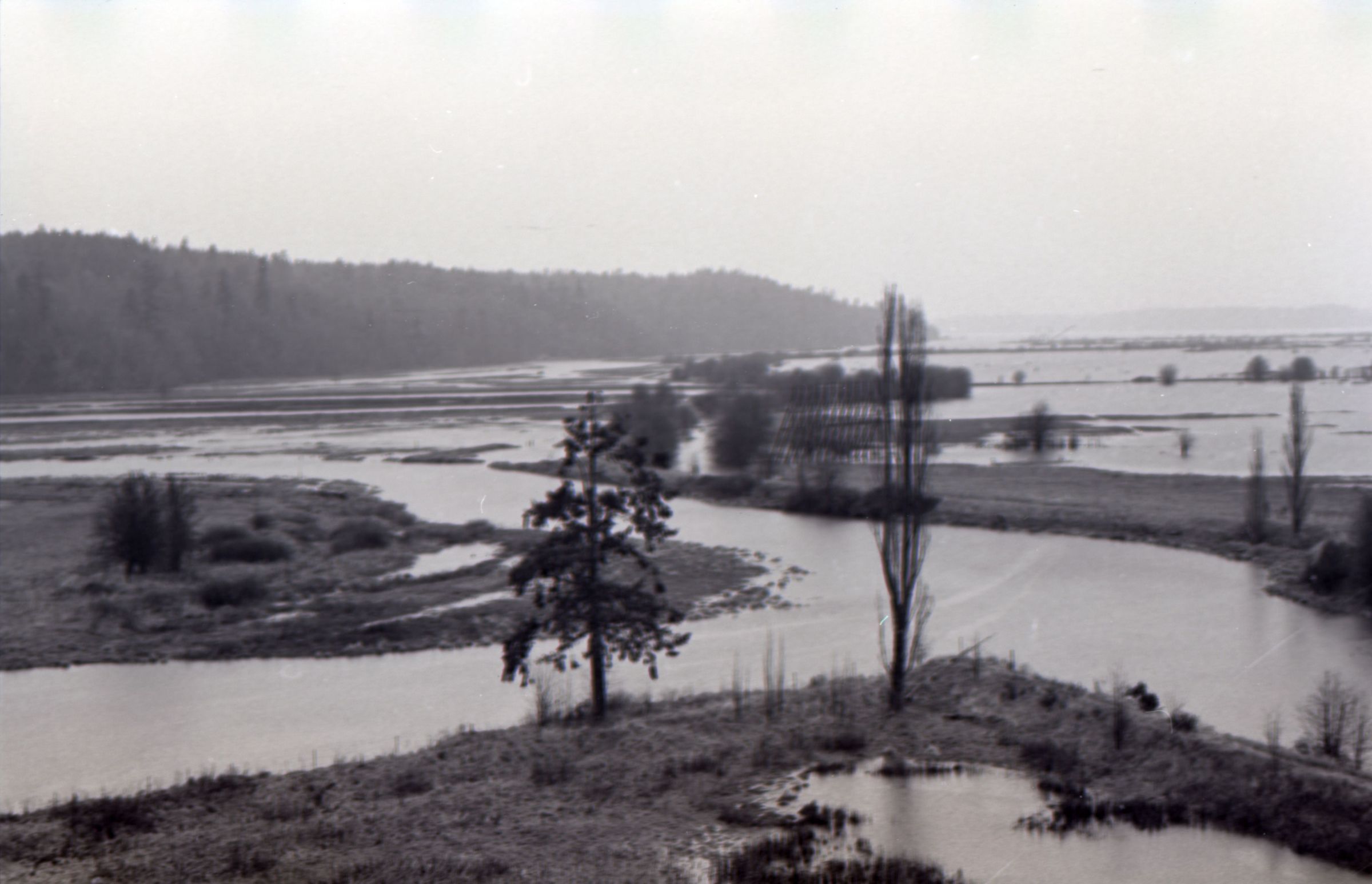 The images in group "g" show a large wetland area, which may be the Nisqually River delta.