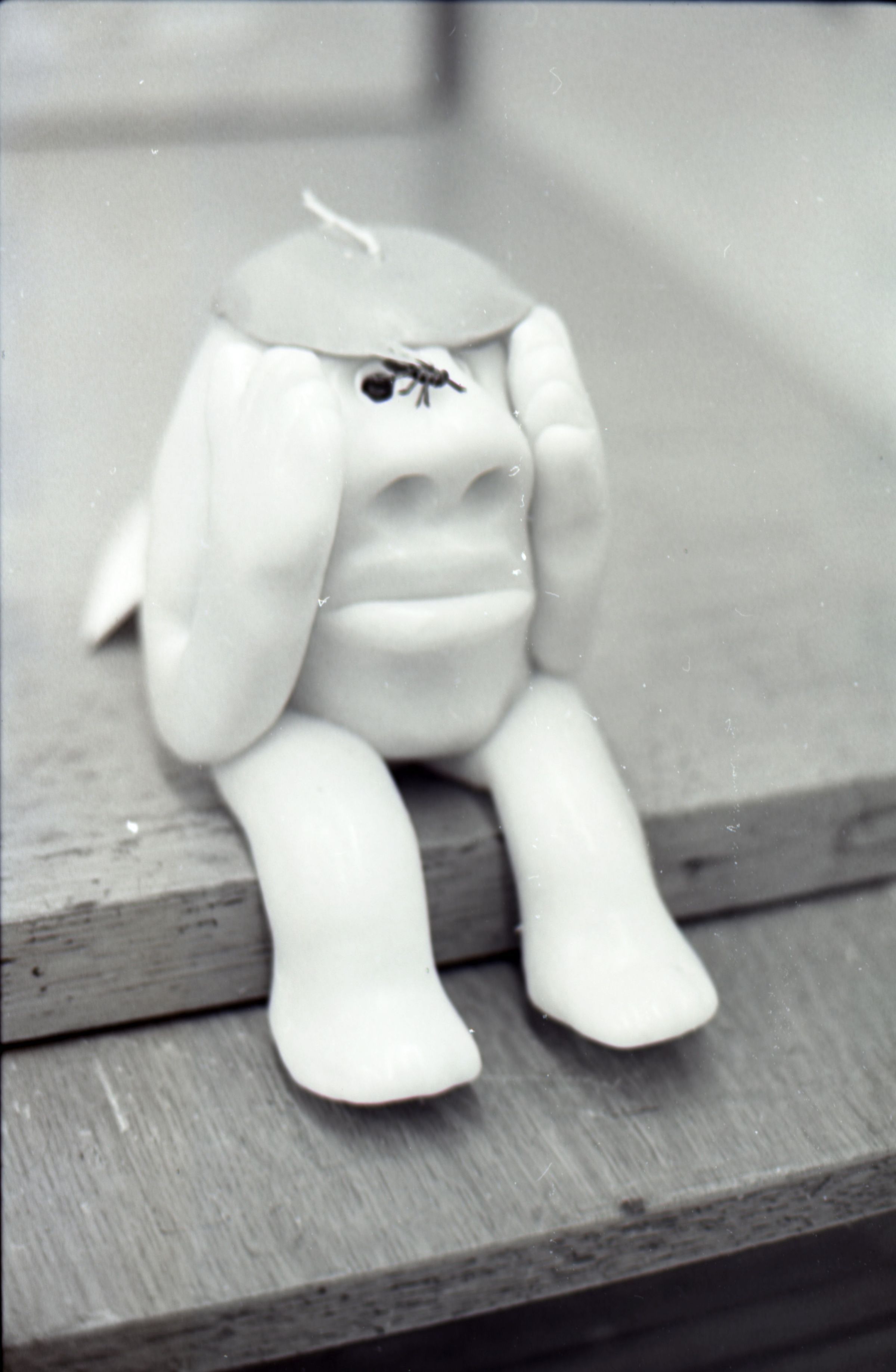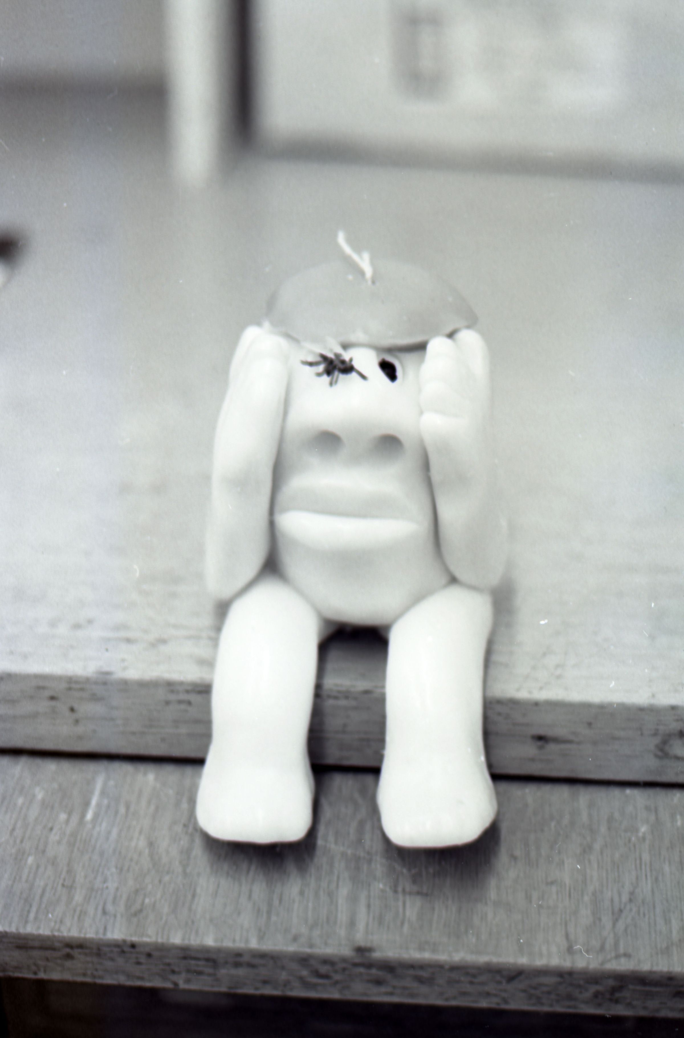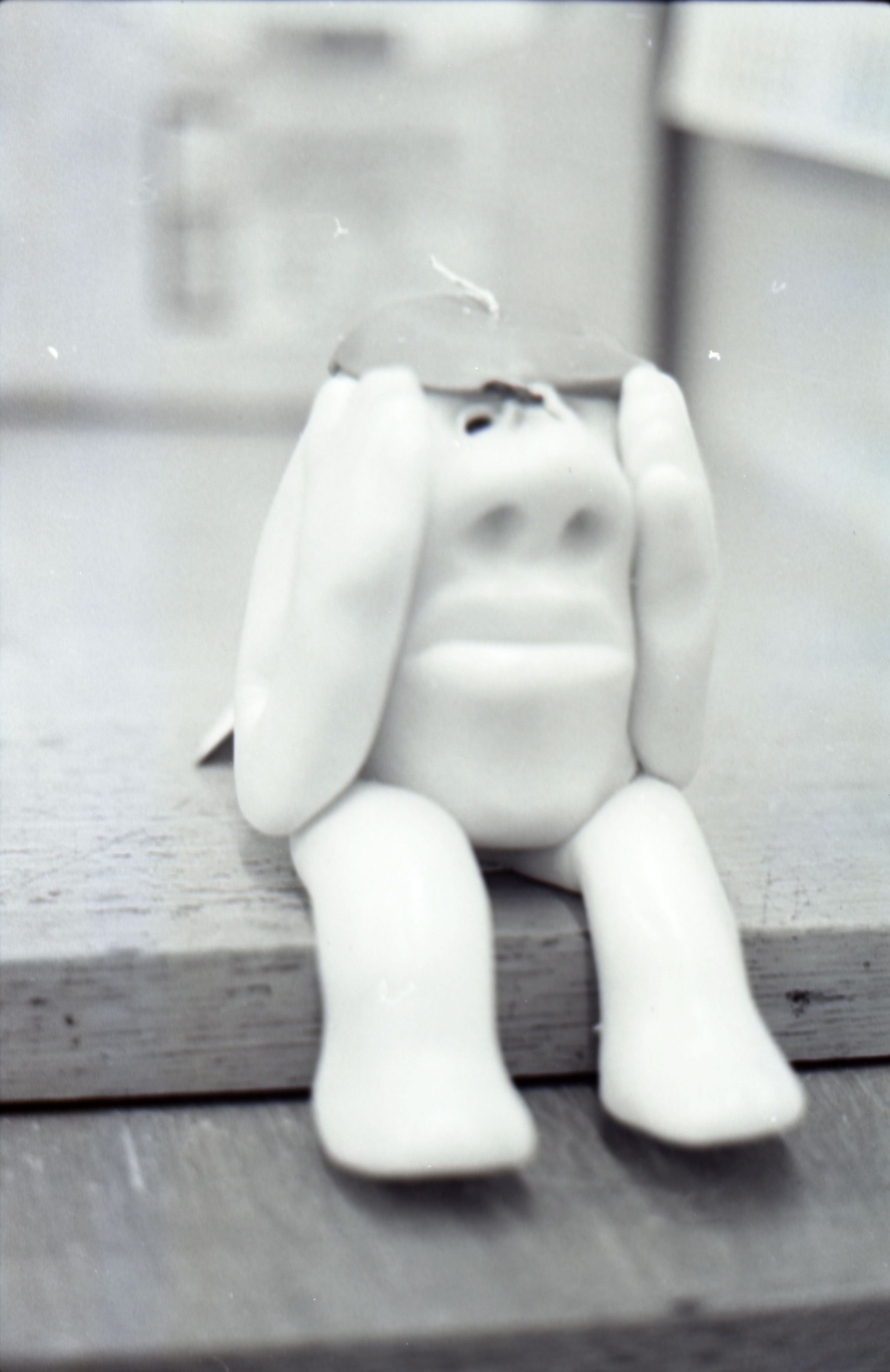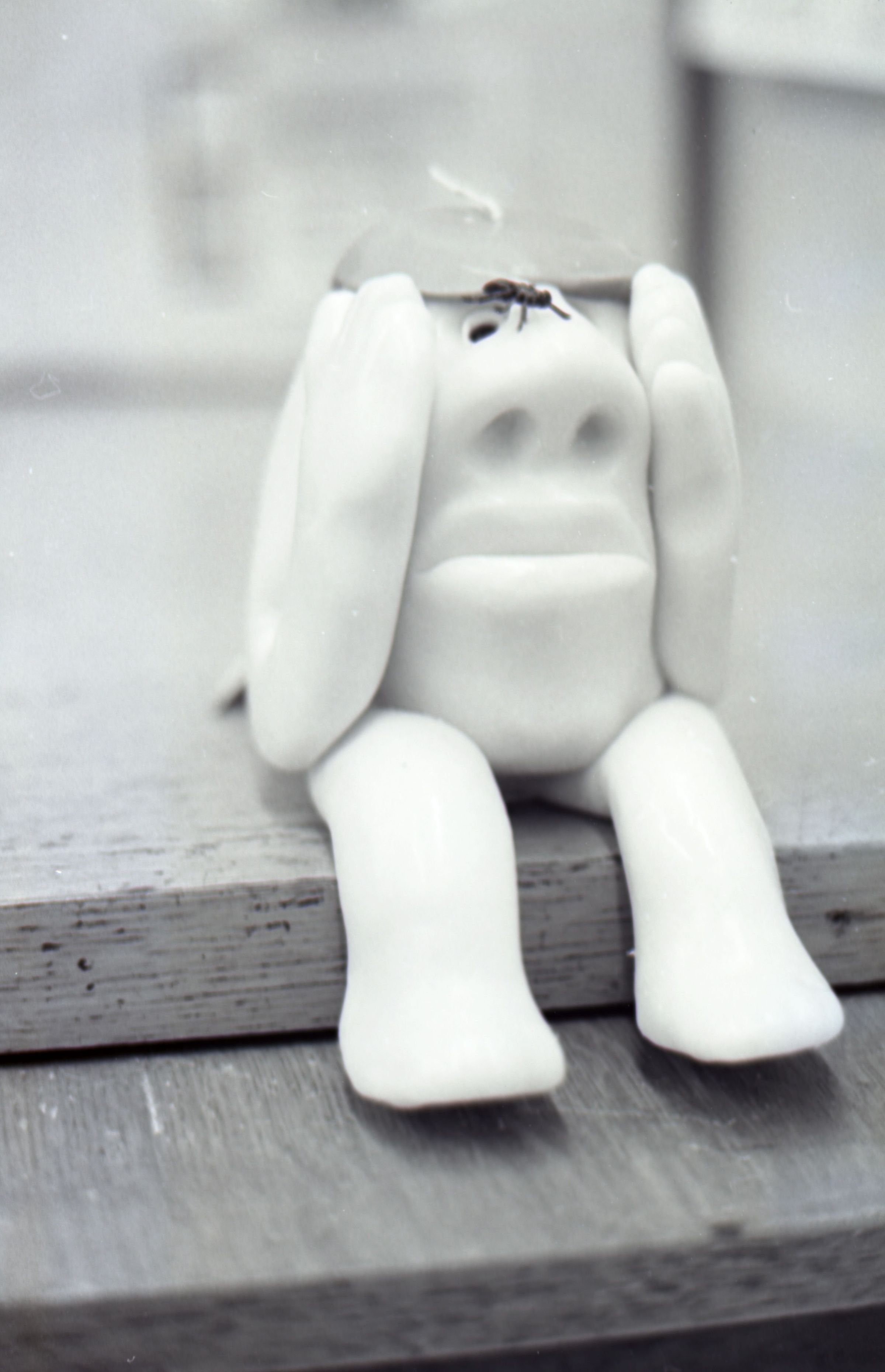 The images in group "i" show what appears to be a small clay figurine. This figurine consists of a face with very small eyes, one hand laying on each side of the face, legs and a hat similar to a newsboy cap with a small tassel on the top.