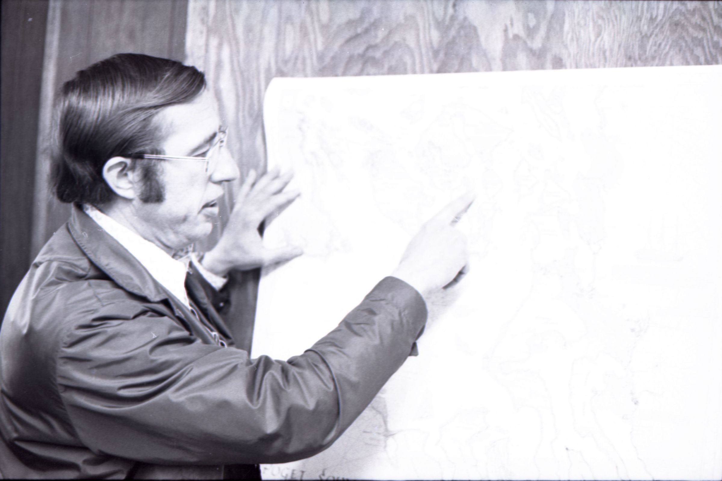 The images in group "l" show a man pointing at a map and a desk with no one sitting at it.