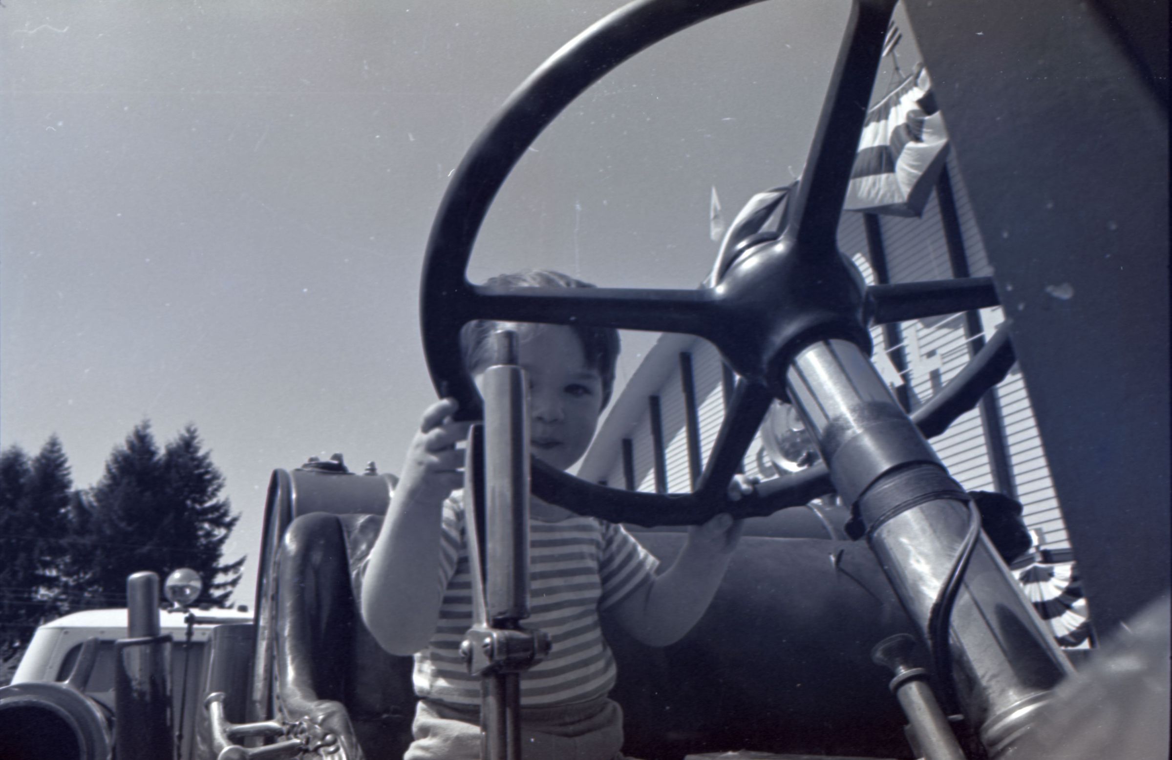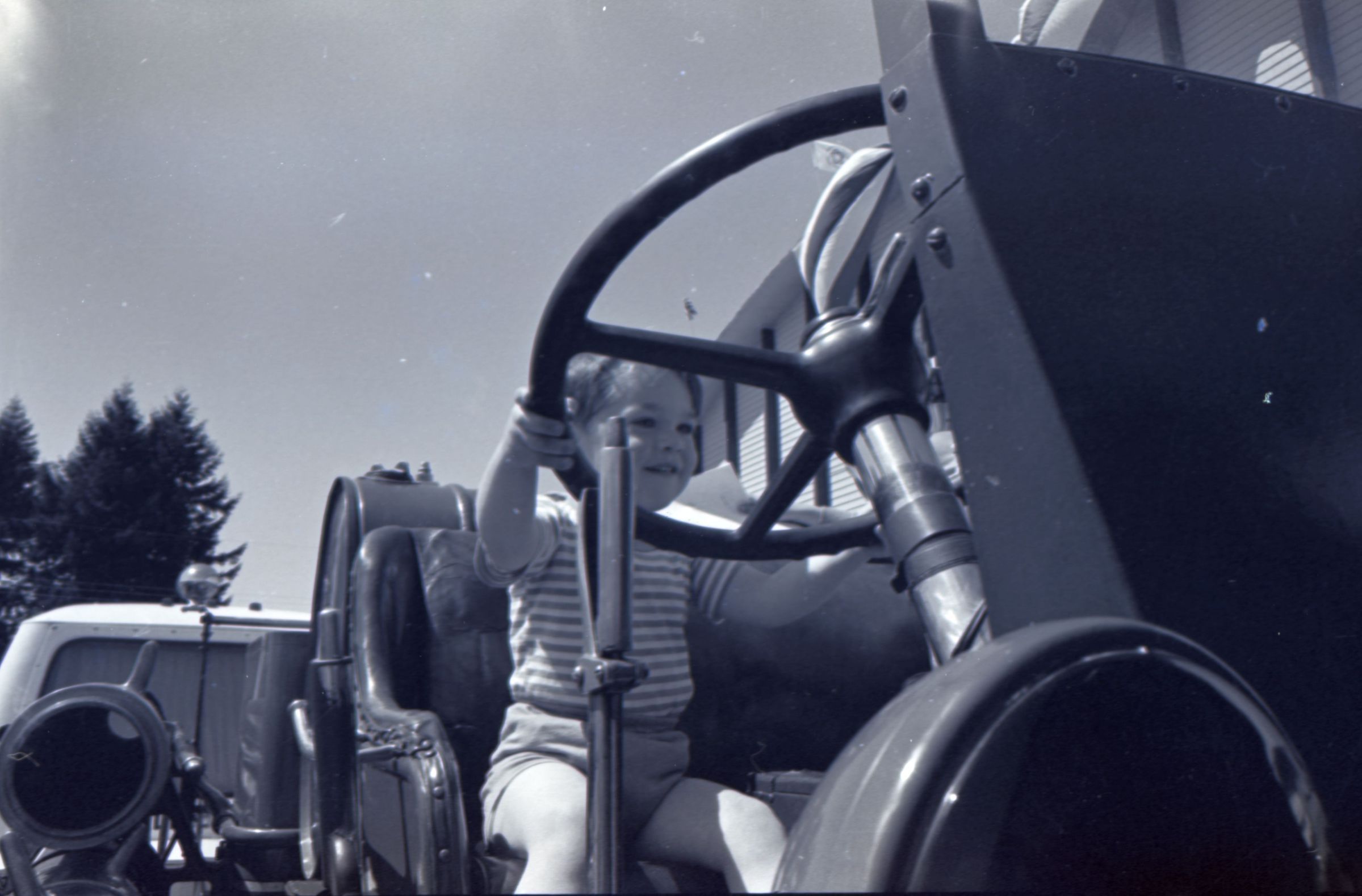 The images in group "n" show a little boy at the steering wheel of a large vehicle, likely a fire engine.Made/Created
