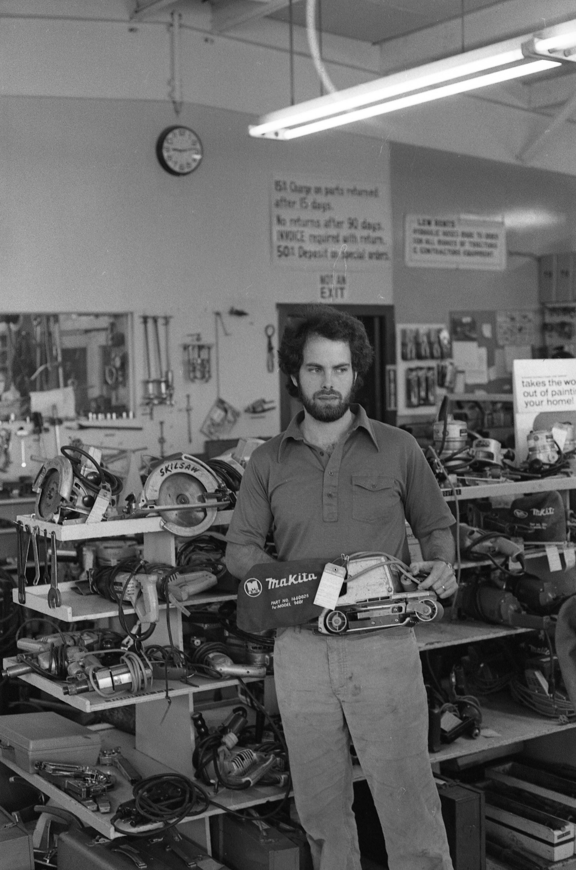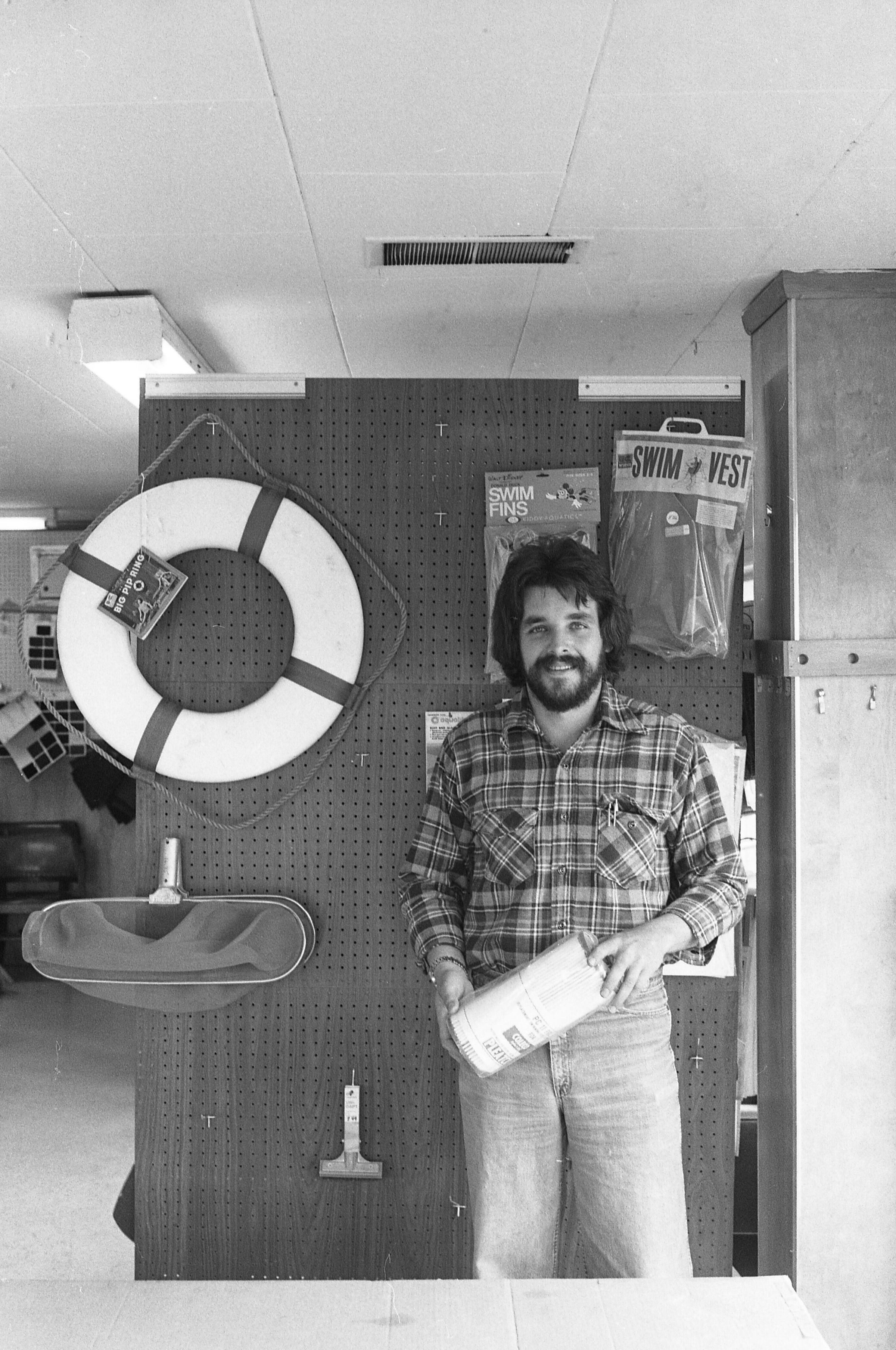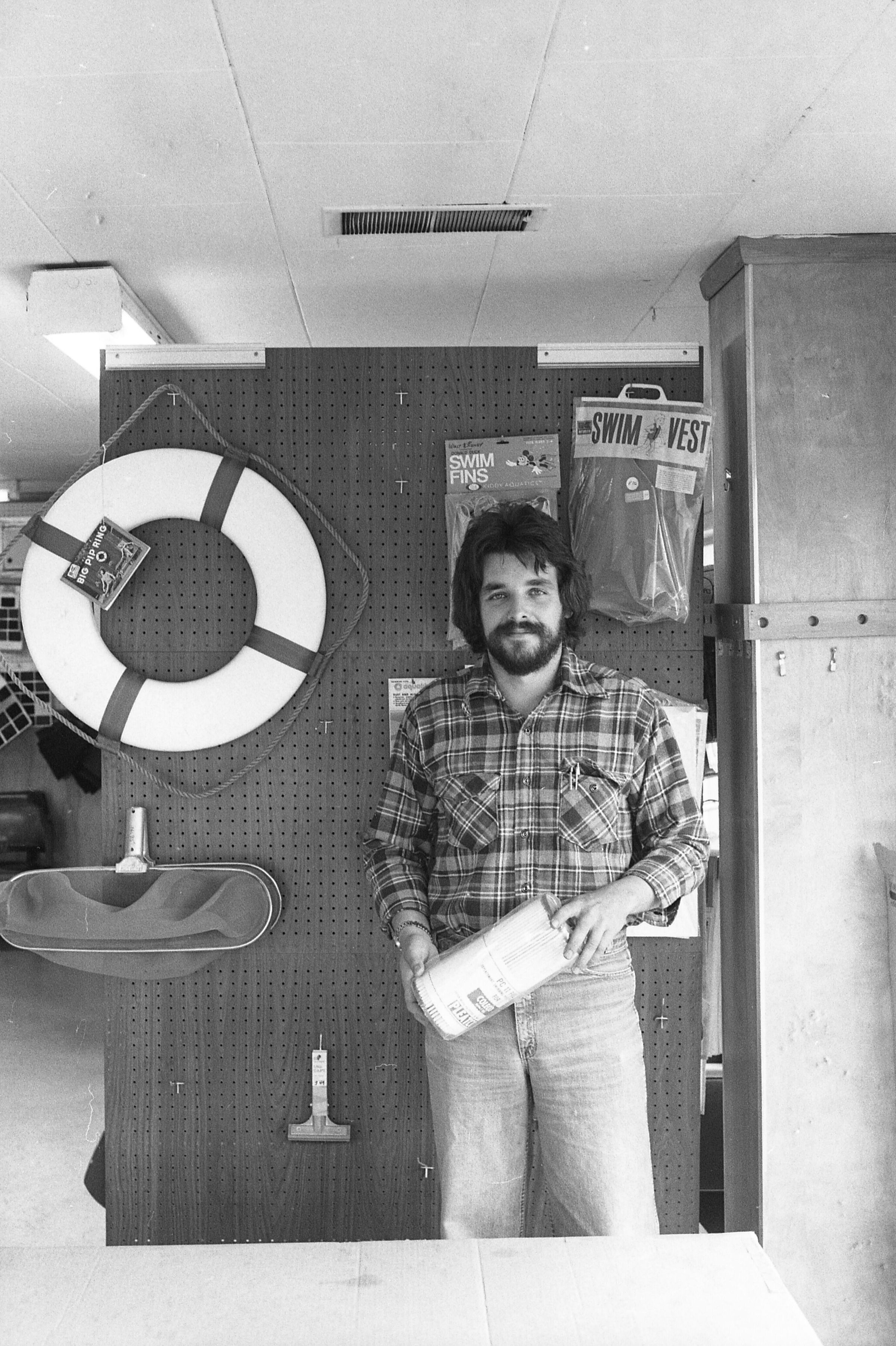 Budget Firm, Unknown Date.Two strips of negatives showing two individuals separately on the interior of a business.Made/Created