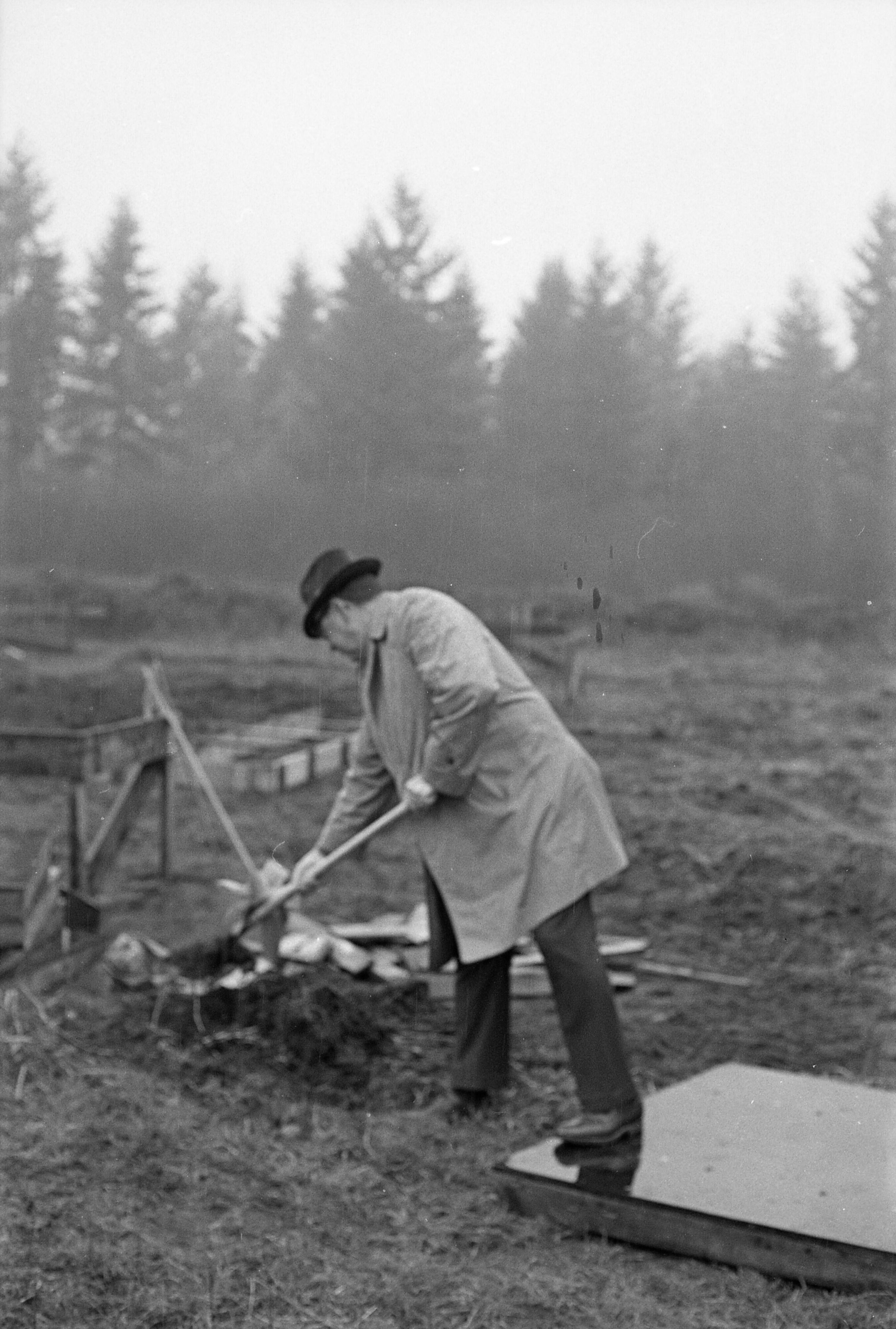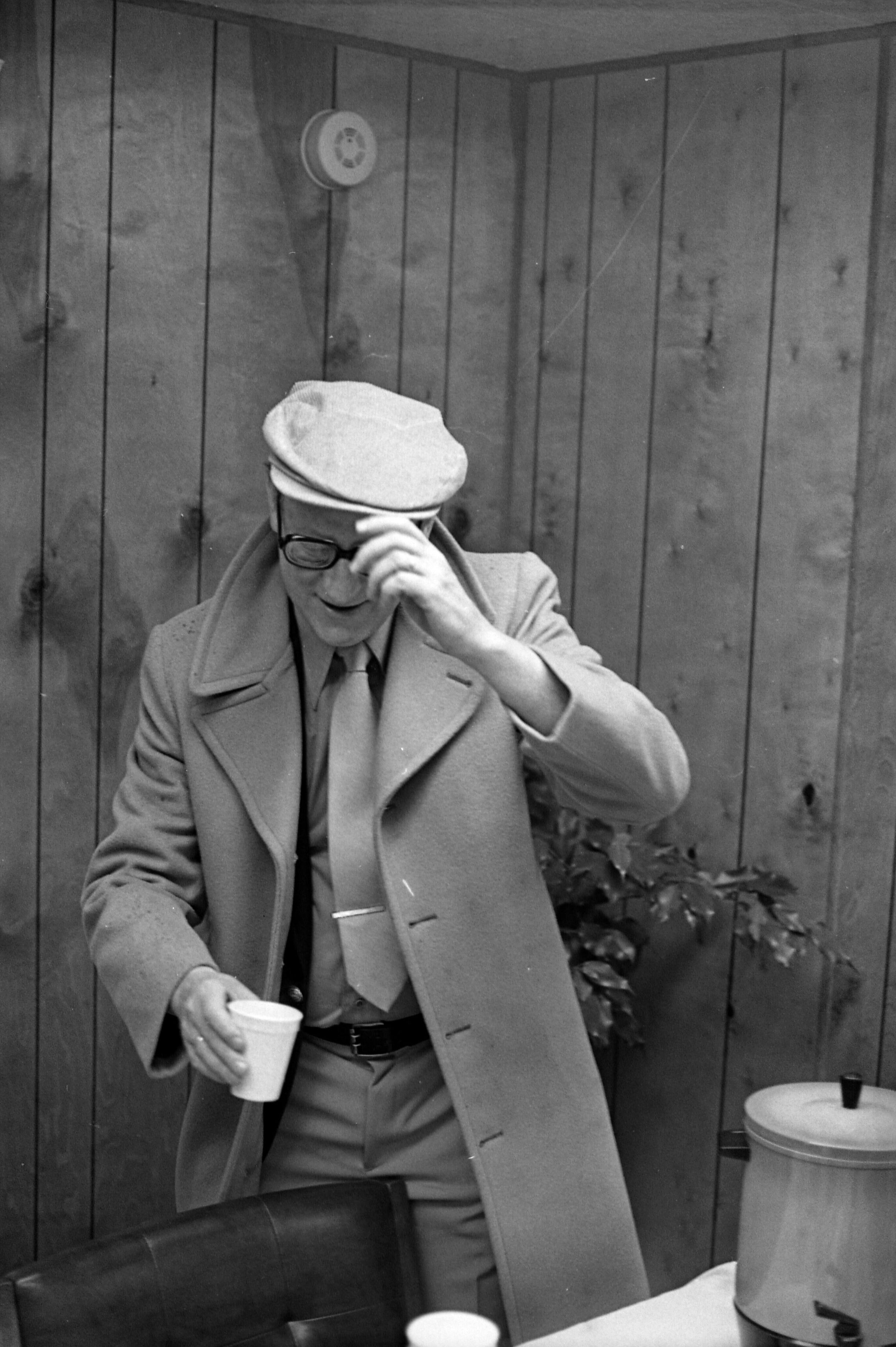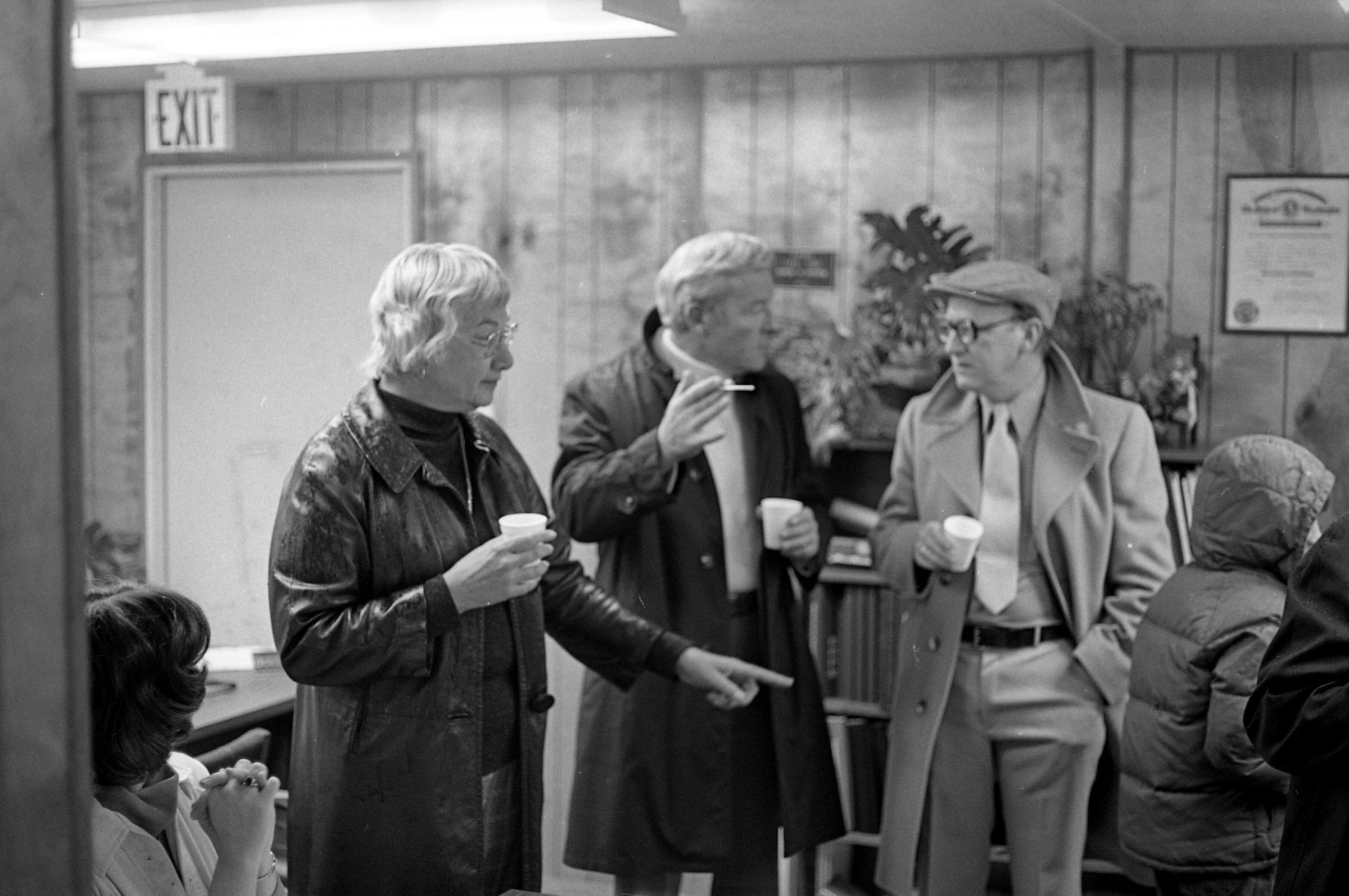 Lacey Bank Planning and Groundbreaking, 1979. These five black and white film negative strips were created for the Lacey Leader newspaper. These images show an outdoor groundbreaking ceremony for the new Lacey Bank building, and an indoor reception event taking place in the temporary building which the bank operated out of while the permanent structure was being constructed. The temporary structure was a mobile home.Made/Created