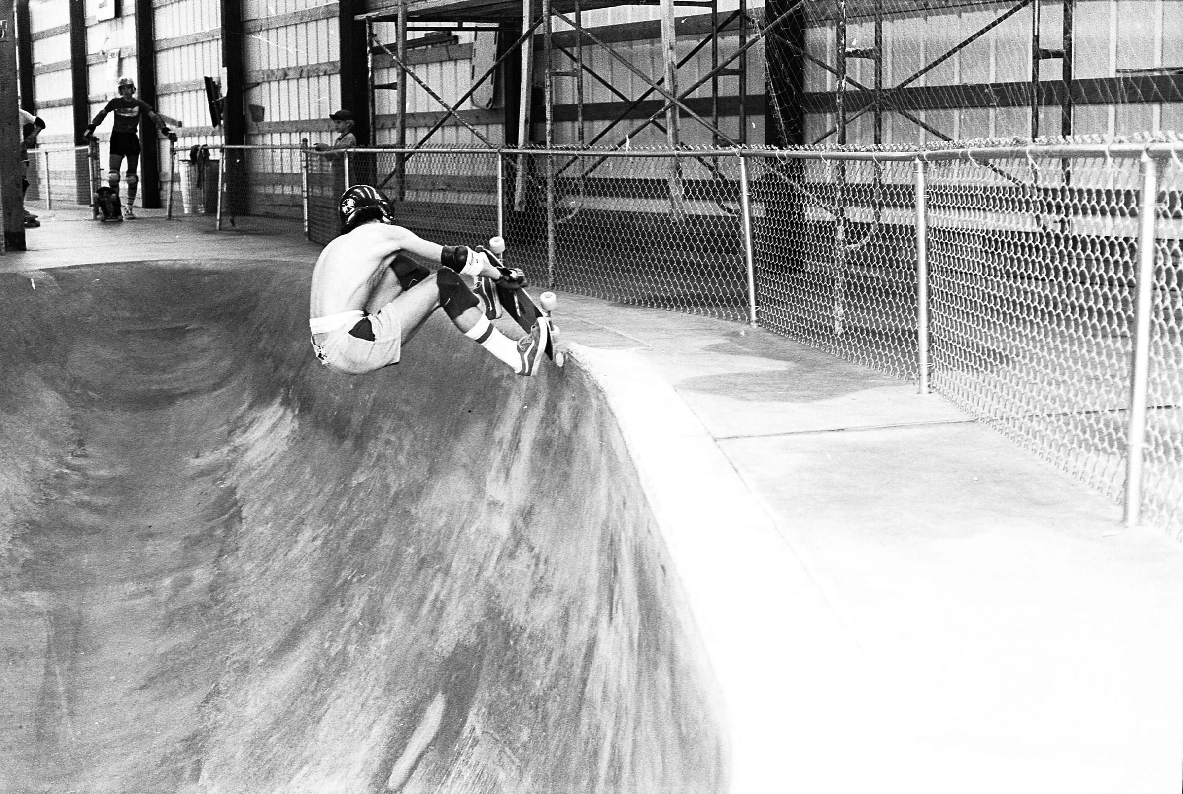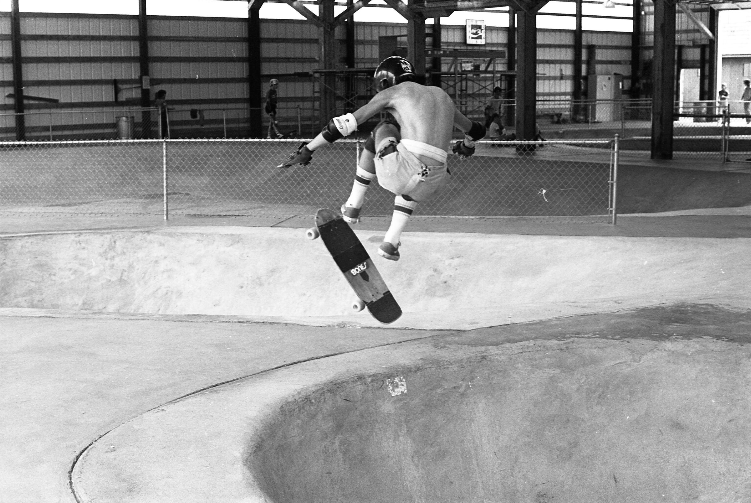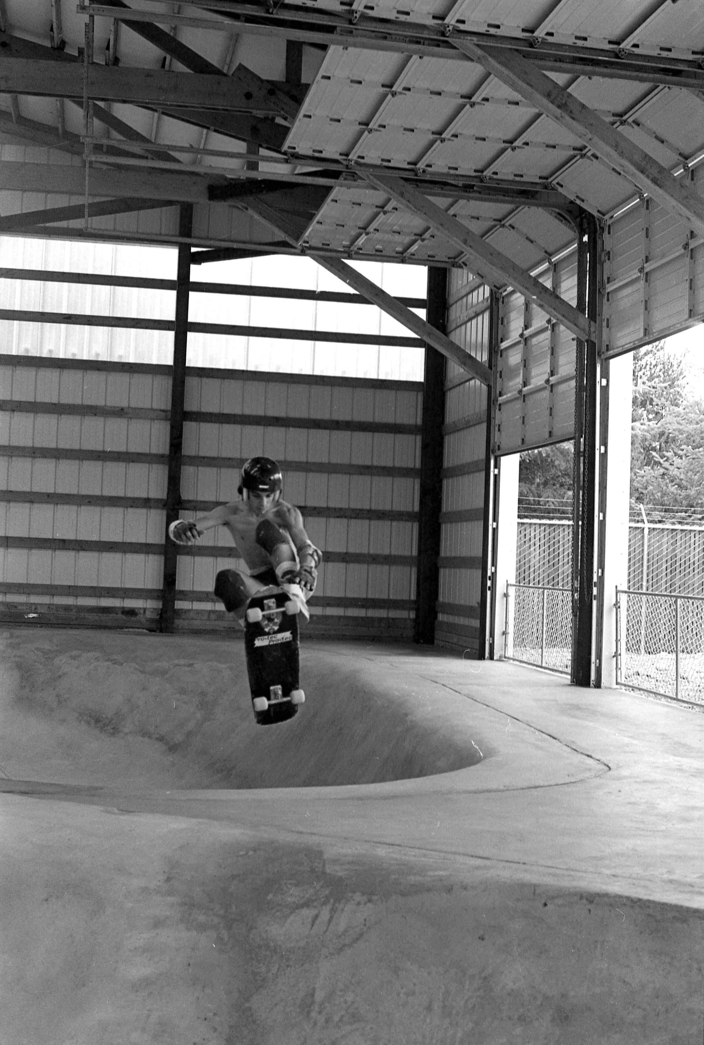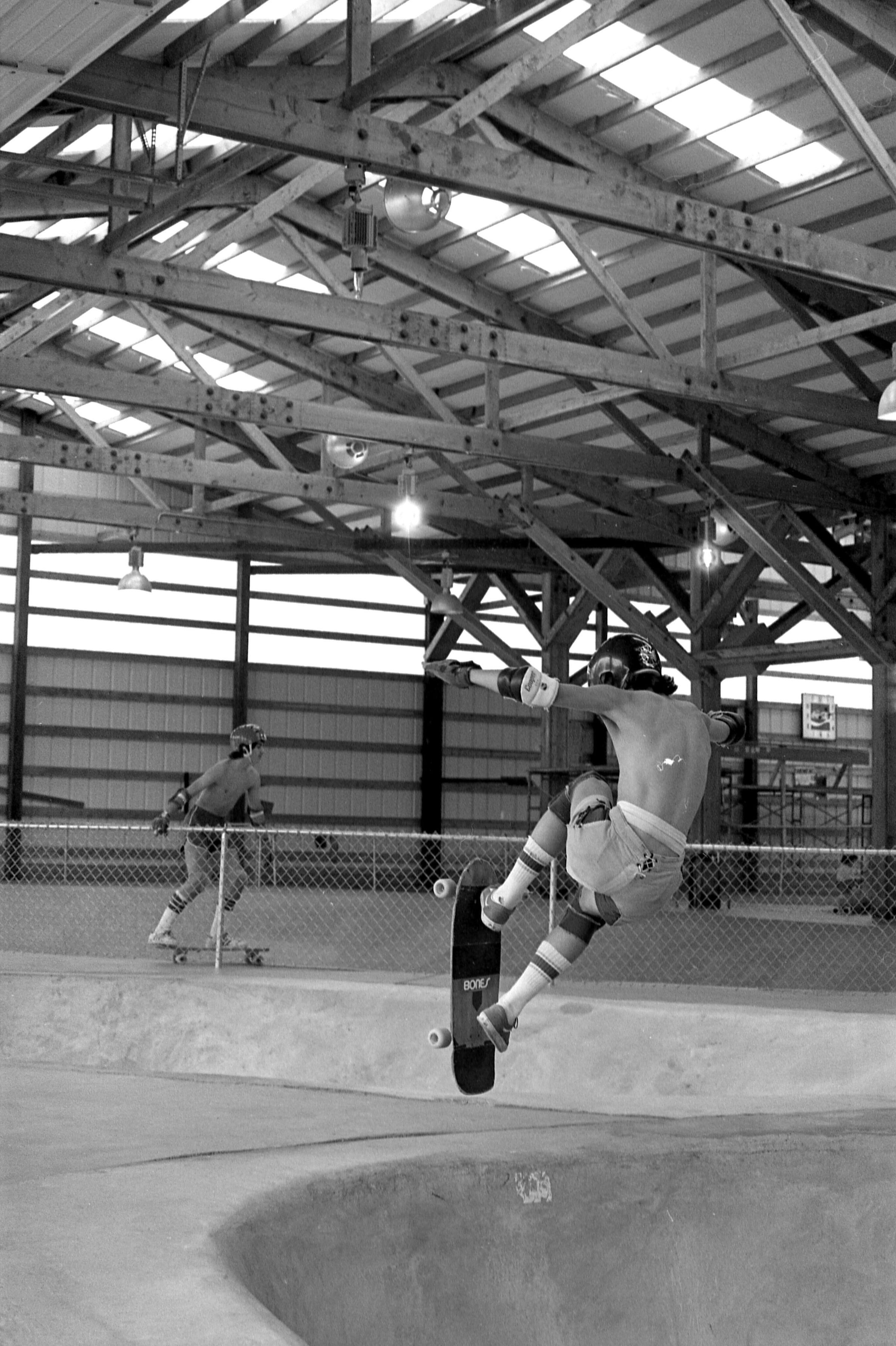 Images 32-42 are of an individual skateboarding and performing tricks in the bowls of the park. The walls, and ceiling are visible in the background.
