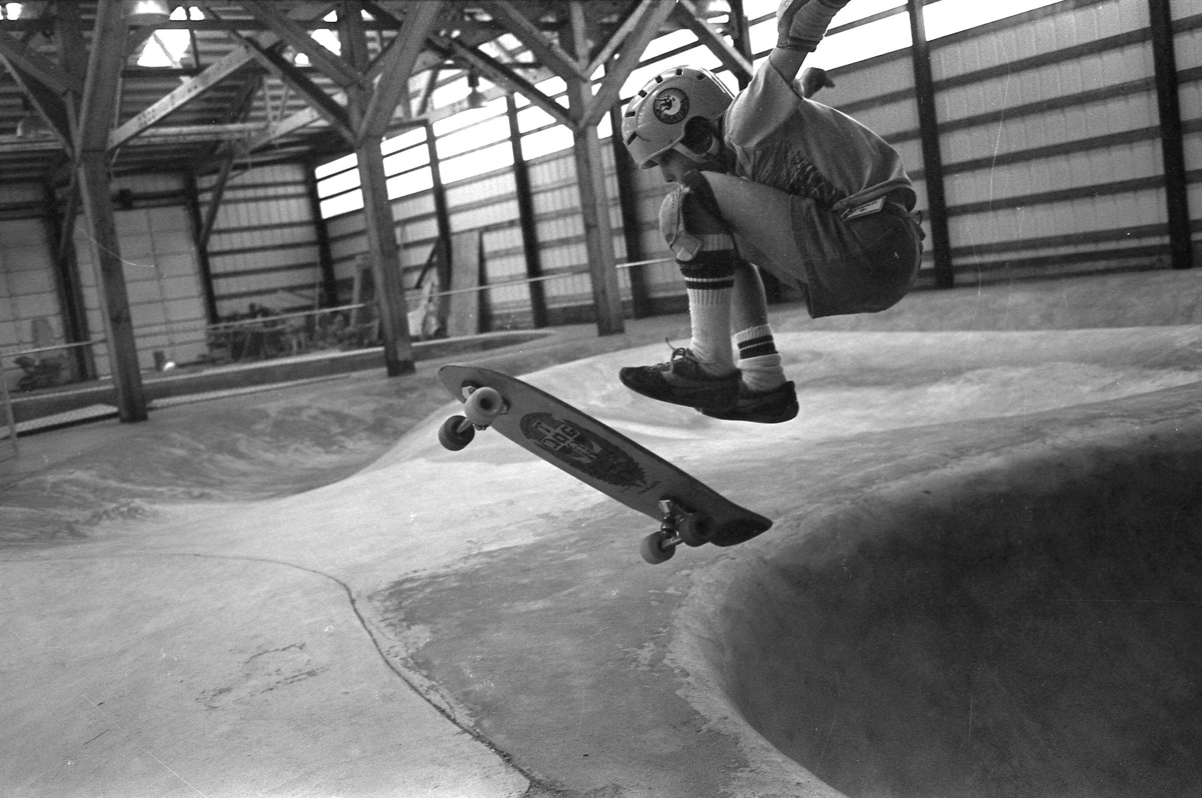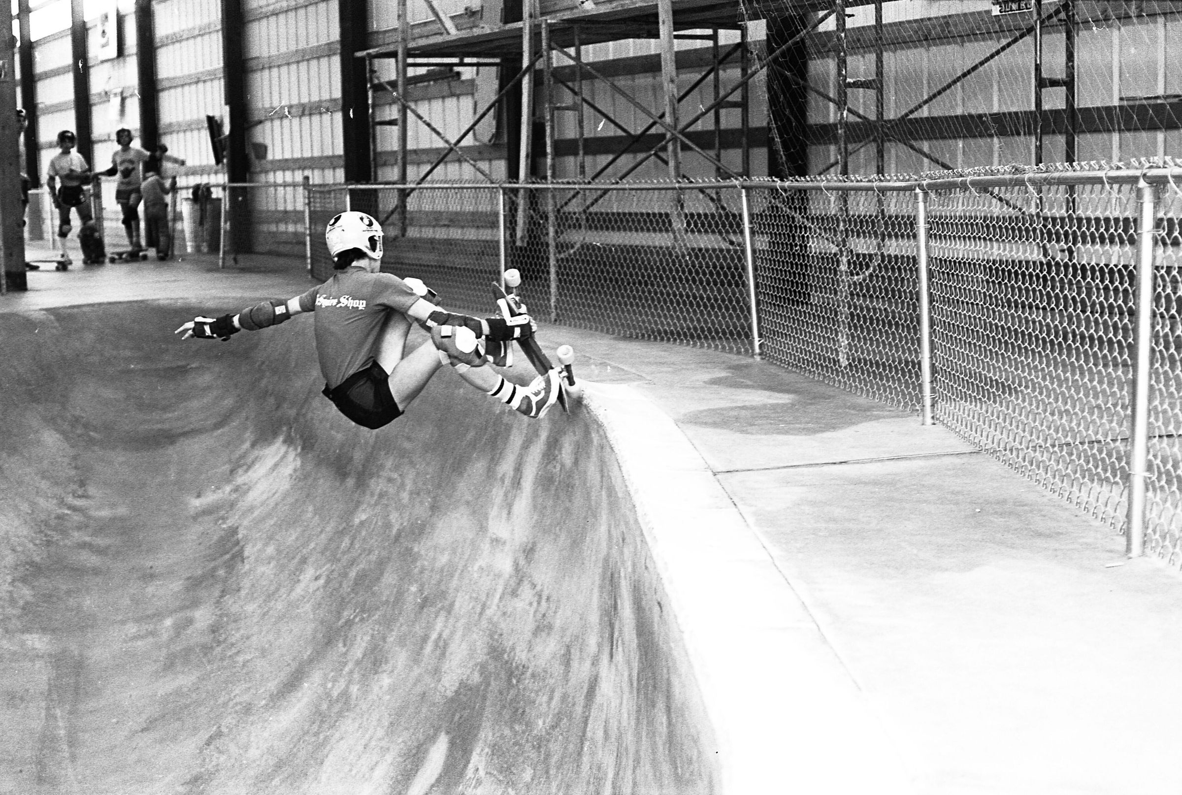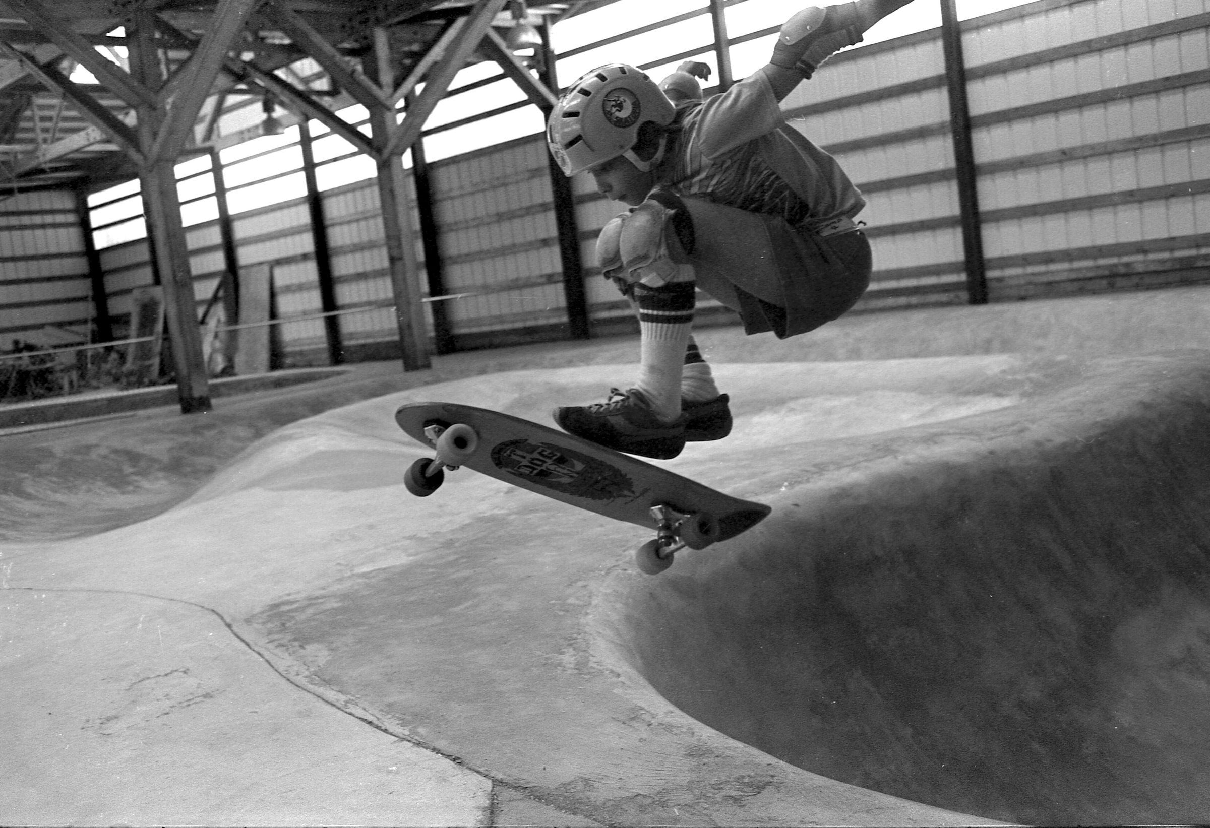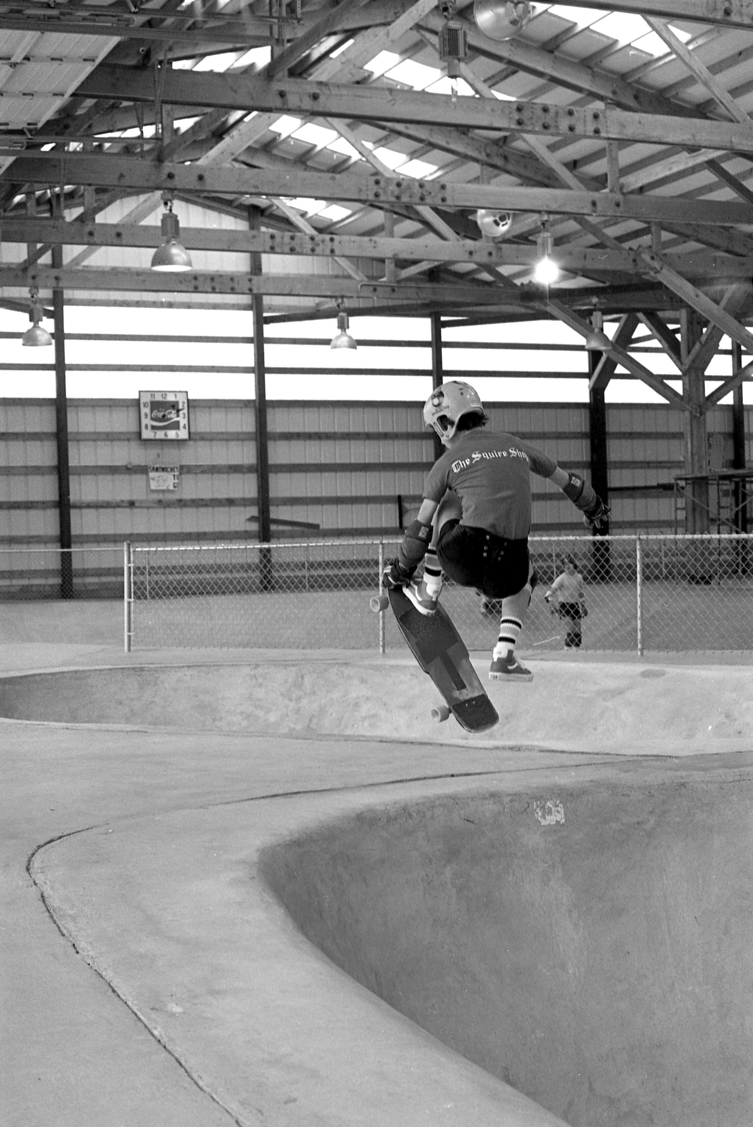 Images 32-42 are of an individual skateboarding and performing tricks in the bowls of the park. The walls, and ceiling are visible in the background.
