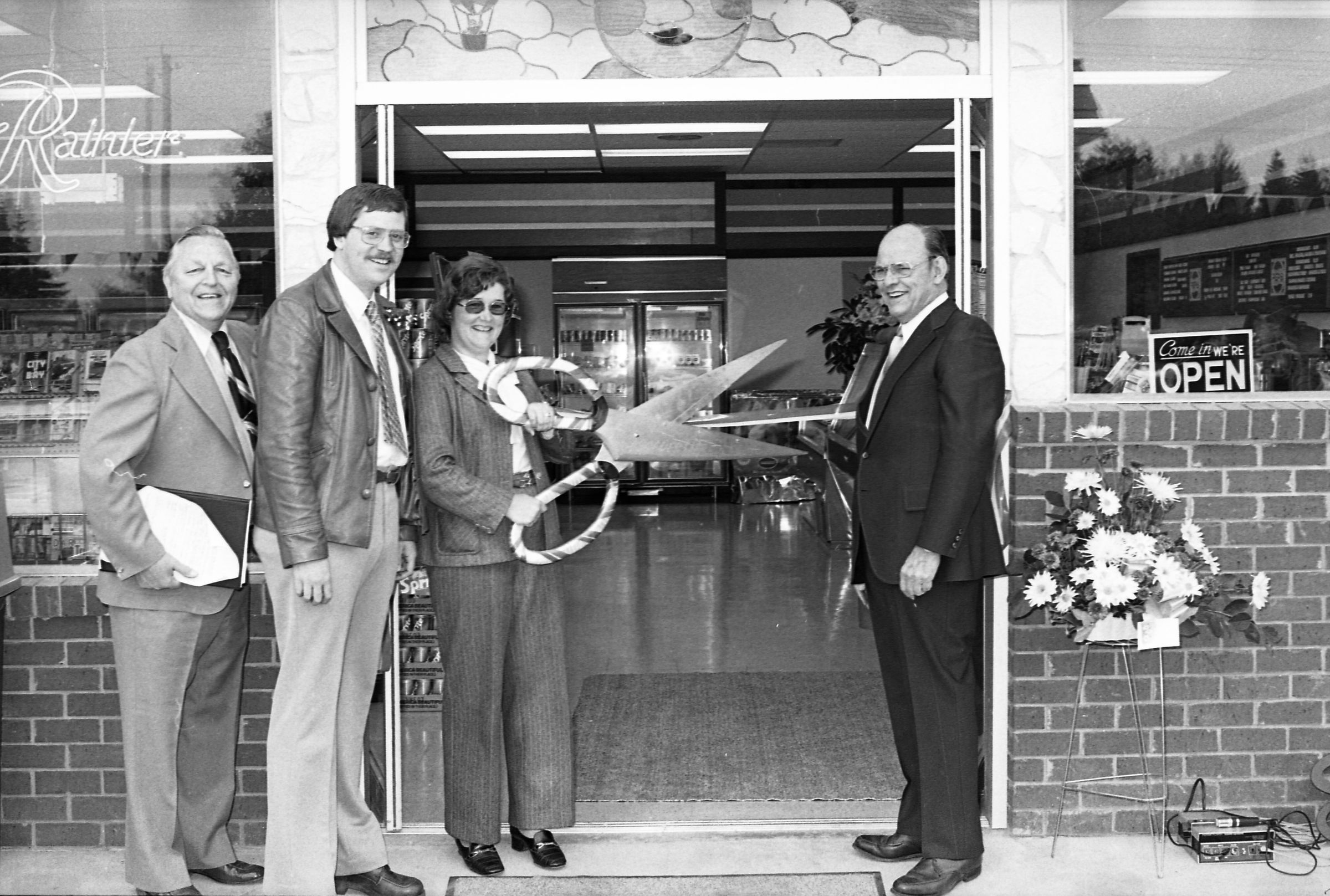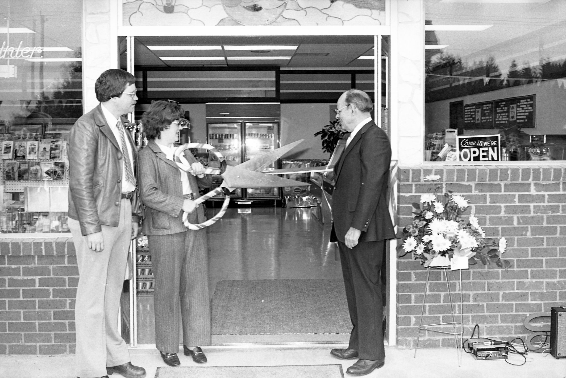 The images in group "a" show a ribbon-cutting ceremony for Full Moon Grocery and Deli.