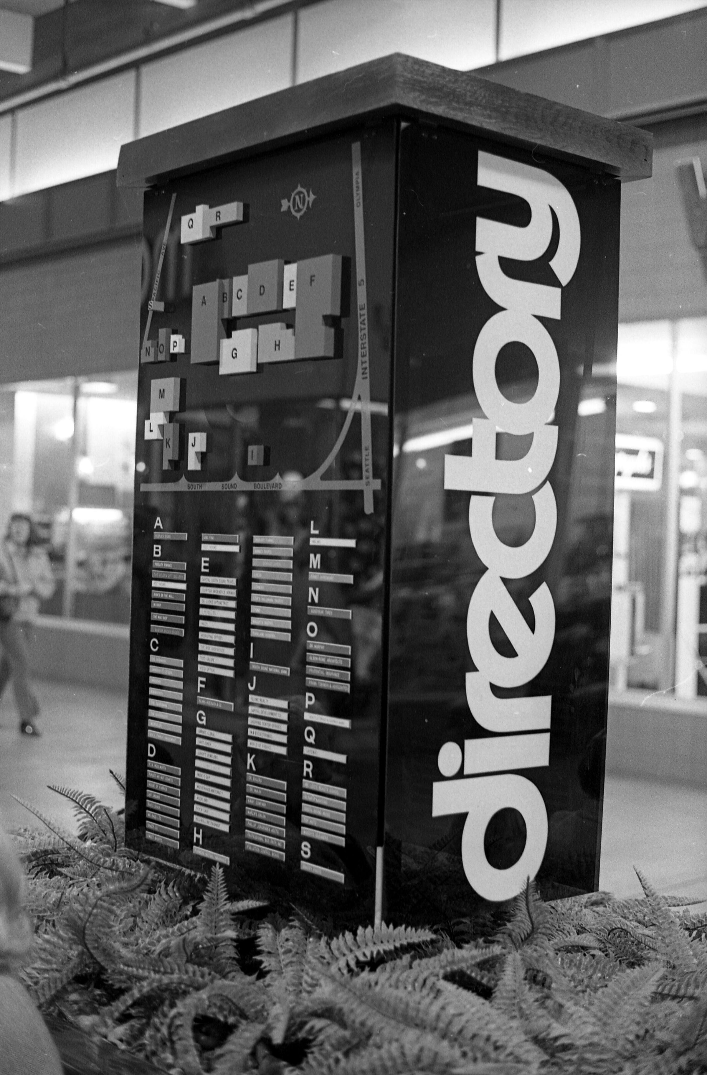 South Sound Center, 1974. These seven black and white film negative strips were created for the Lacey Leader newspaper. These images were created using three separate film rolls, so some of the physical numbers on the strips are repeated. For the purposes of this description, these strips will be grouped according to the film roll from which they originally came. Each group will be assigned a lower-case letter to go along with the physical numbers on the strips (ex: 1a, 2a, 3a, 1b, 2b, 3b, etc.) to help differentiate between images.Made/Created