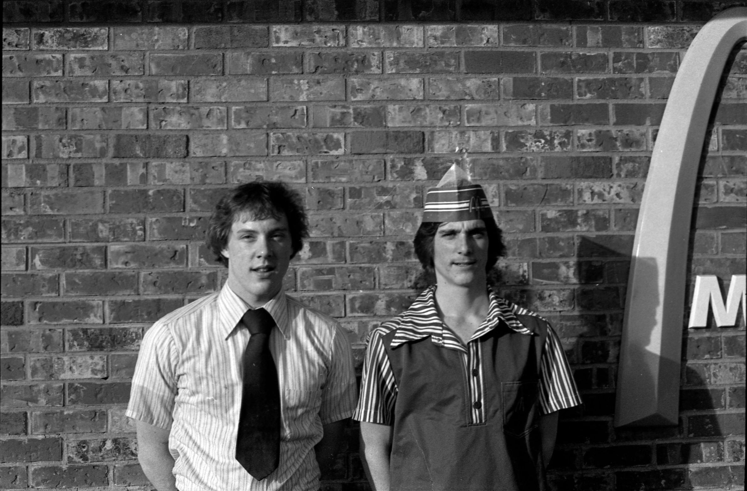 G471N. McDonalds. Three photos showing two employees at McDonalds: one each of each employee and one of the two of them side by side.Made/Created