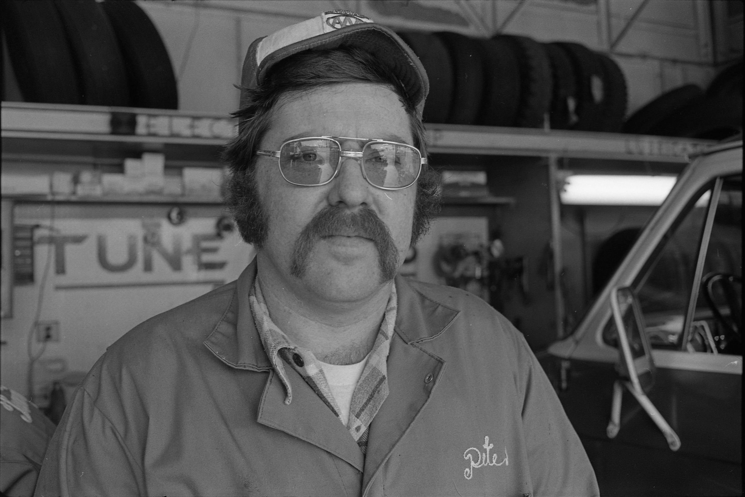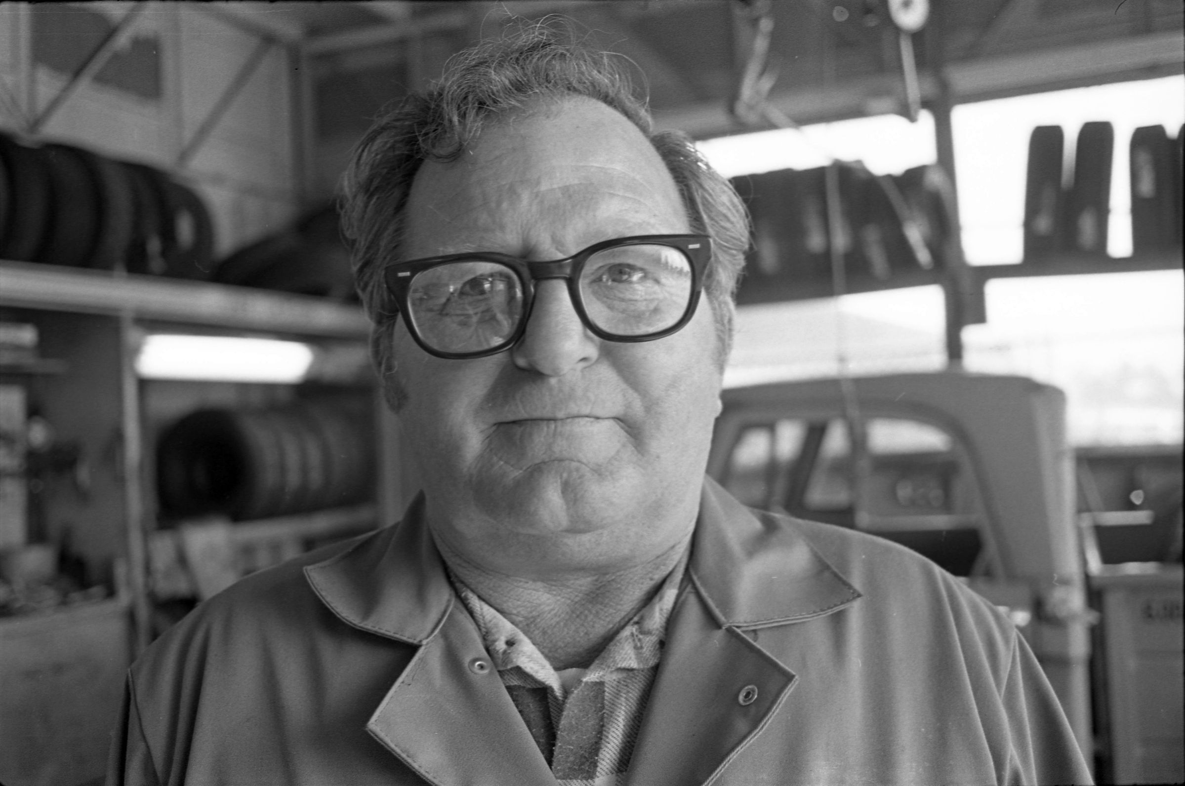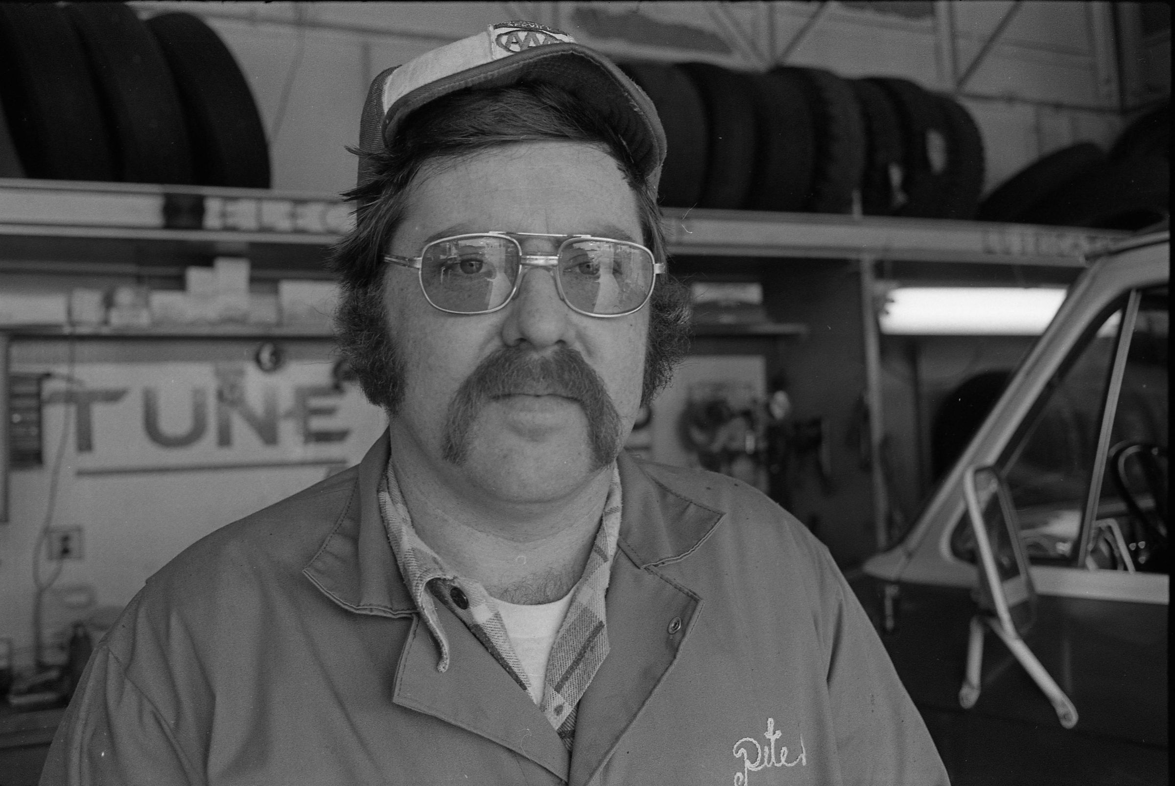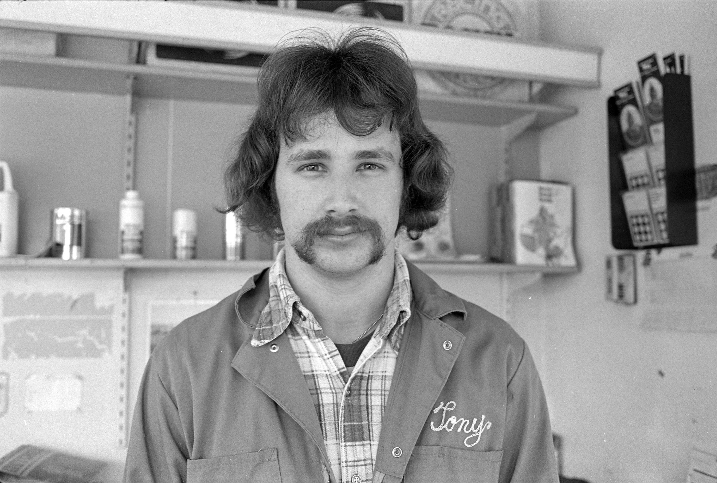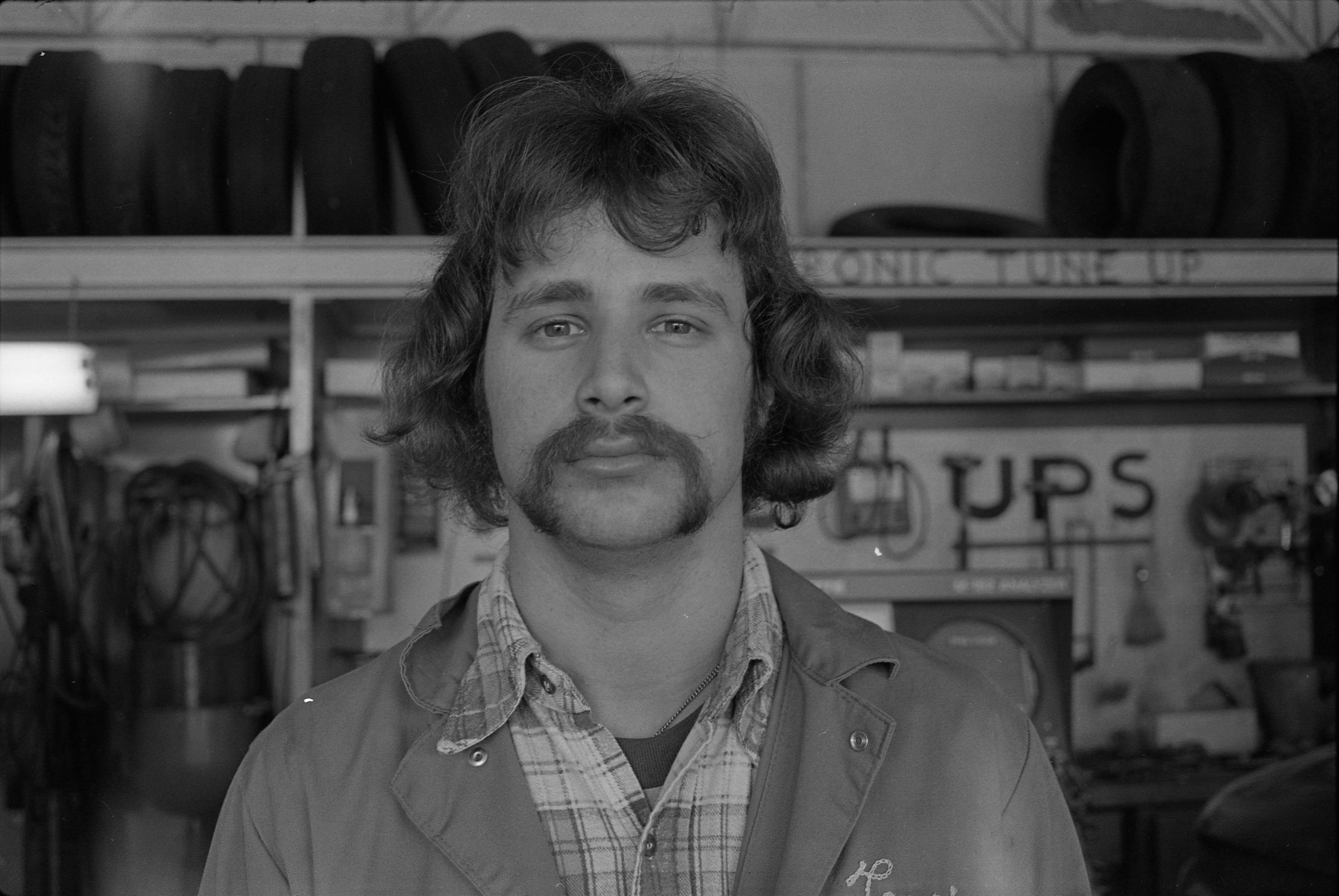 Business Progress, 3-20-1979. These 6 black and white negative strips were created for the Lacey Leader newspaper. They depict exteriors of a 76 gas station and Don's Automotive & Towing, featuring employees of Don's.