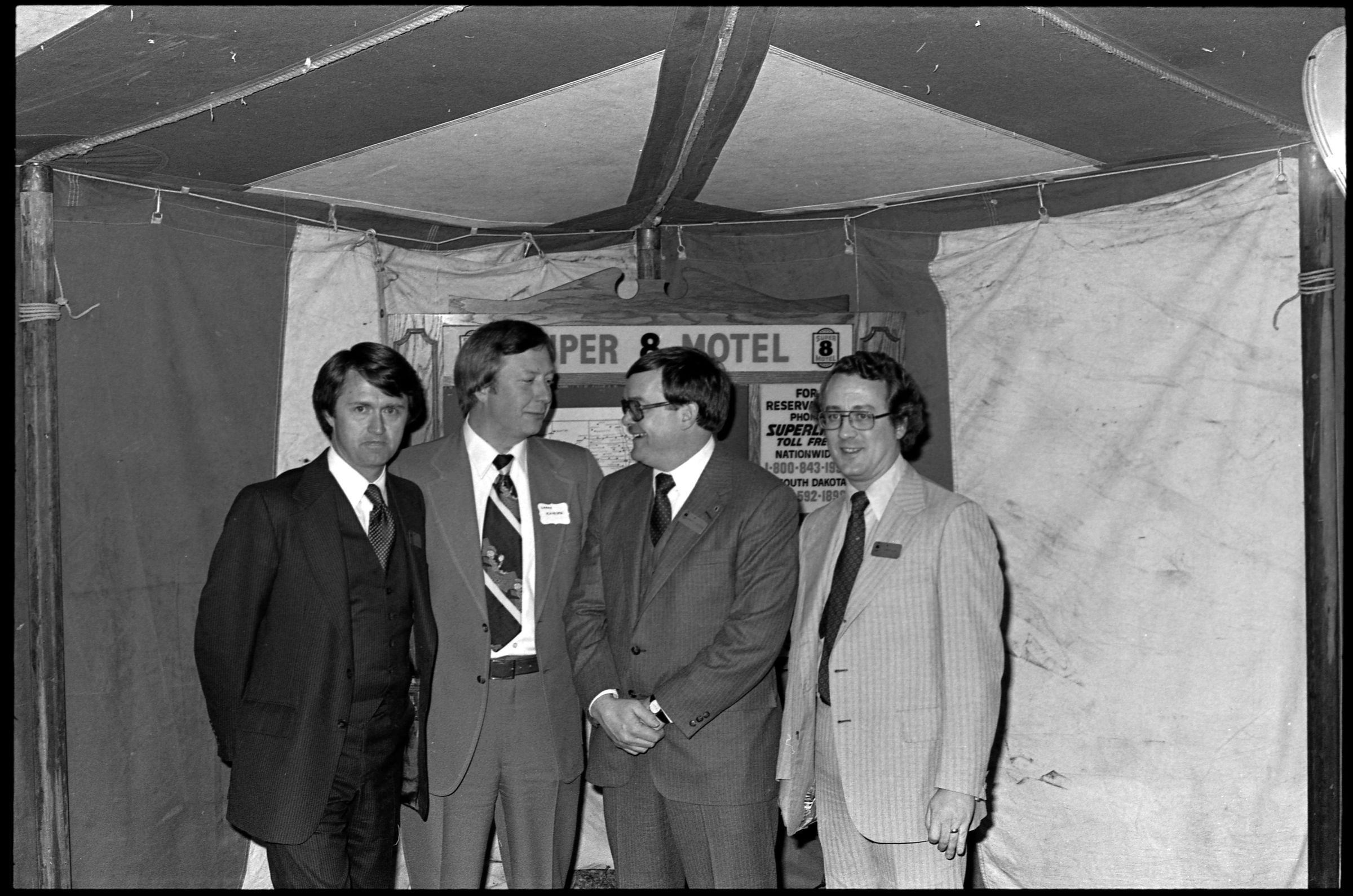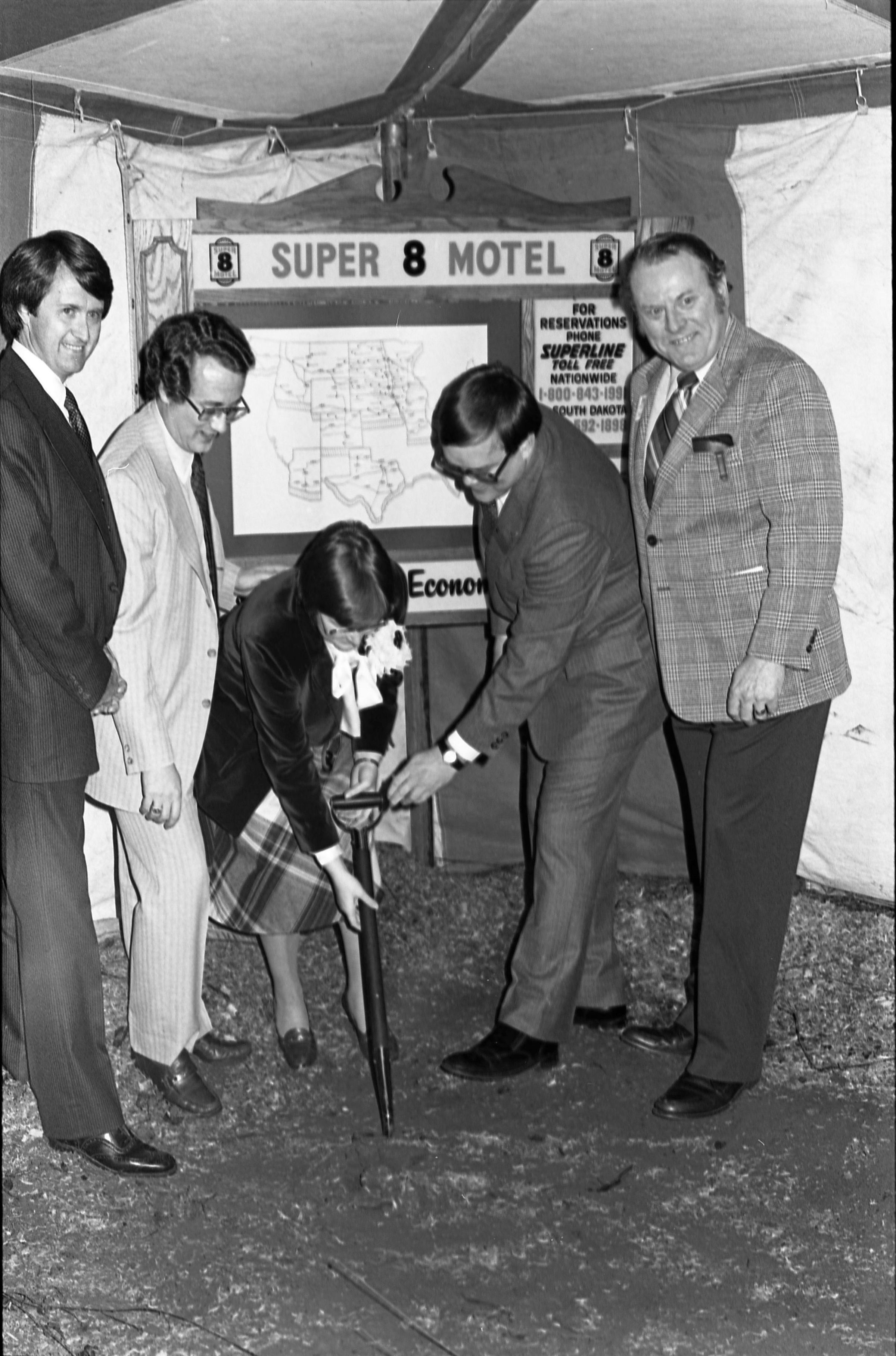 Sleeper 8 Motel Ground Breaking, 1-17-1980. These three black and white negative strips were created for the Lacey Leader newspaper. They depict several people during the event. Some posed and some candid.Made/Created