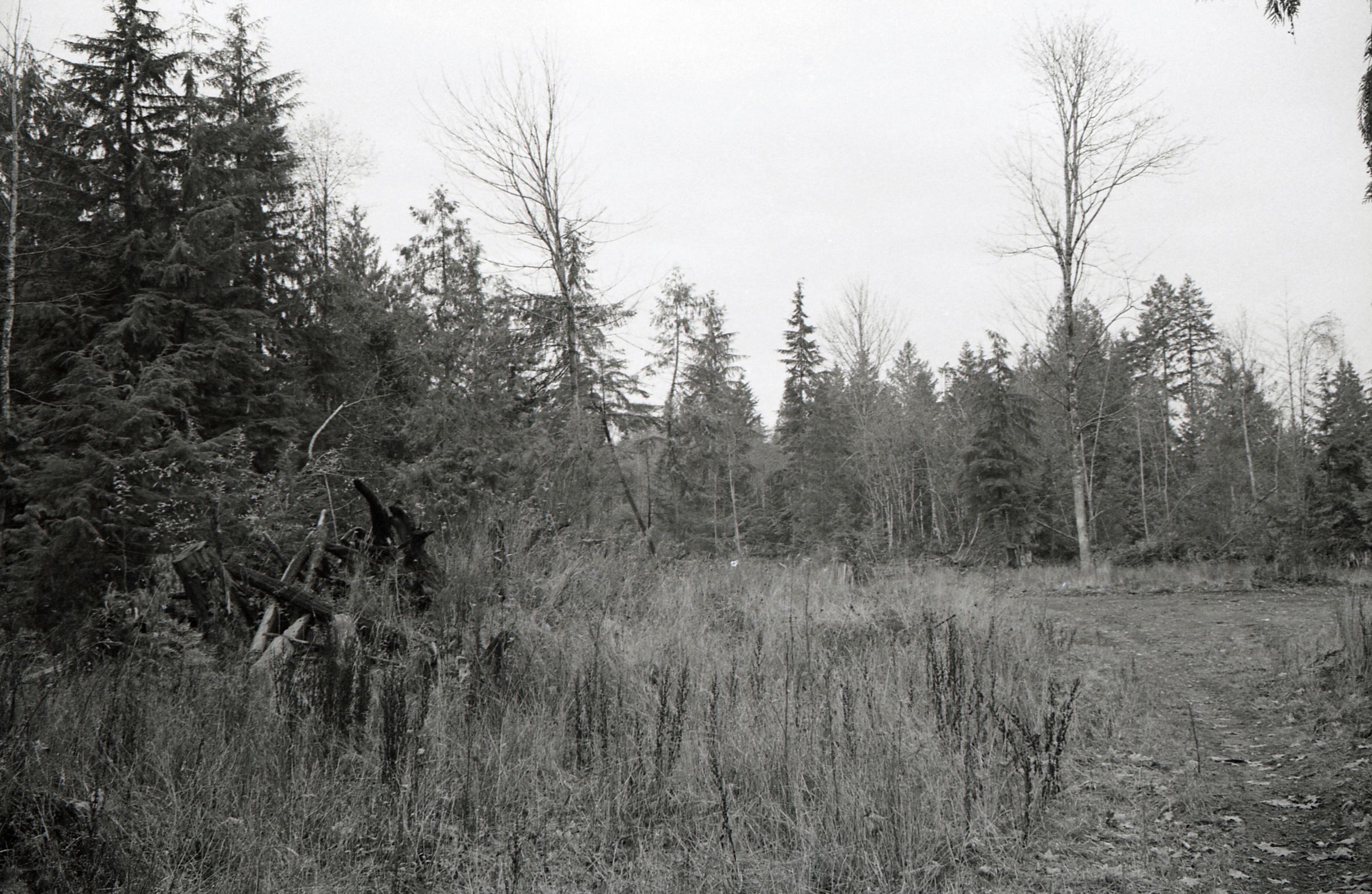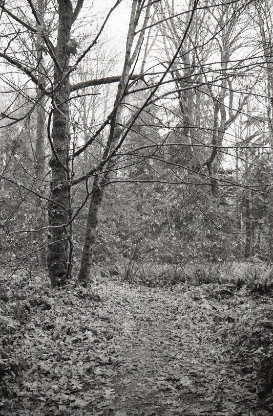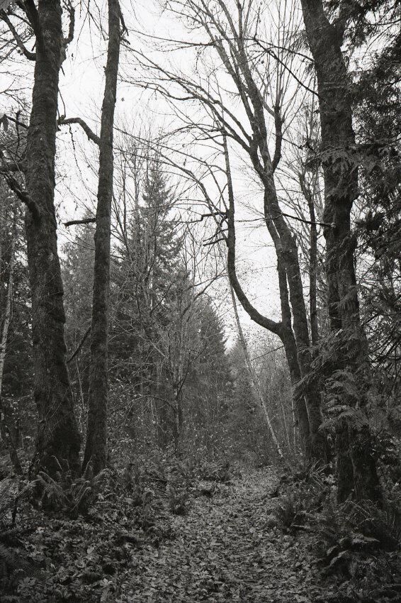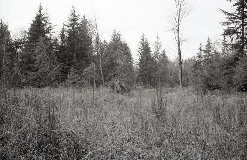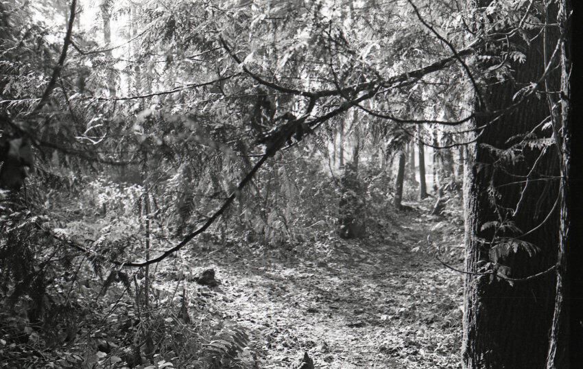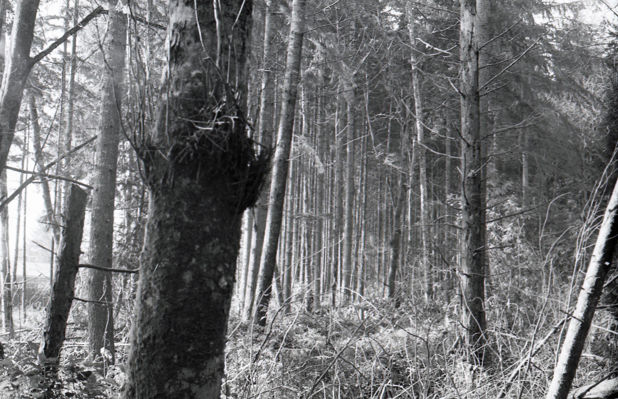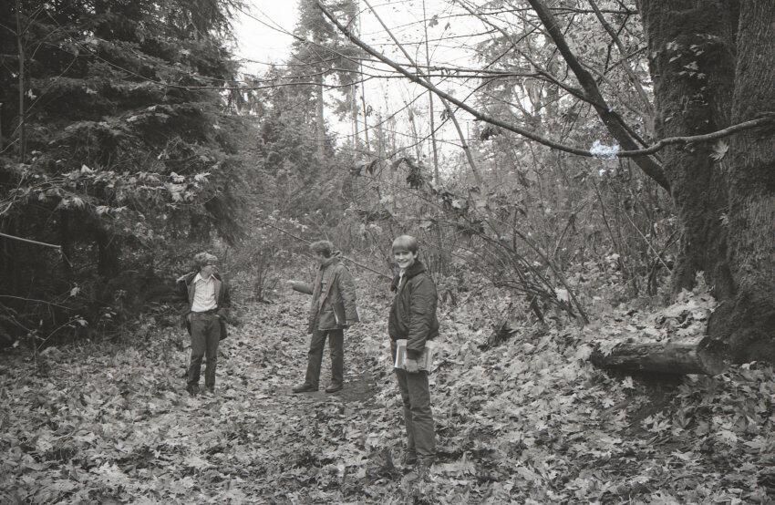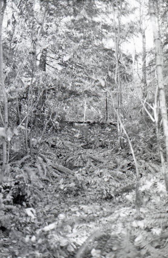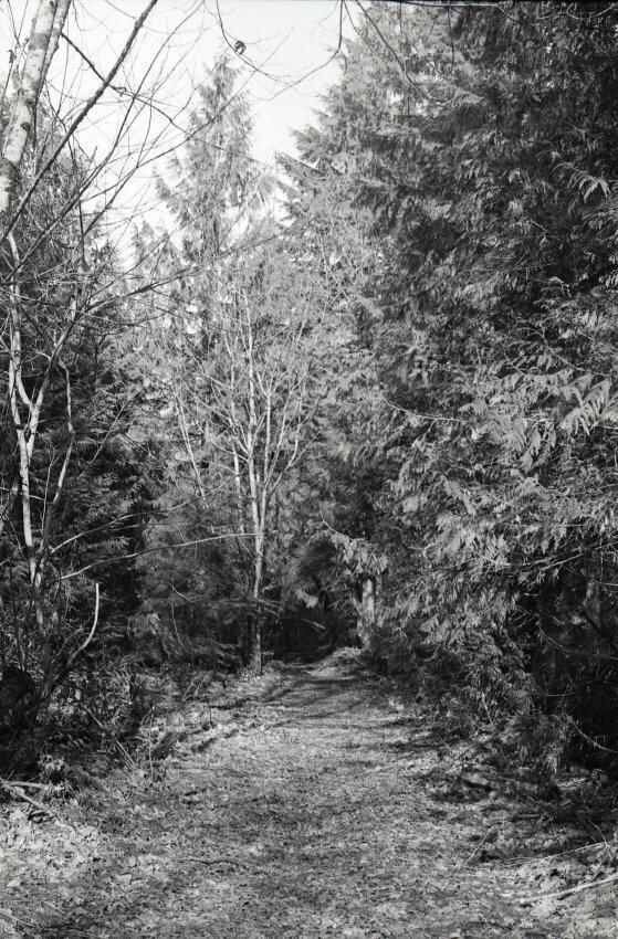 New Lacey Park Addition (20 Acres), 02-1973. These four black and white negative strips were created for the Lacey Leader newspaper. They depict various parts of the woods and trails in the park.