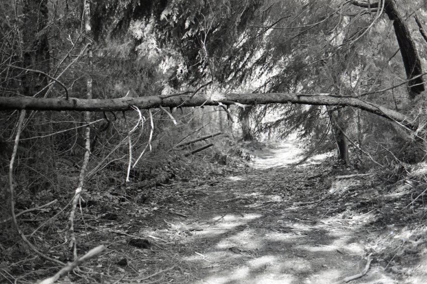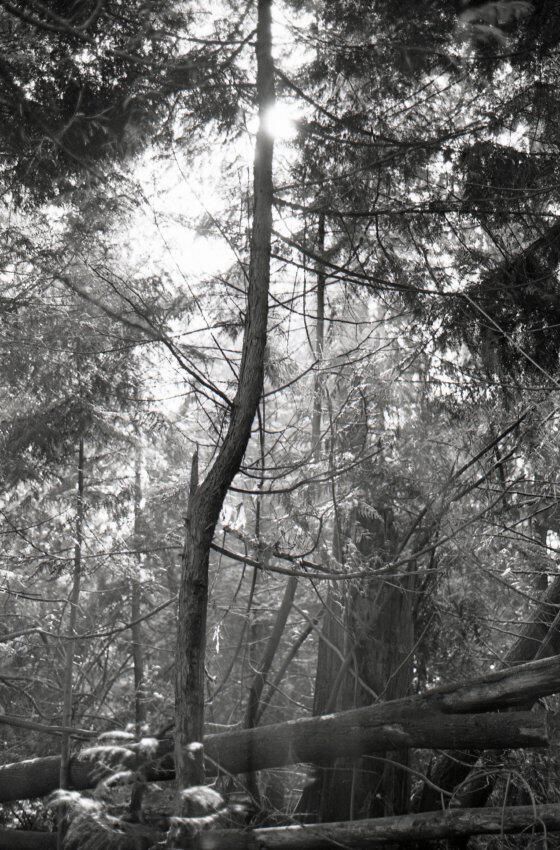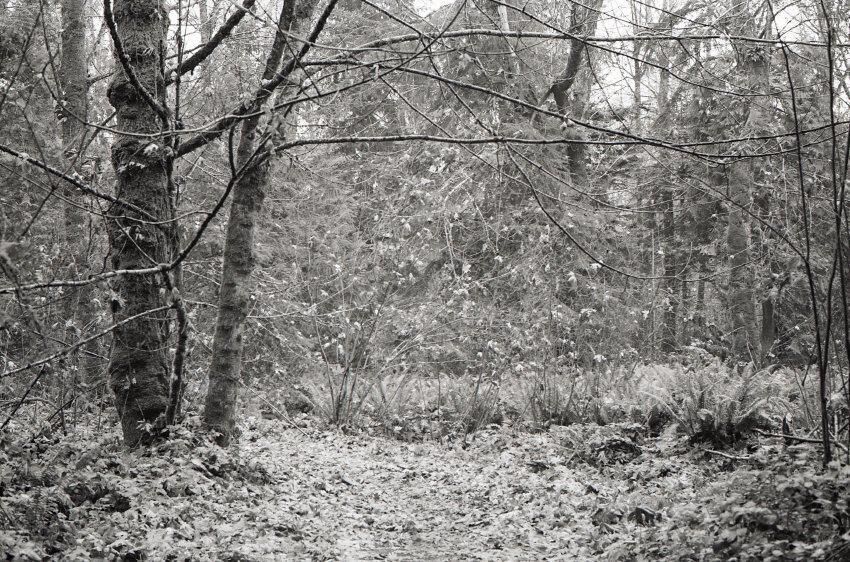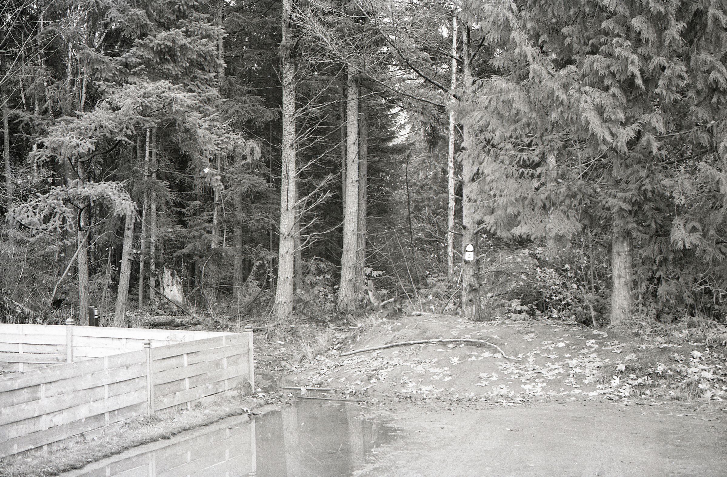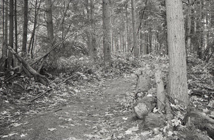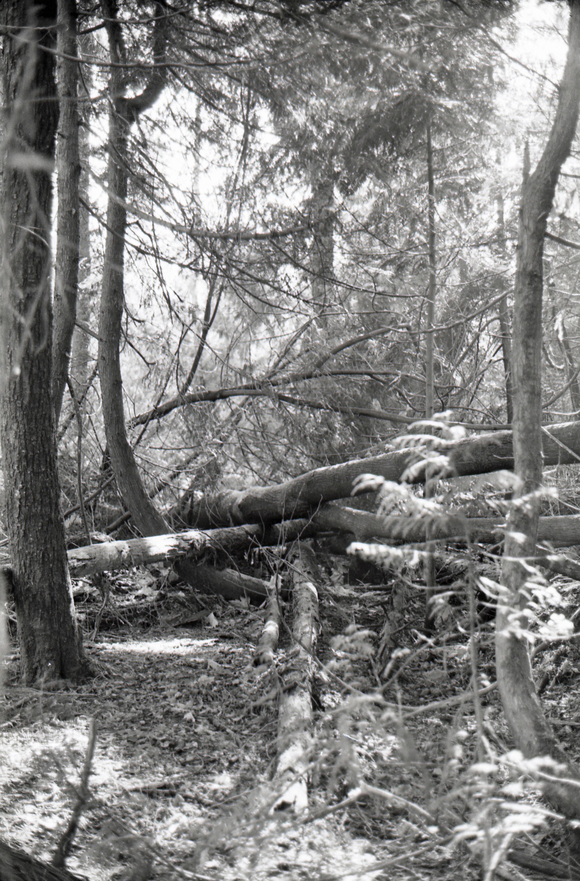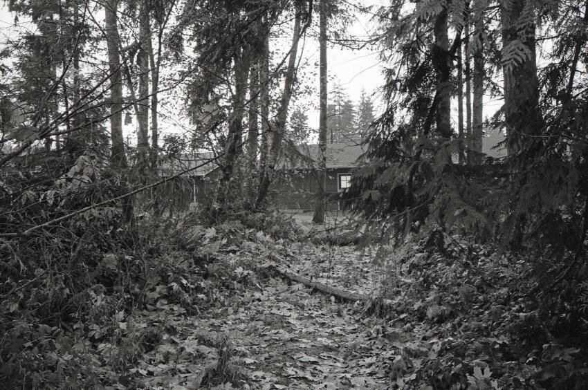 New Lacey Park Addition (20 Acres), 02-1973. These four black and white negative strips were created for the Lacey Leader newspaper. They depict various parts of the woods and trails in the park.