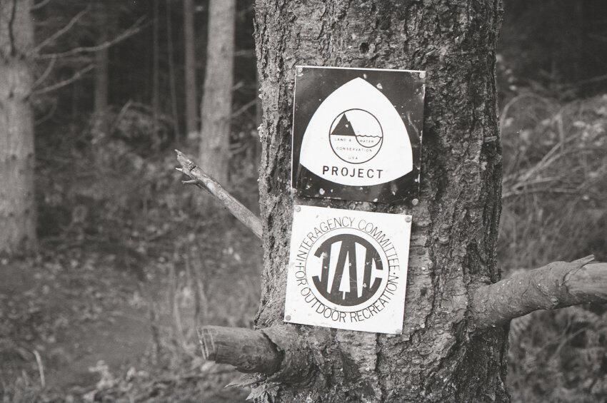 Image 2 is of a pair of signs on the same post. The top sign reads "Land and Water Conservation USA Project", the bottom sign reads "Interagency Committee for Outdoor Recreation".