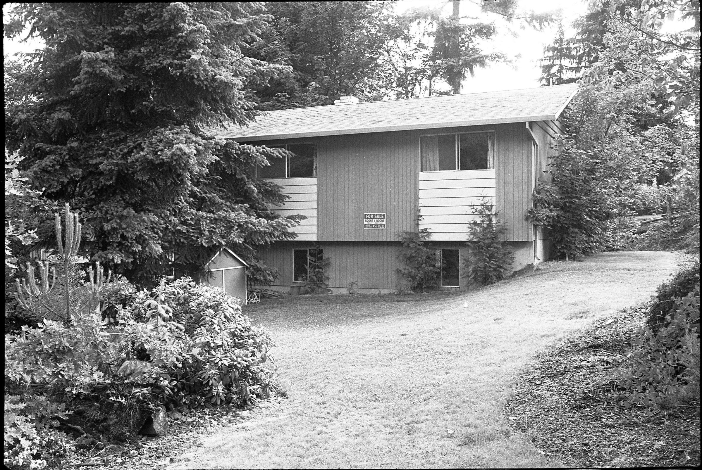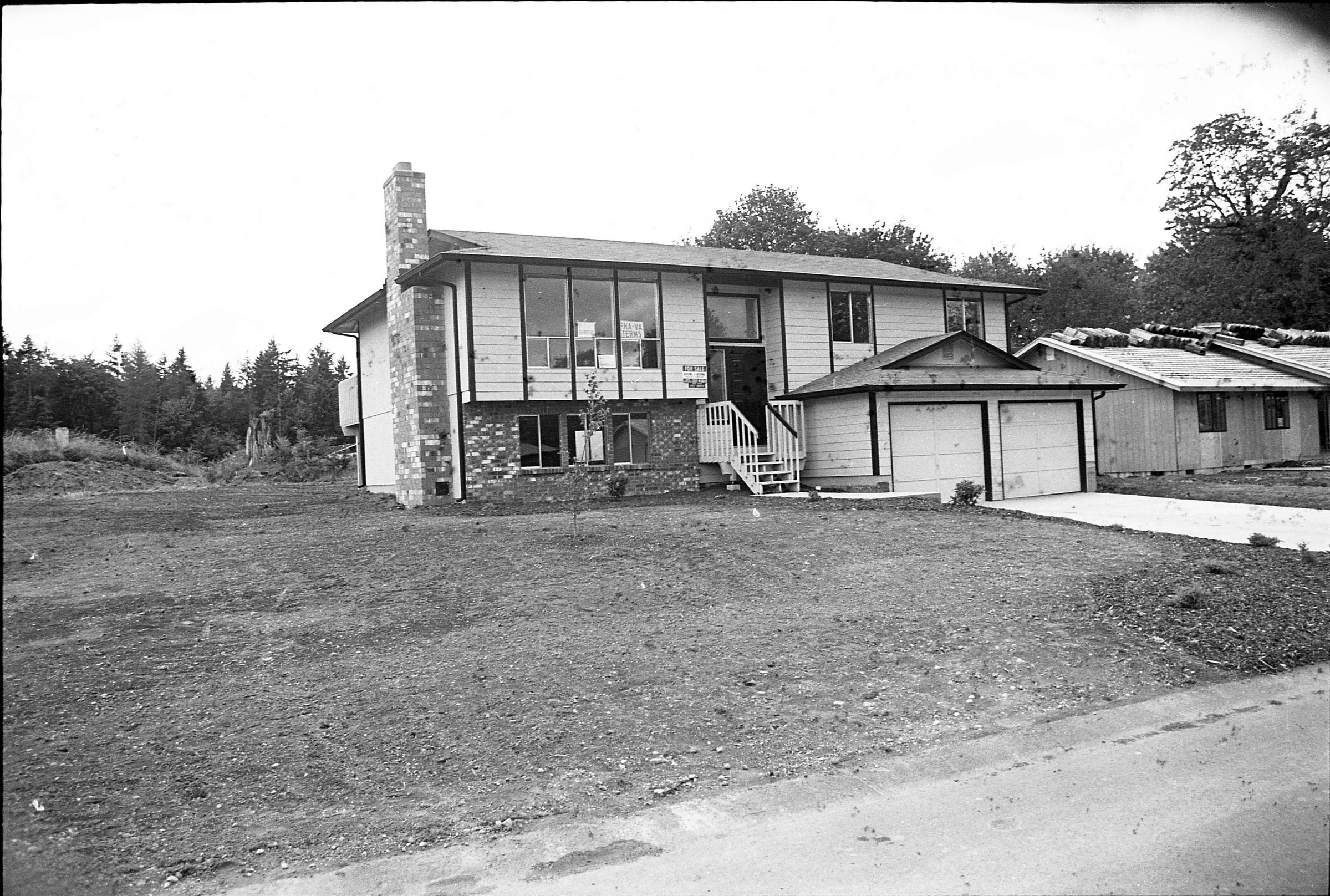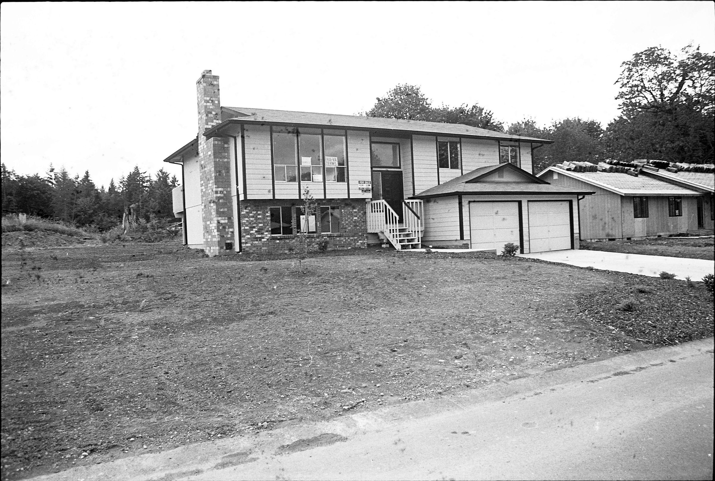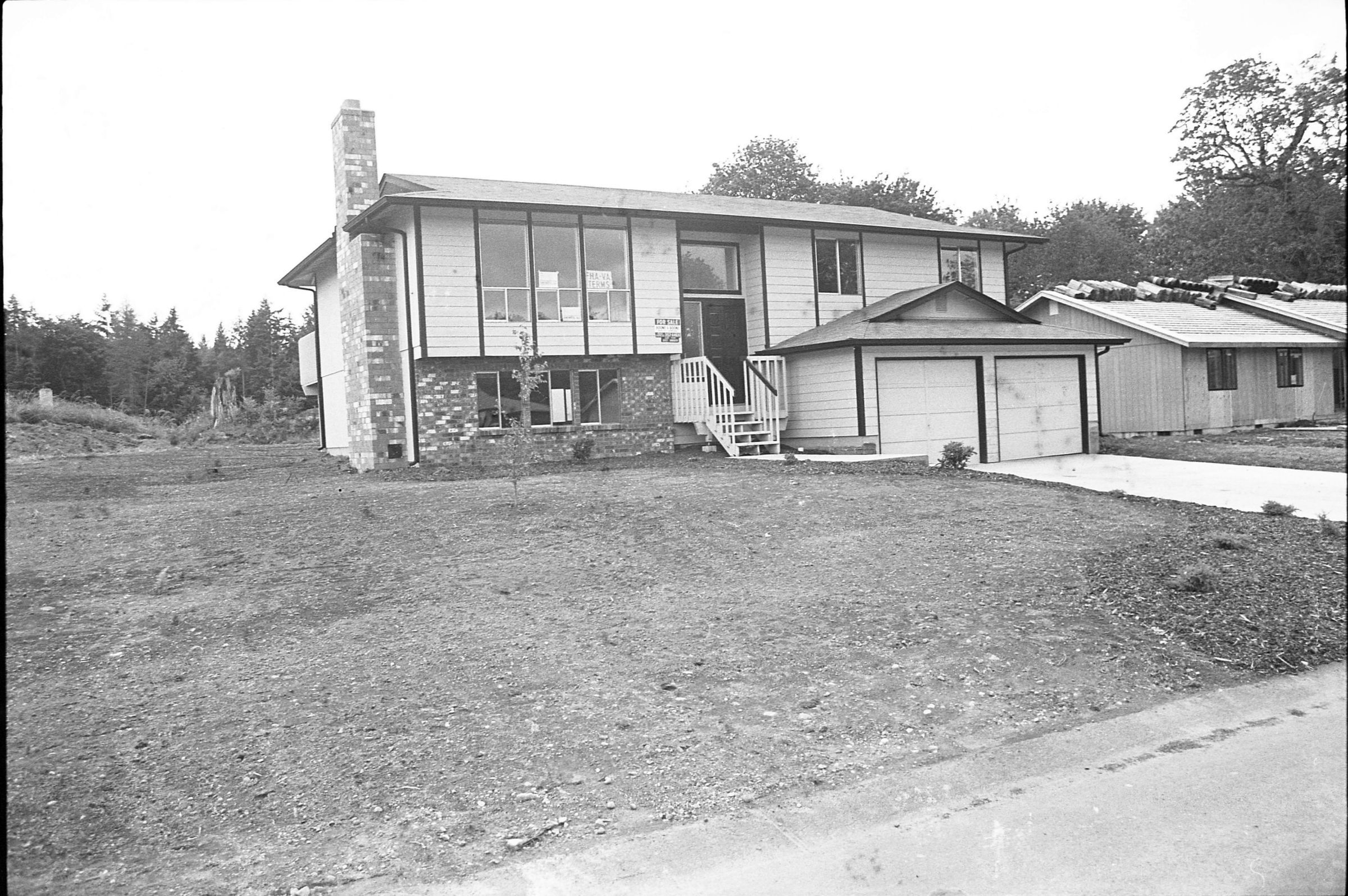 Real Estate, 1979. These three black and white film negative strips were created for the Lacey Leader newspaper. These images show exterior shots of houses.Made/Created