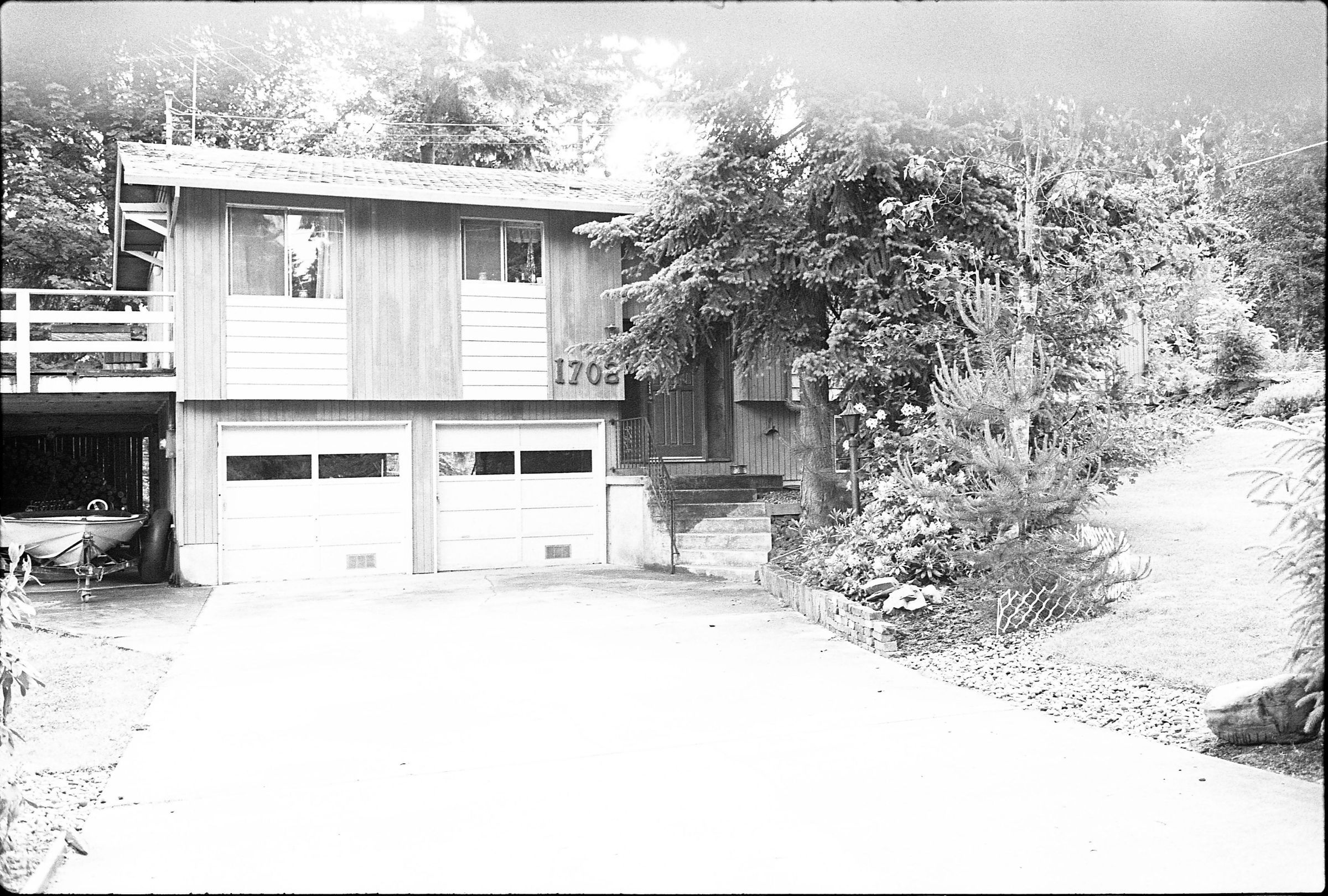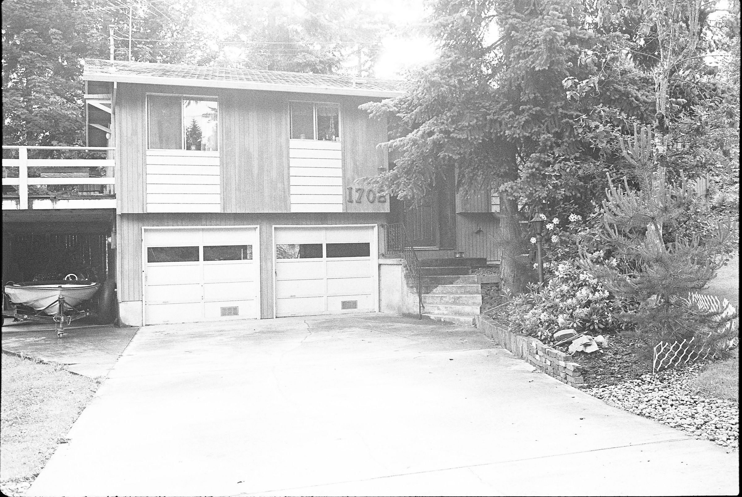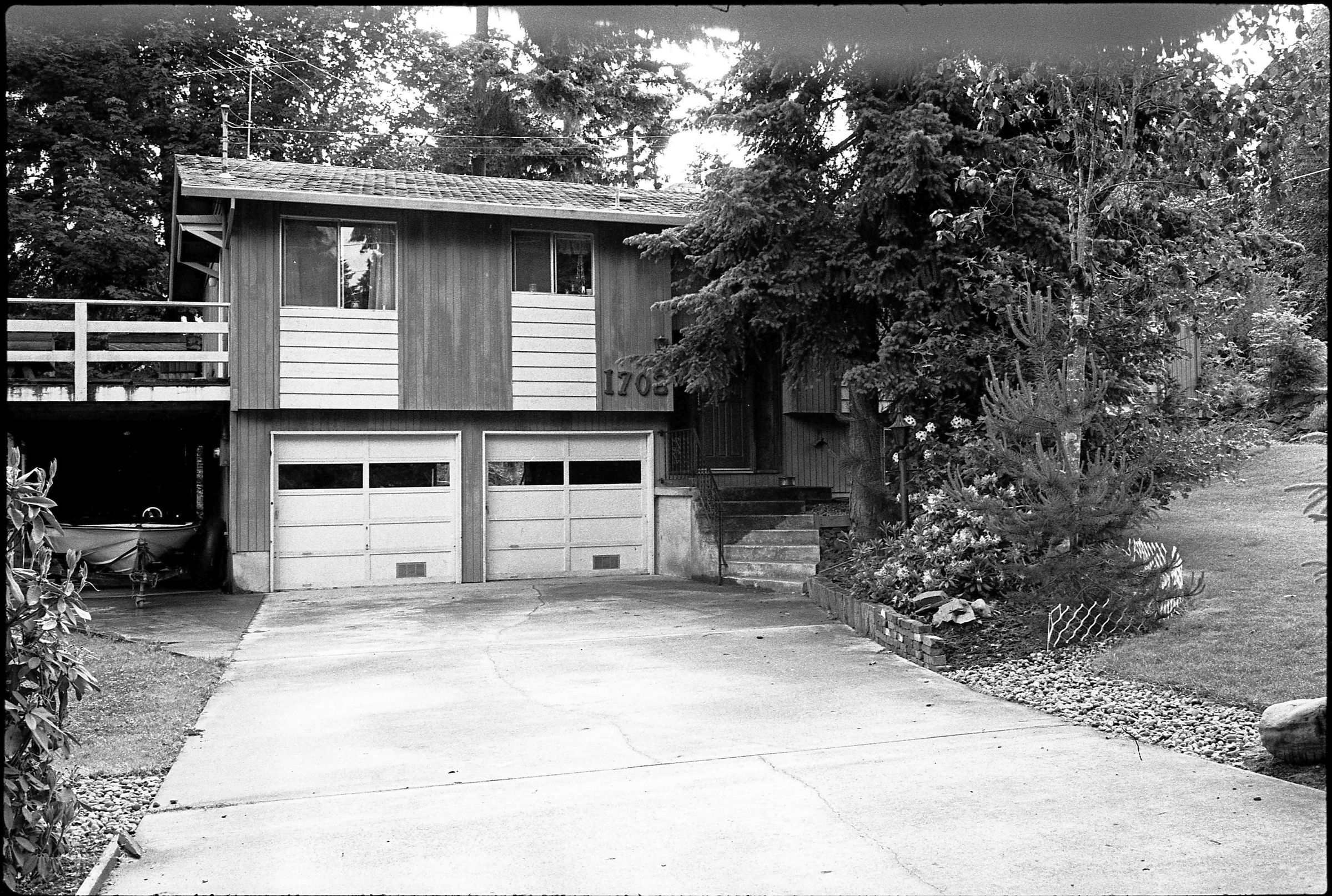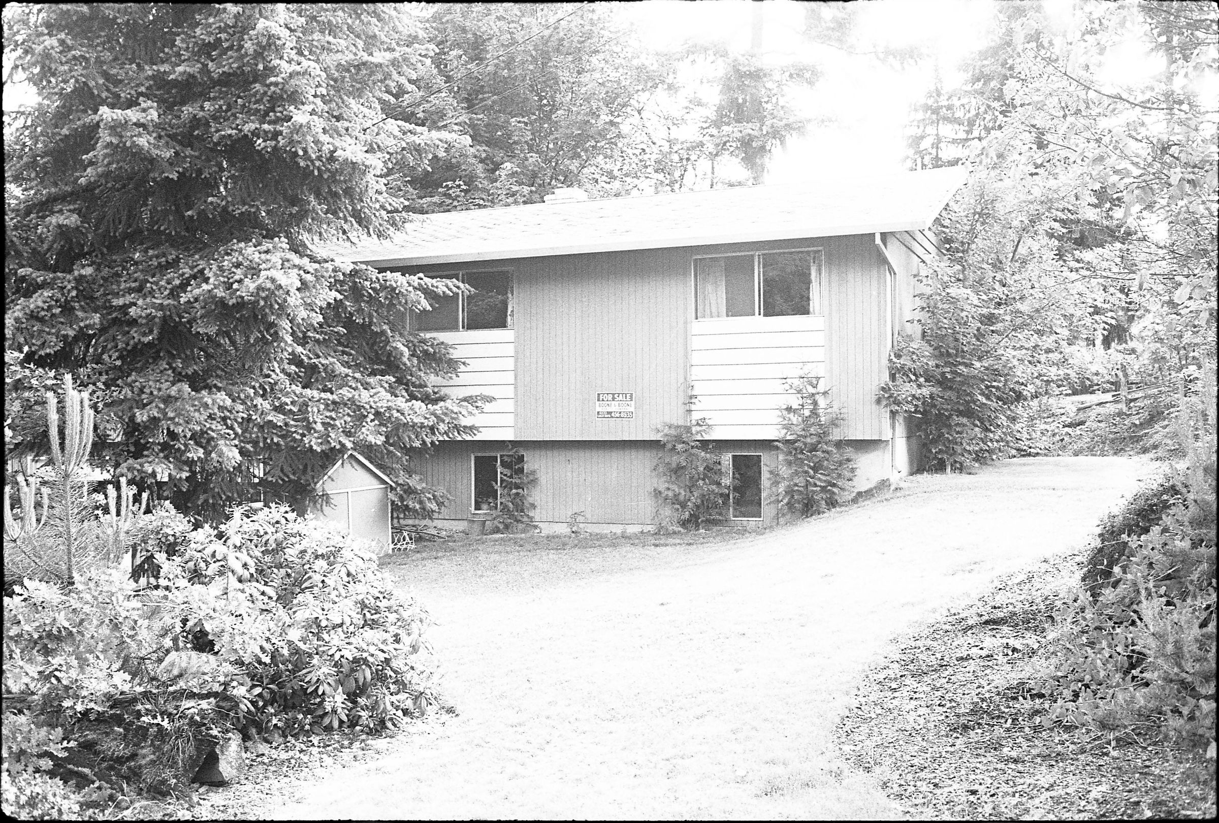 Real Estate, 1979. These three black and white film negative strips were created for the Lacey Leader newspaper. These images show exterior shots of houses.Made/Created