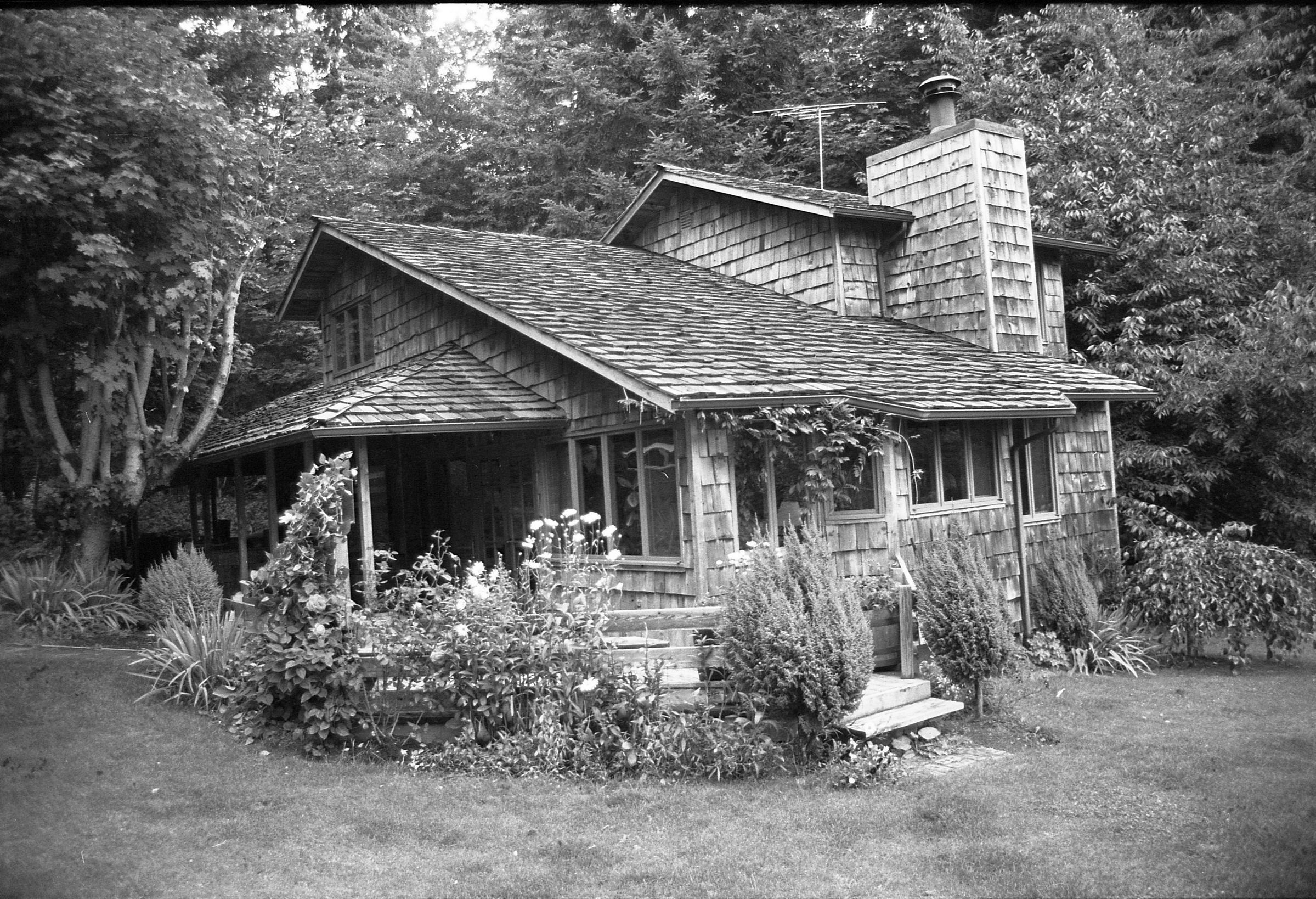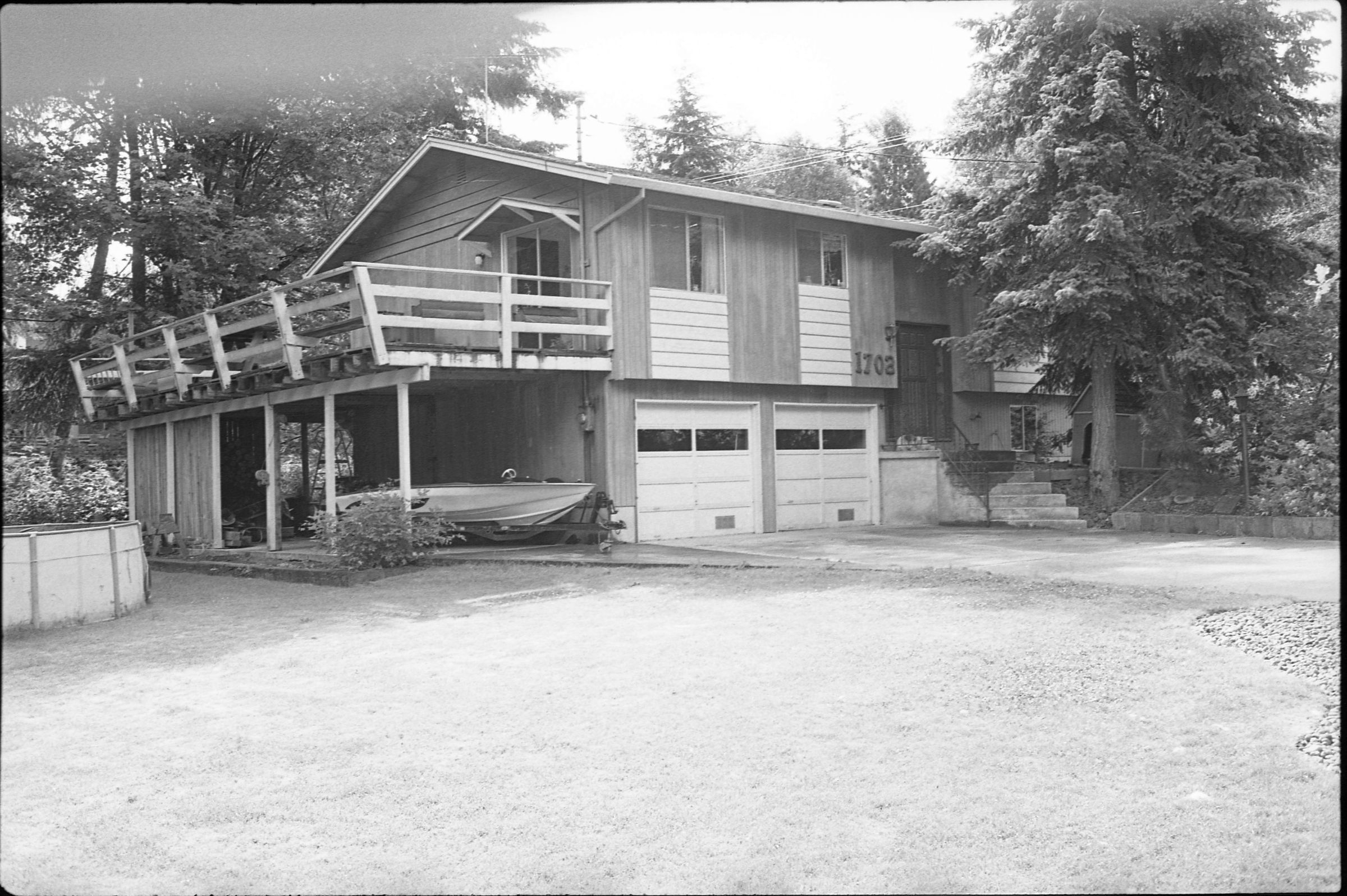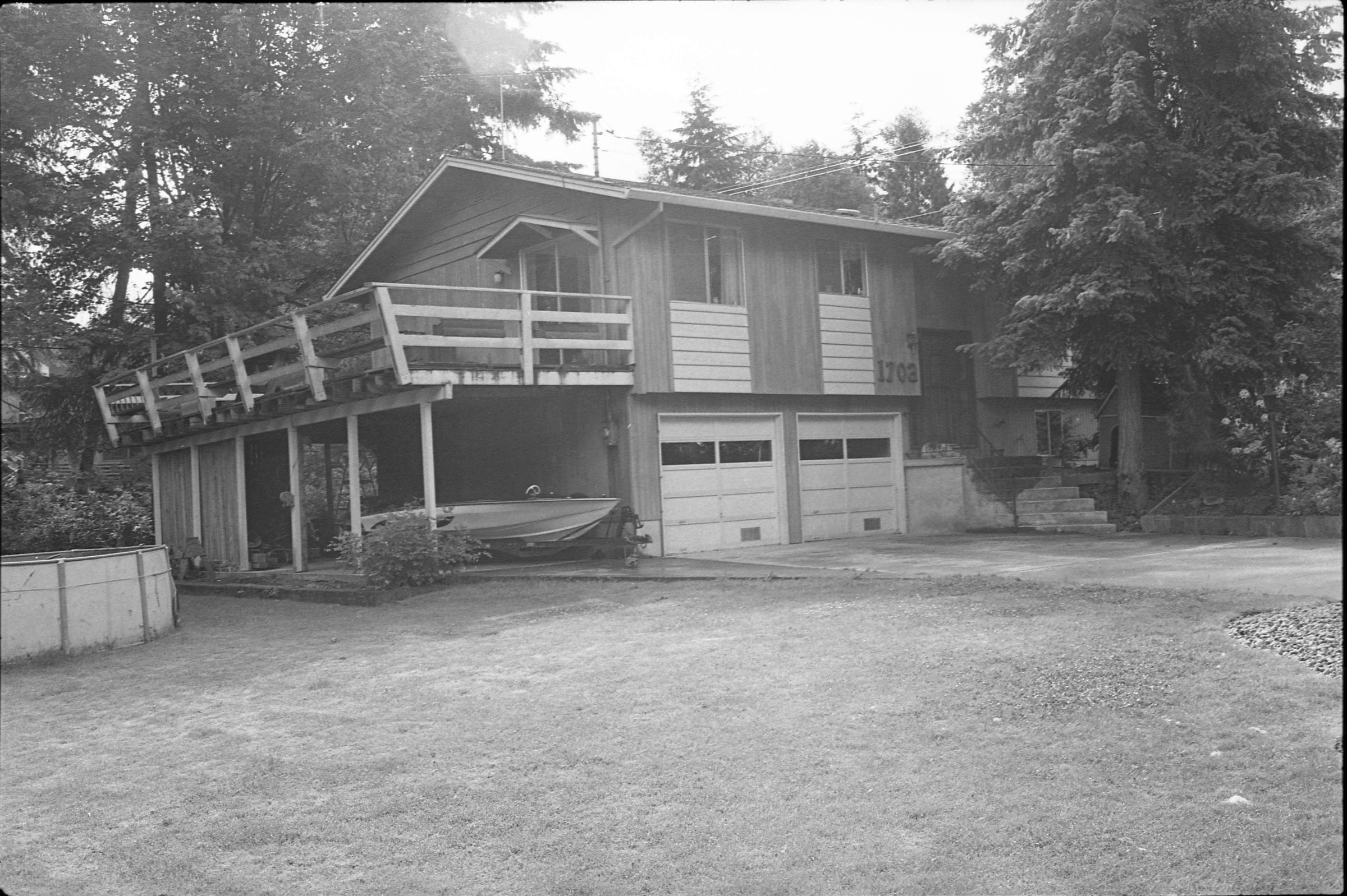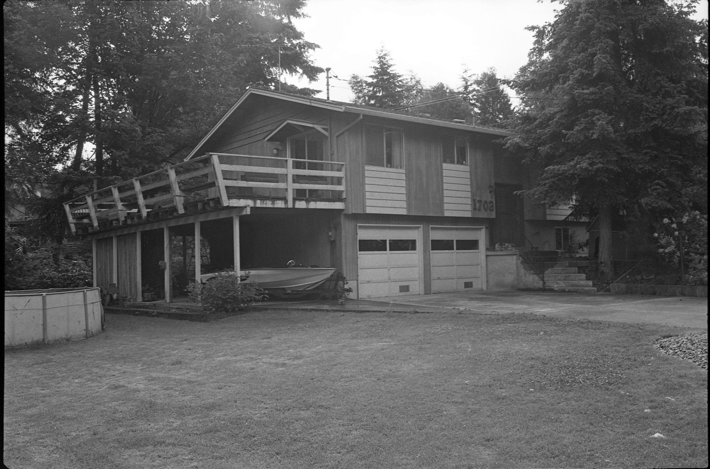 Real Estate, 1979. These three black and white film negative strips were created for the Lacey Leader newspaper. These images show exterior shots of houses.Made/Created