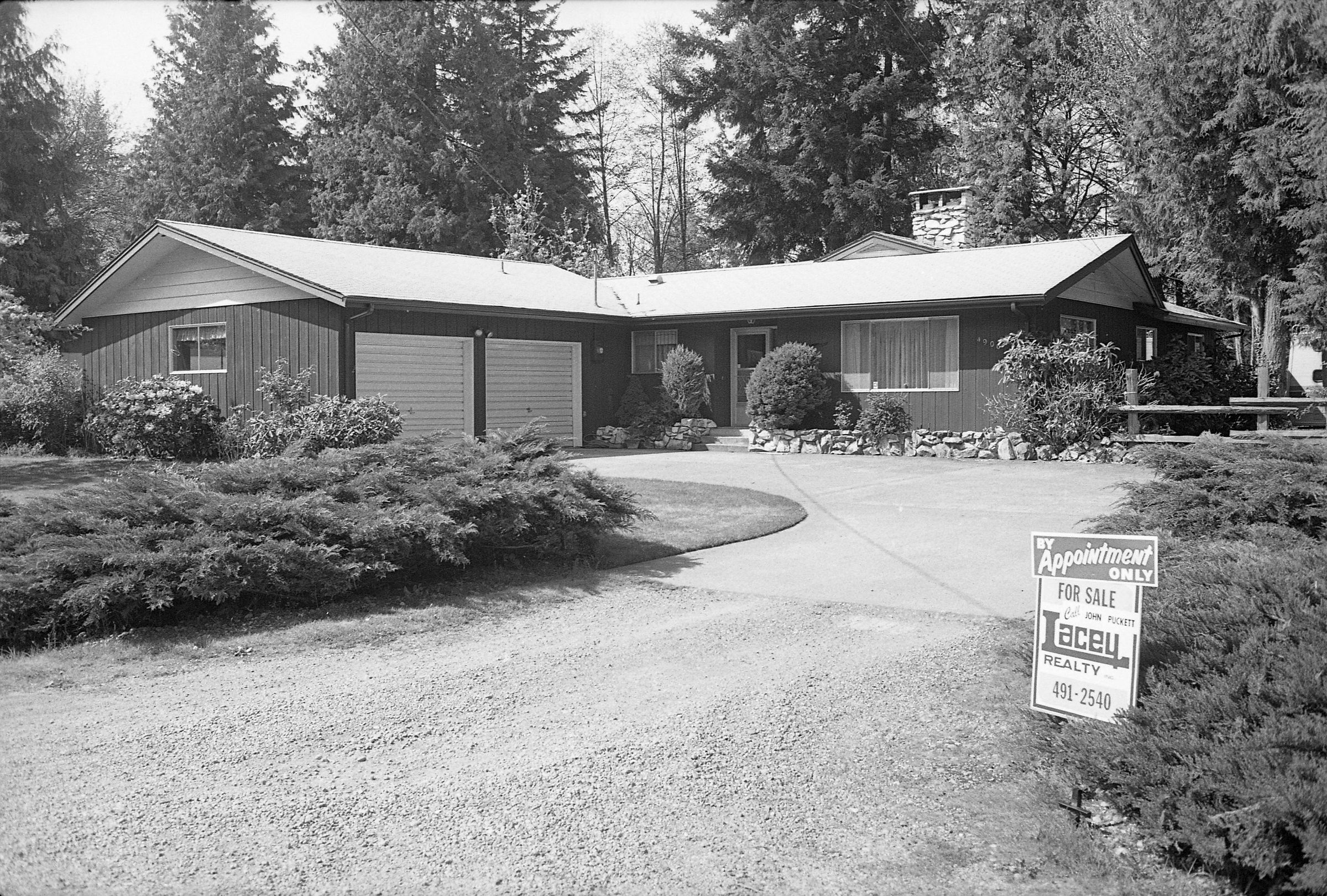 Real Estate, 4-24-1979. These six black and white negative strips were created for the Lacey Leader newspaper. They depict the exteriors of several houses.Made/Created
