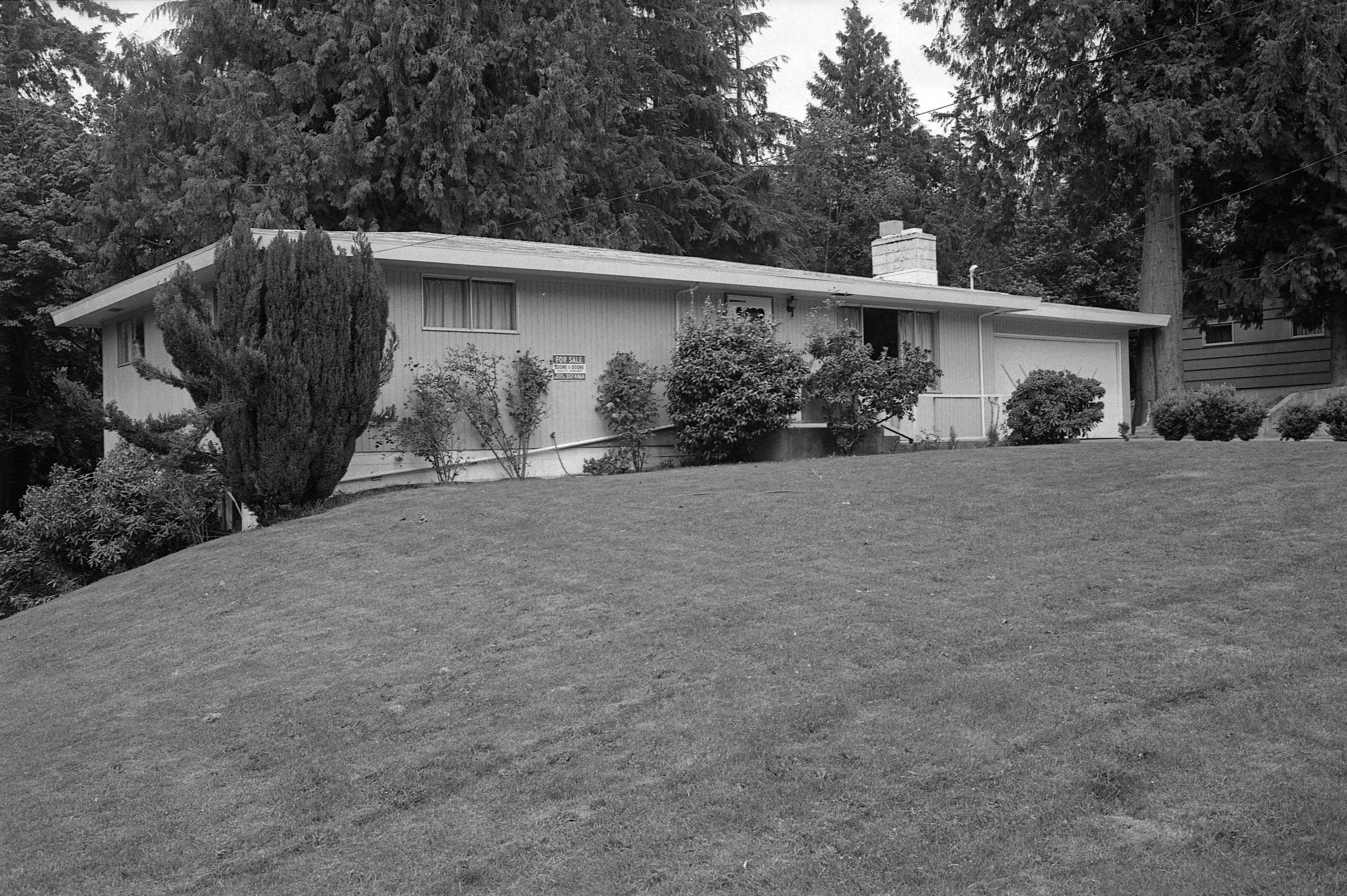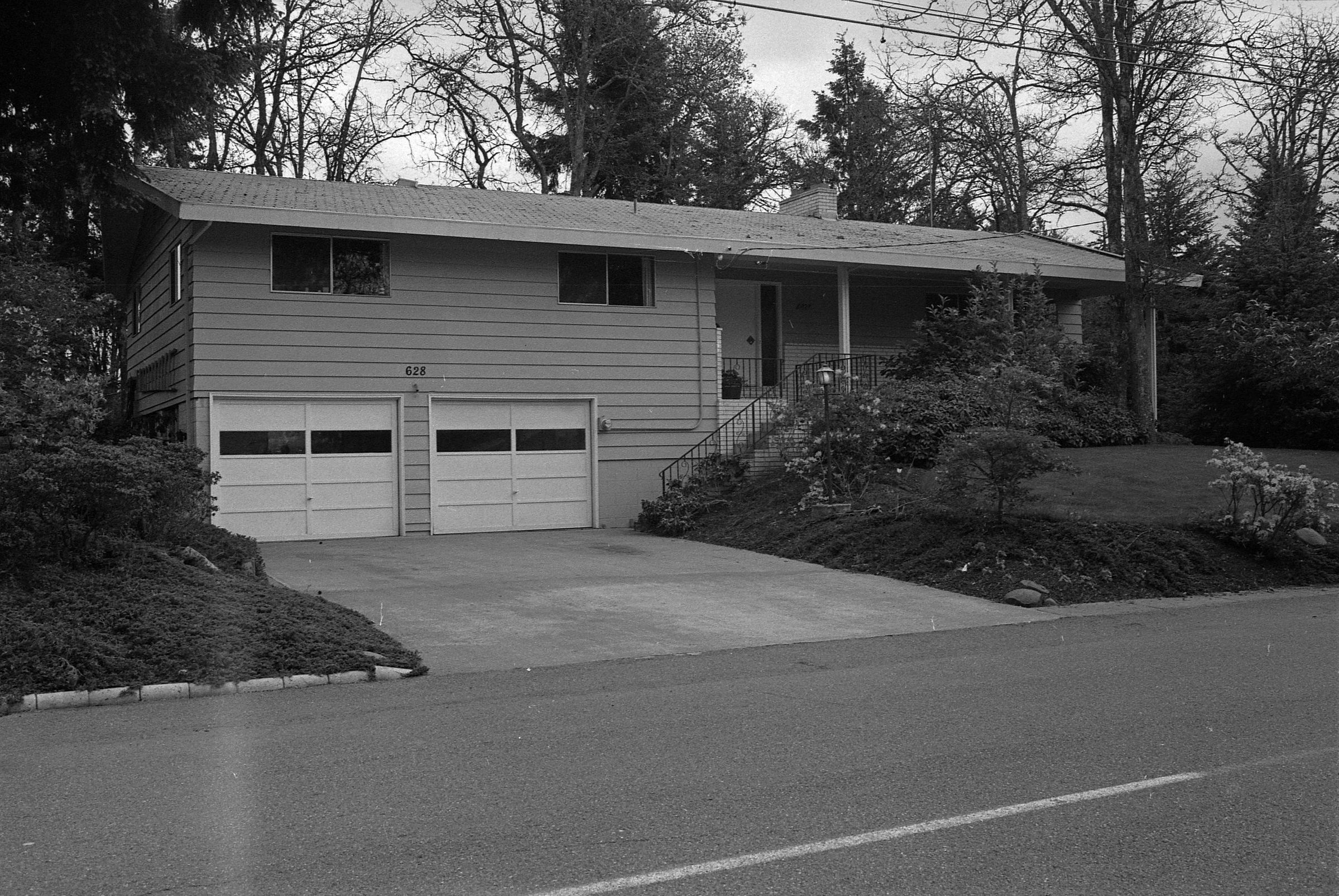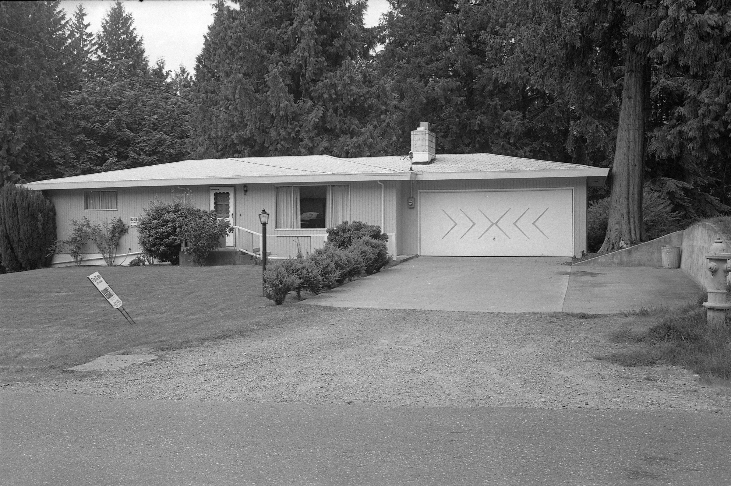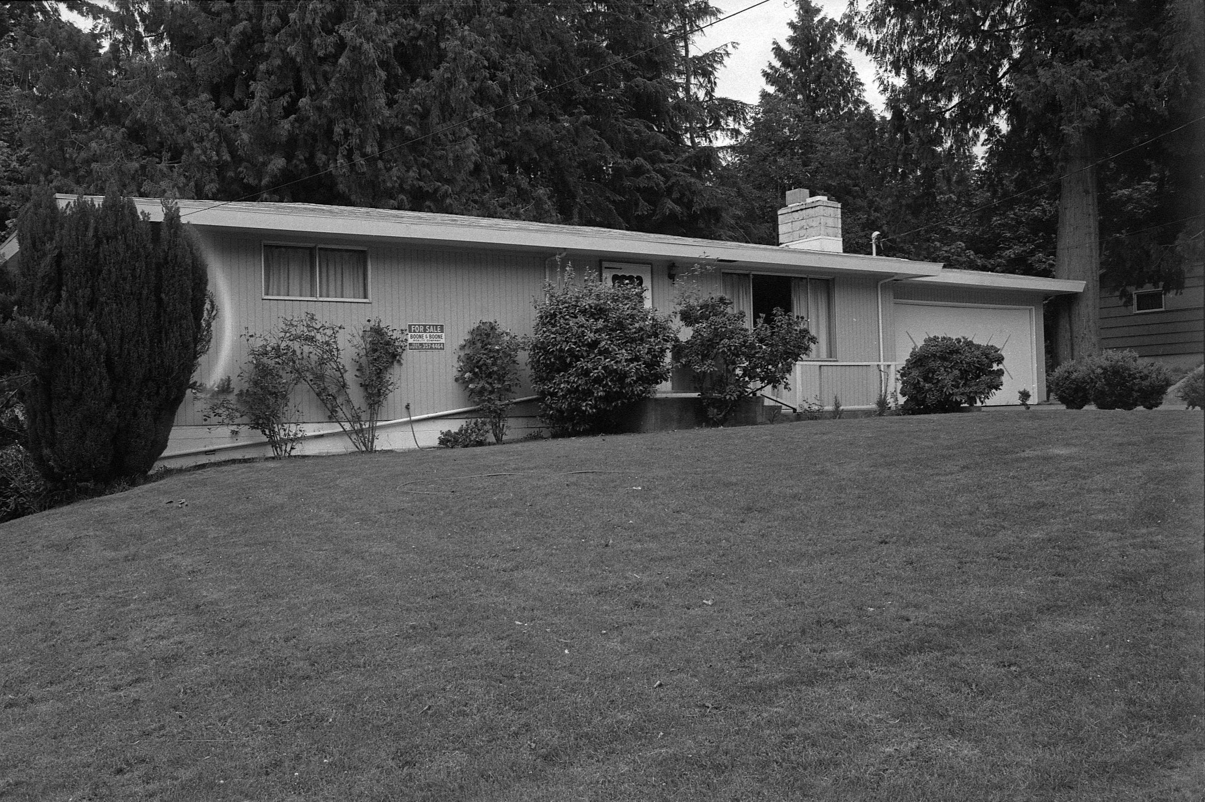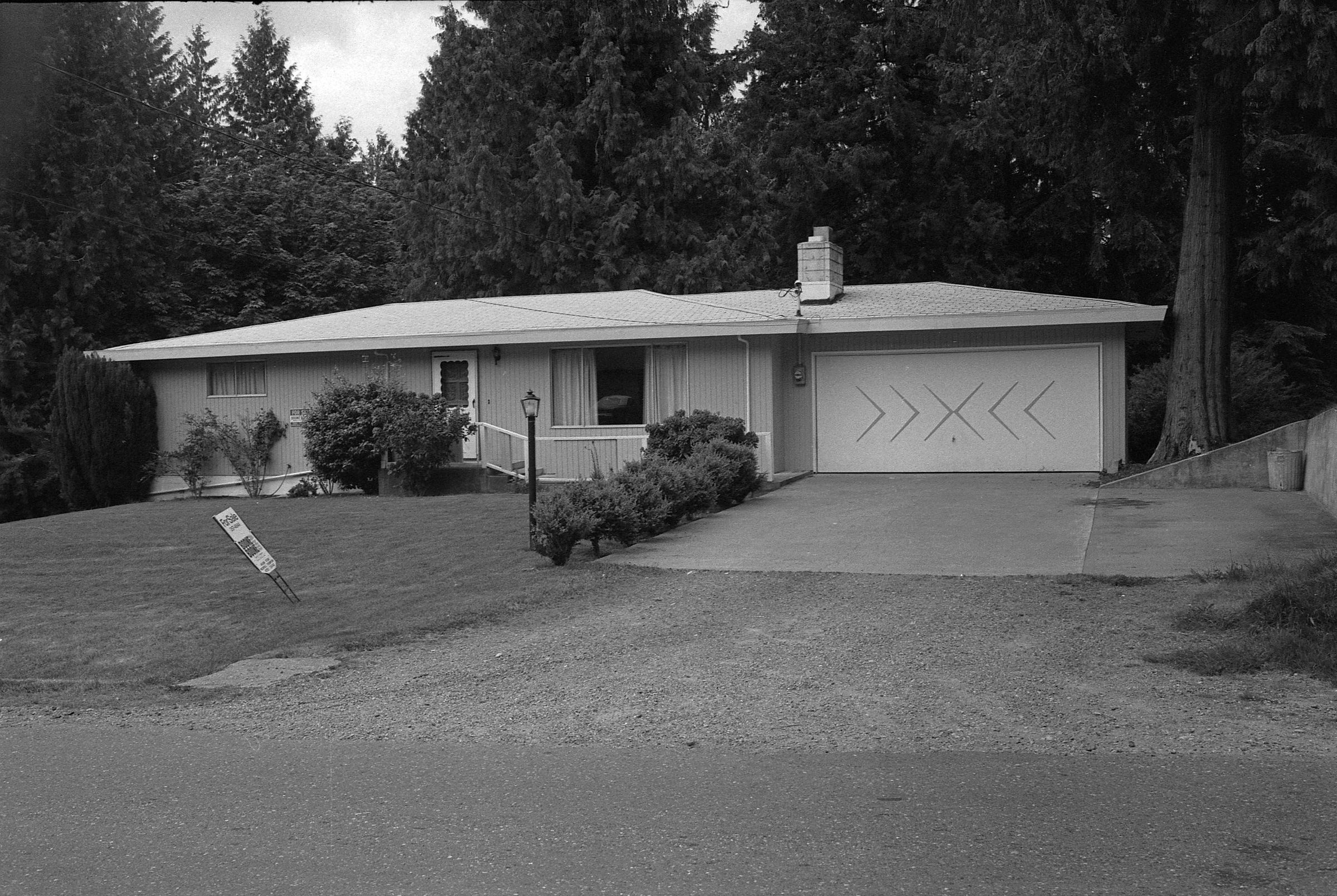 Real Estate, 1979. These two black and white film negative strips were created for the Lacey Leader newspaper. These images show exterior photos of houses.Made/Created